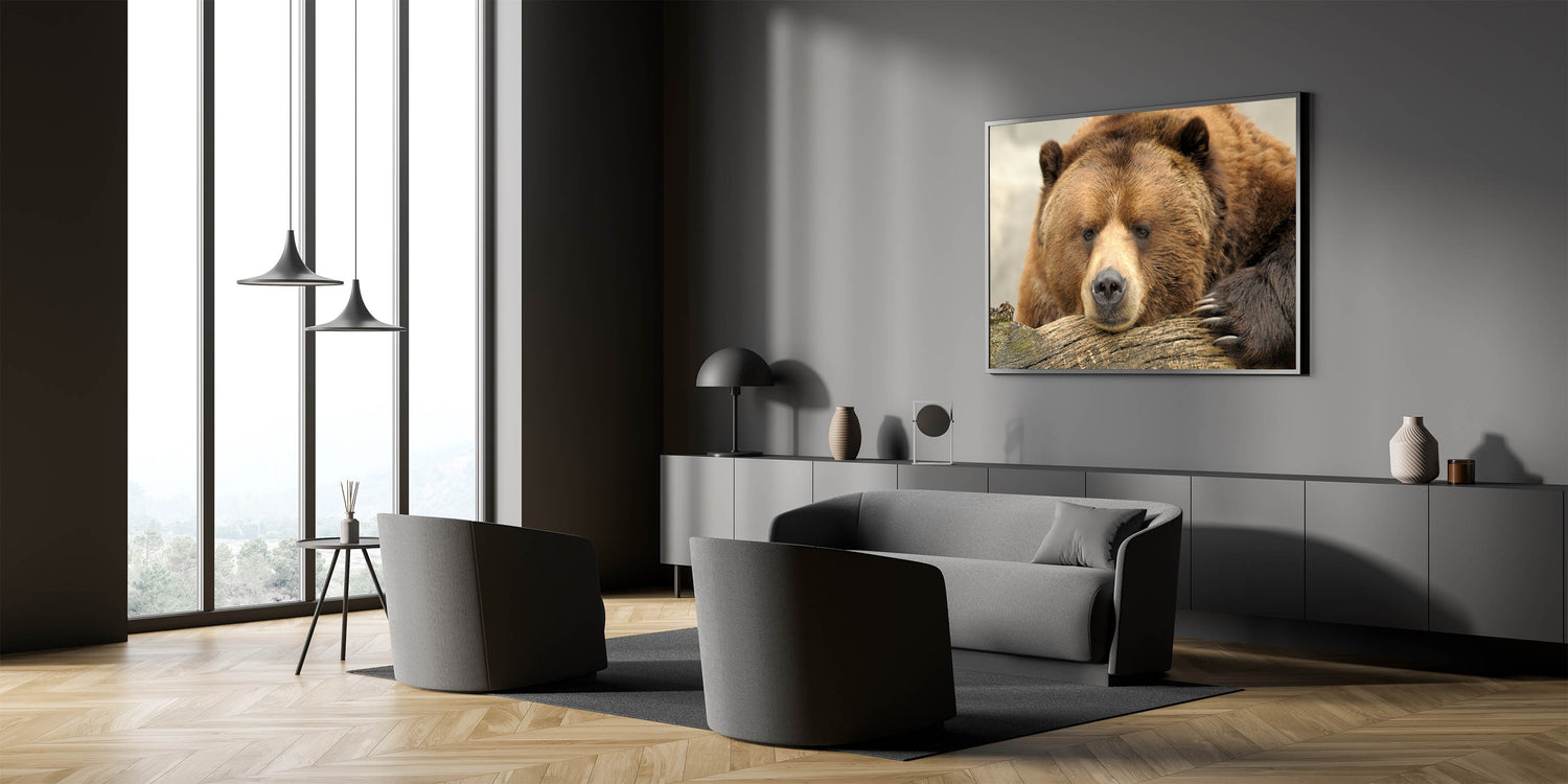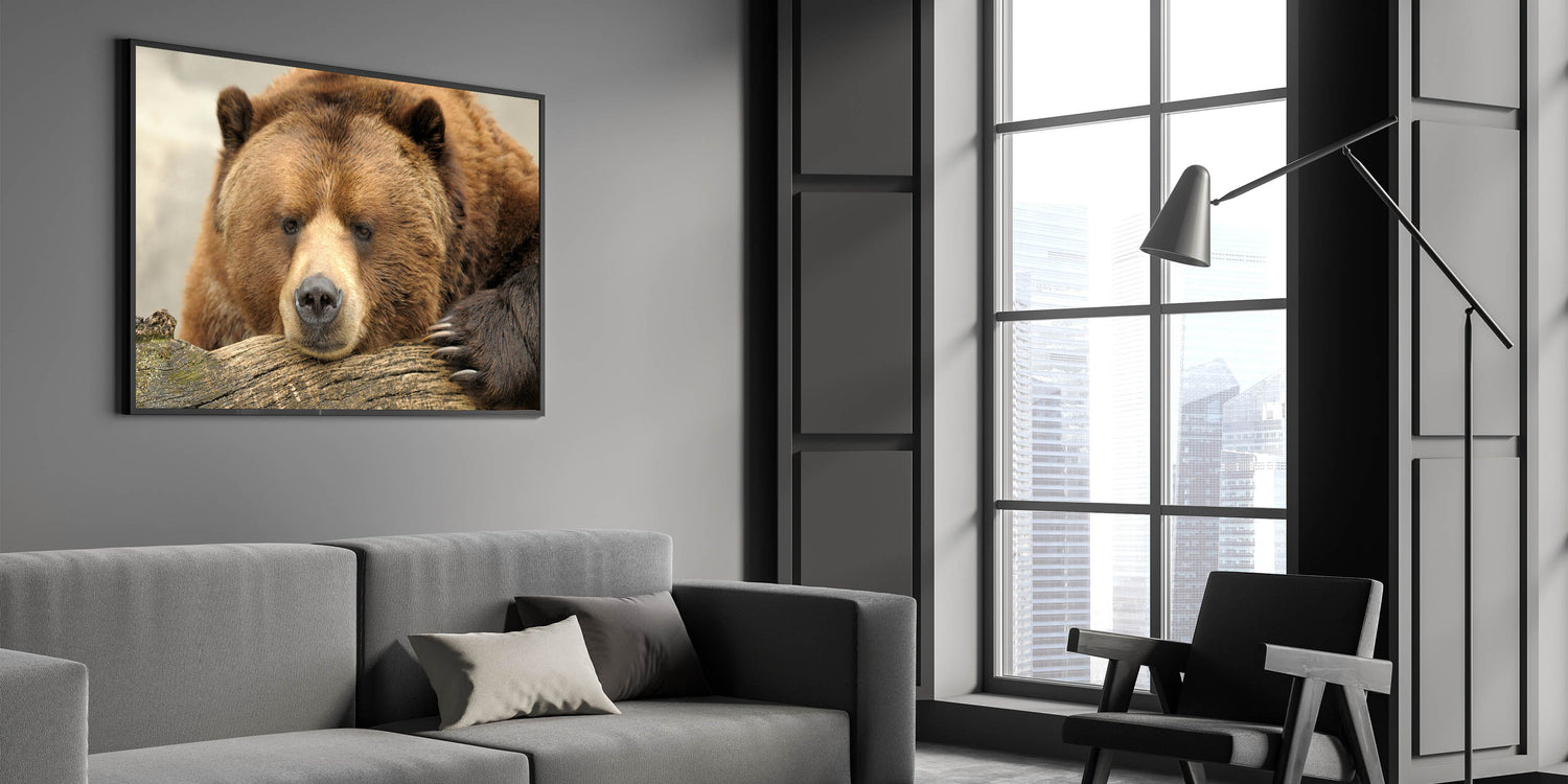 • Sharp and detailed print quality, highlighting the textures of the bear’s fur and the natural setting.