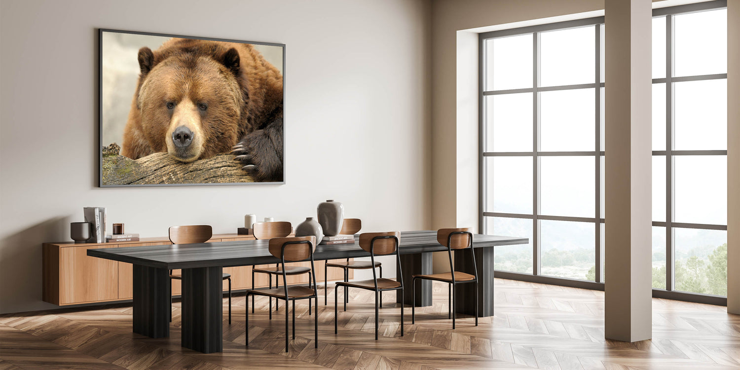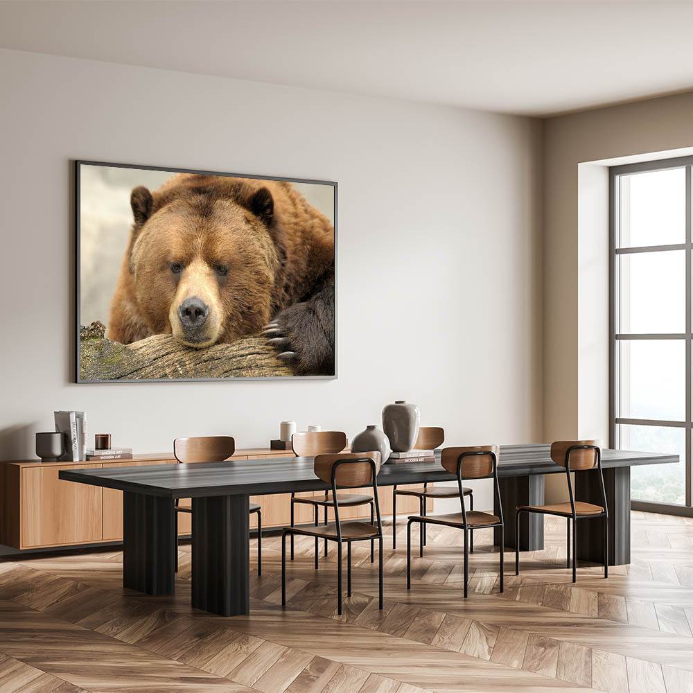 Capture the majestic wildlife of Yellowstone National Park with this stunning Yellowstone National Park wall art featuring a grizzly bear in its natural habitat. The detailed photography brings out the bear's powerful yet serene presence, making this piece a standout addition to your home decor. Whether displayed as a Yellowstone canvas print or framed, this design celebrates the beauty of Yellowstone's wildlife.
