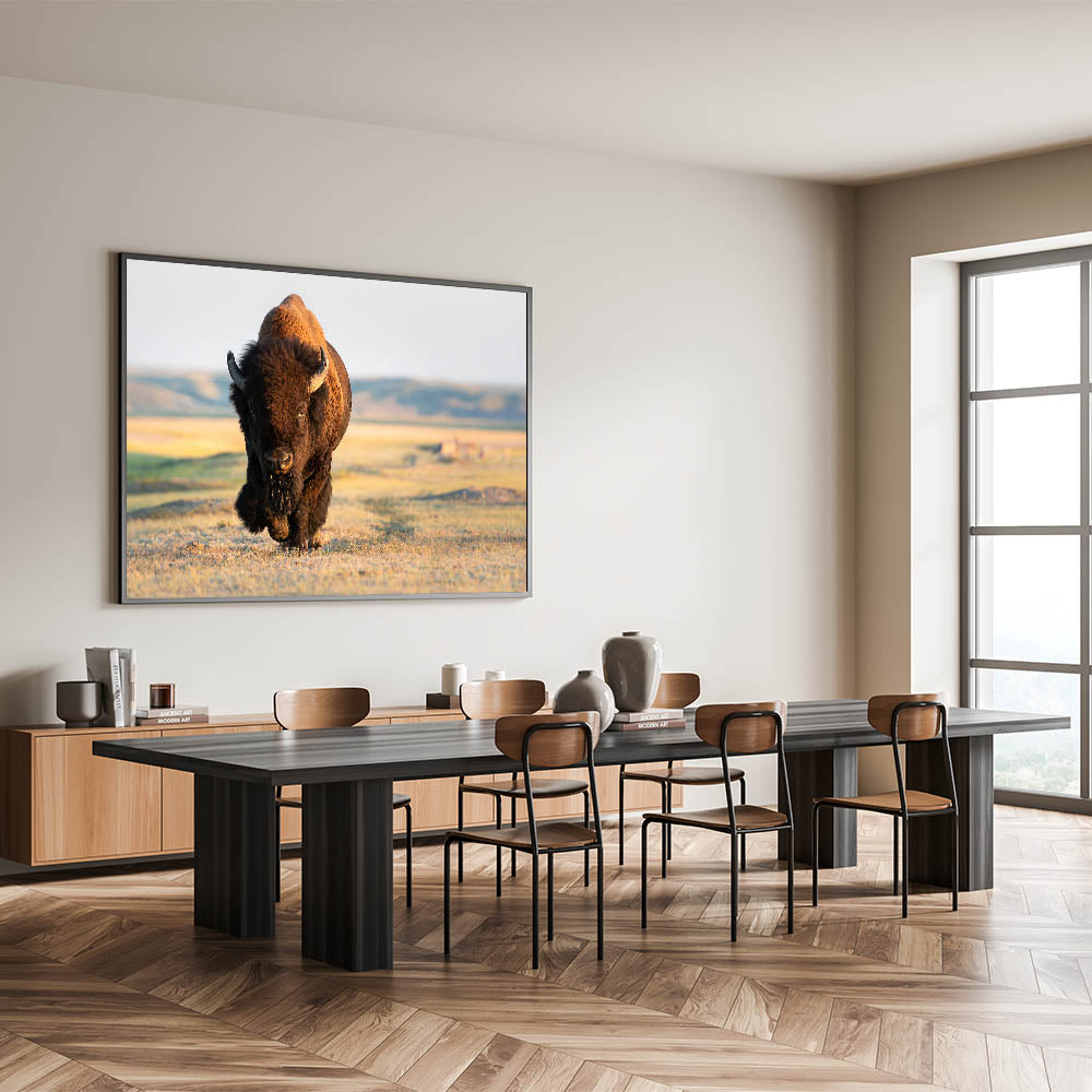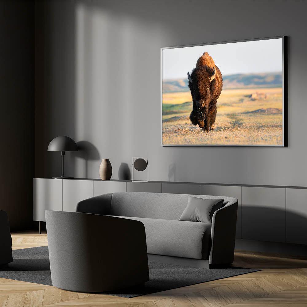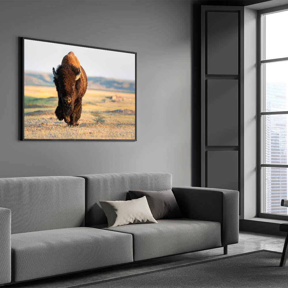 Bring the powerful presence of Yellowstone’s iconic bison into your home with this stunning Yellowstone National Park wall art. This piece of wildlife photography of Yellowstone captures a majestic bison as it strides across the open plains, perfectly illustrating the strength and beauty of this remarkable creature. Available in various formats, including Yellowstone canvas prints, framed art, and acrylic glass, this artwork is ideal for adding a touch of nature’s majesty to any space.