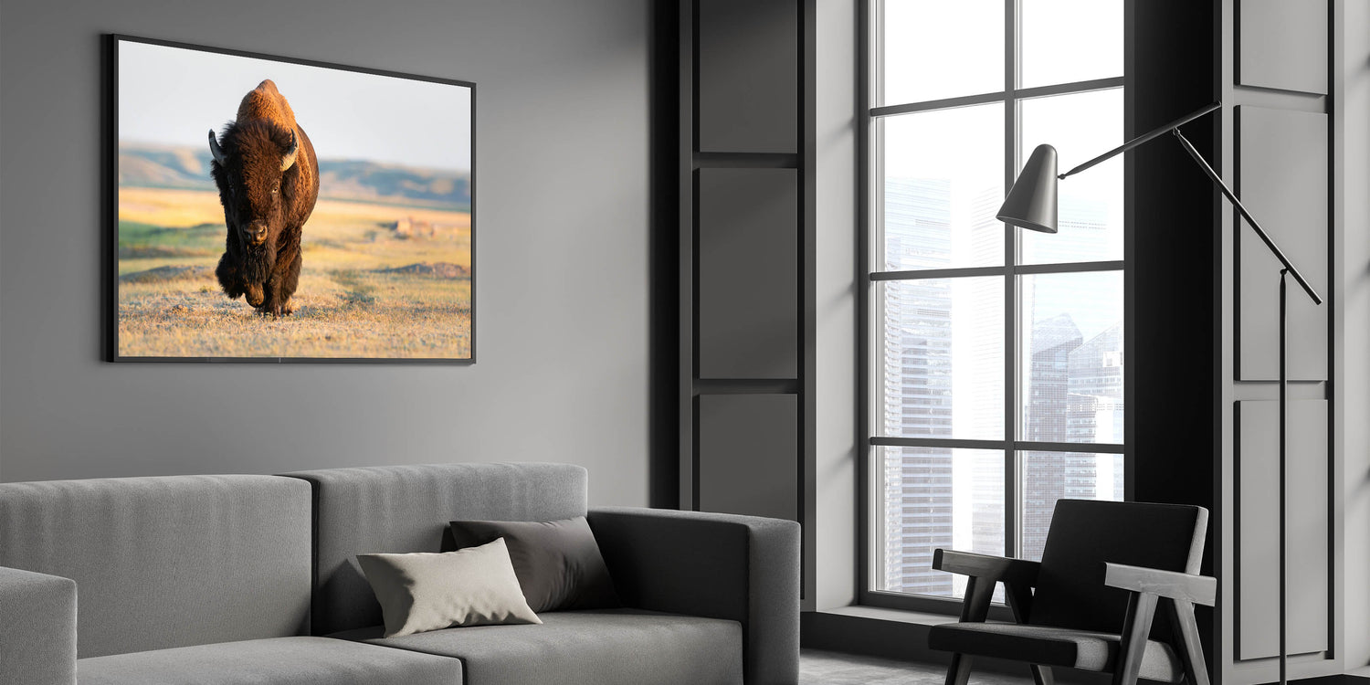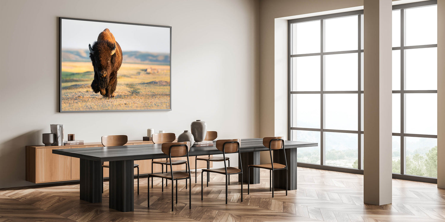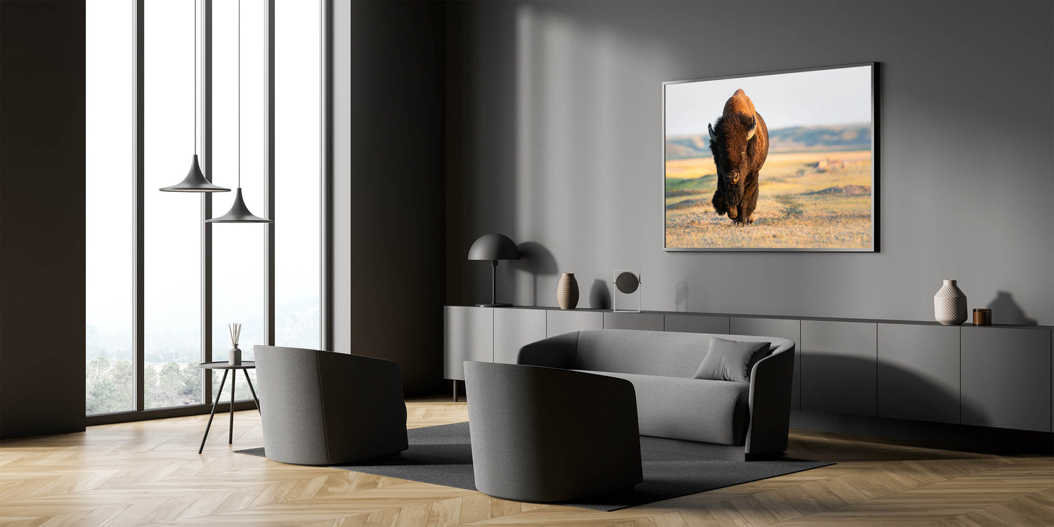 Bring the powerful presence of Yellowstone’s iconic bison into your home with this stunning Yellowstone National Park wall art. This piece of wildlife photography of Yellowstone captures a majestic bison as it strides across the open plains, perfectly illustrating the strength and beauty of this remarkable creature. Available in various formats, including Yellowstone canvas prints, framed art, and acrylic glass, this artwork is ideal for adding a touch of nature’s majesty to any space.