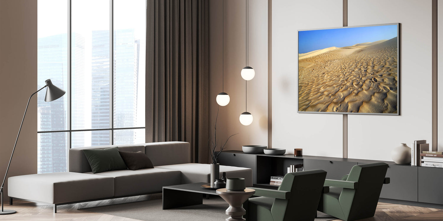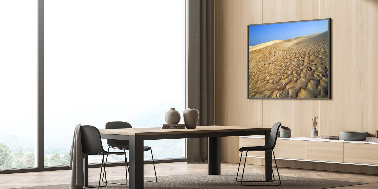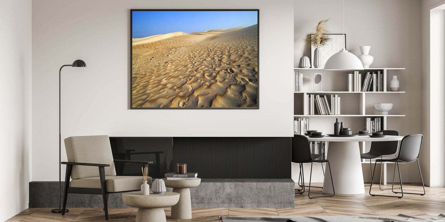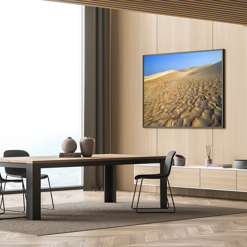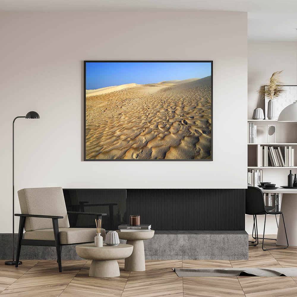 Capture the timeless beauty of Yemen’s desert landscapes with this striking piece from our Yemen Landscape Prints collection. Featuring expansive golden dunes under a brilliant blue sky, this Scenic Yemen Art brings the majesty of Yemen’s natural wonders directly into your space. The simplicity and elegance of the desert create a calming and expansive atmosphere, perfect for modern homes or offices seeking a touch of nature.
