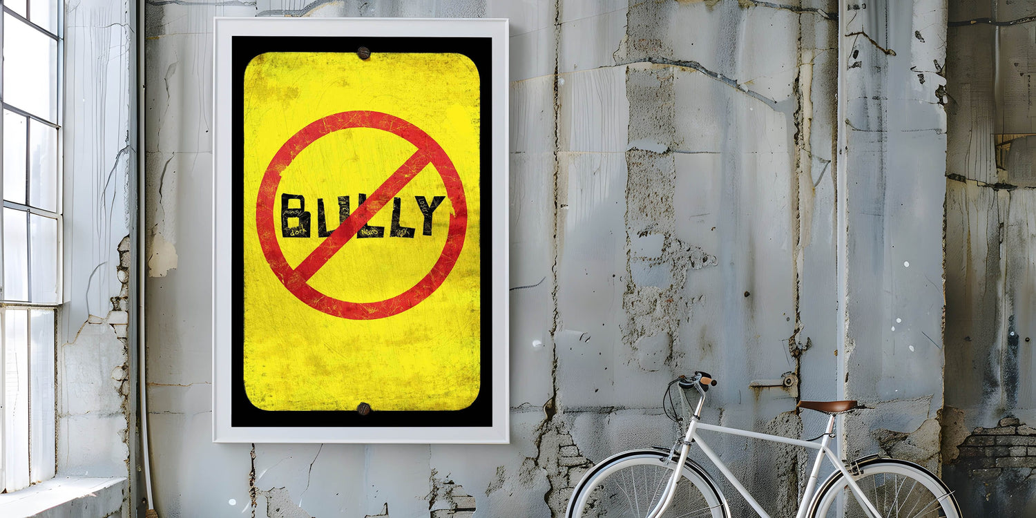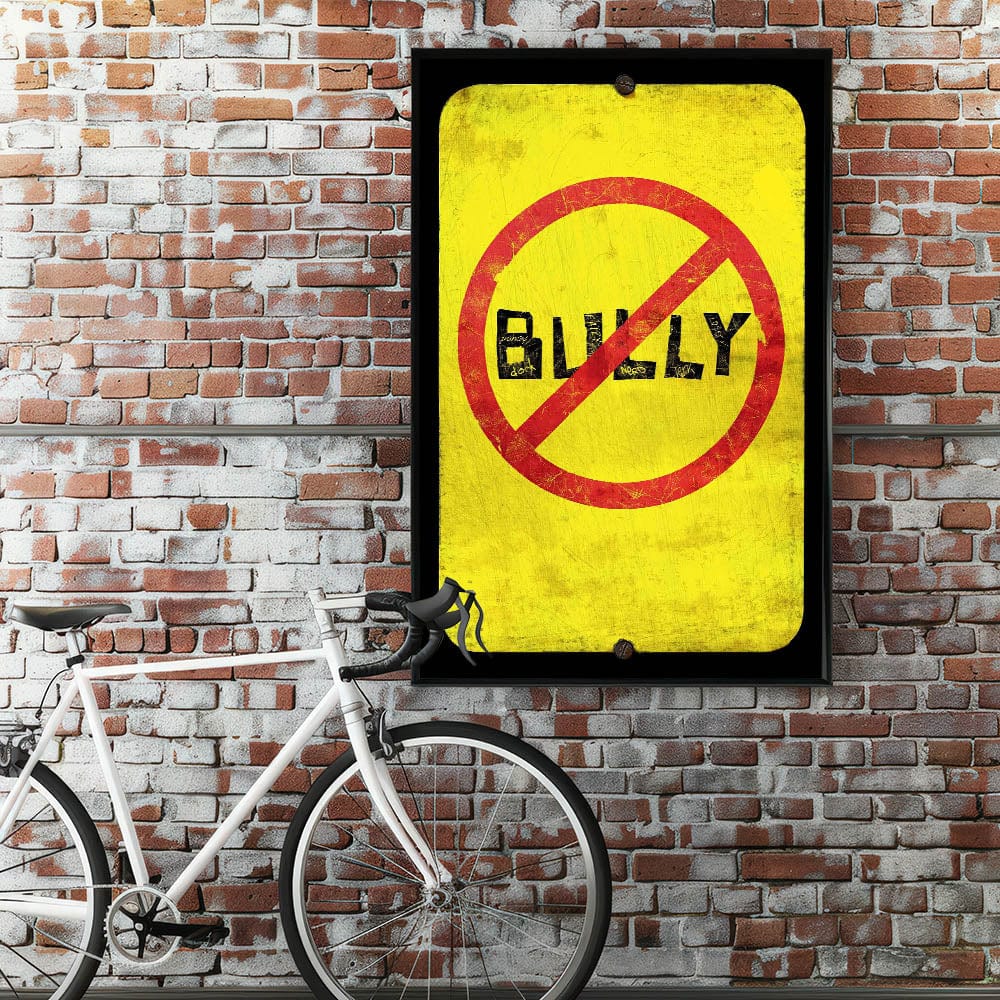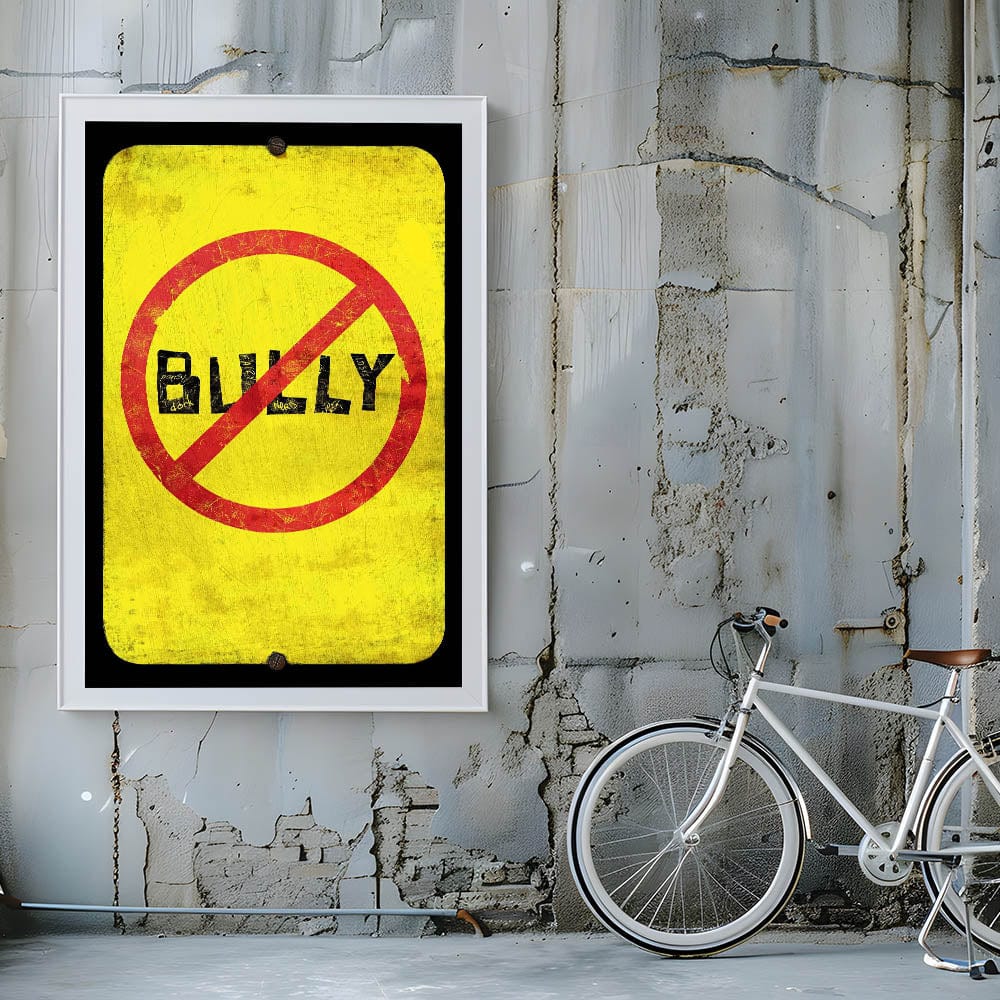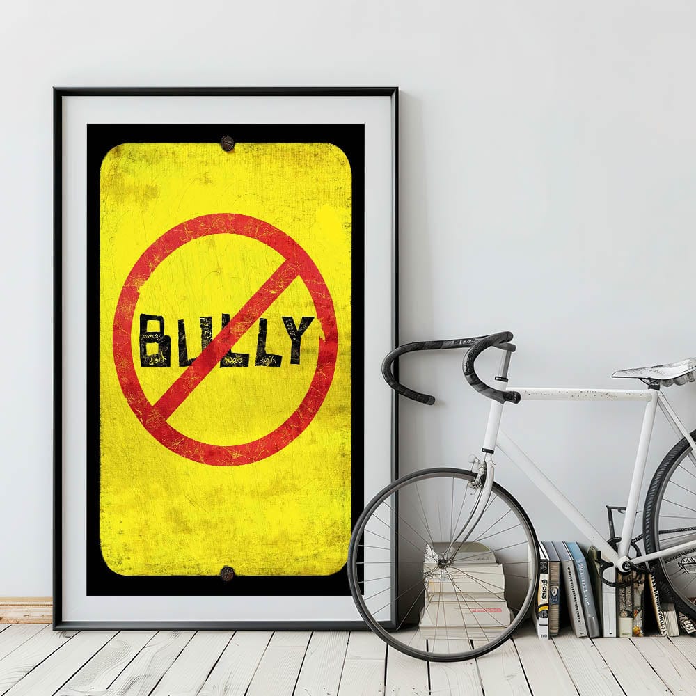 Bring awareness and bold design to your space with this vintage 2010s documentary poster for Bully. This classic 2010s film print serves as a powerful reminder of the impact of bullying and the movement to stand against it. Featuring a striking yellow warning sign-inspired design with a distressed texture, this retro movie poster is both thought-provoking and stylish.
