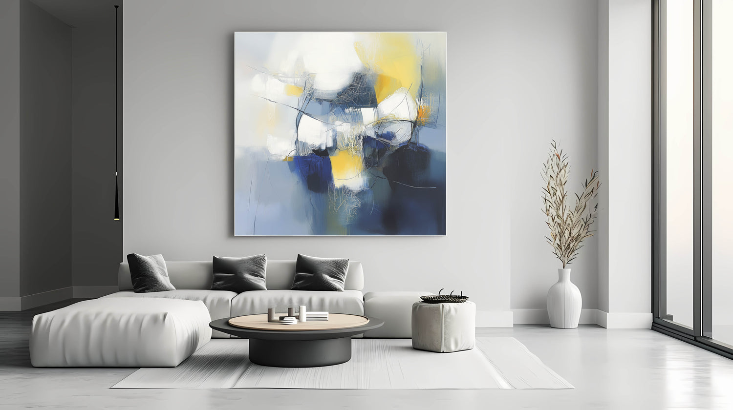 Abstract Art Prints – Bold Blue, Yellow & White Modern Composition