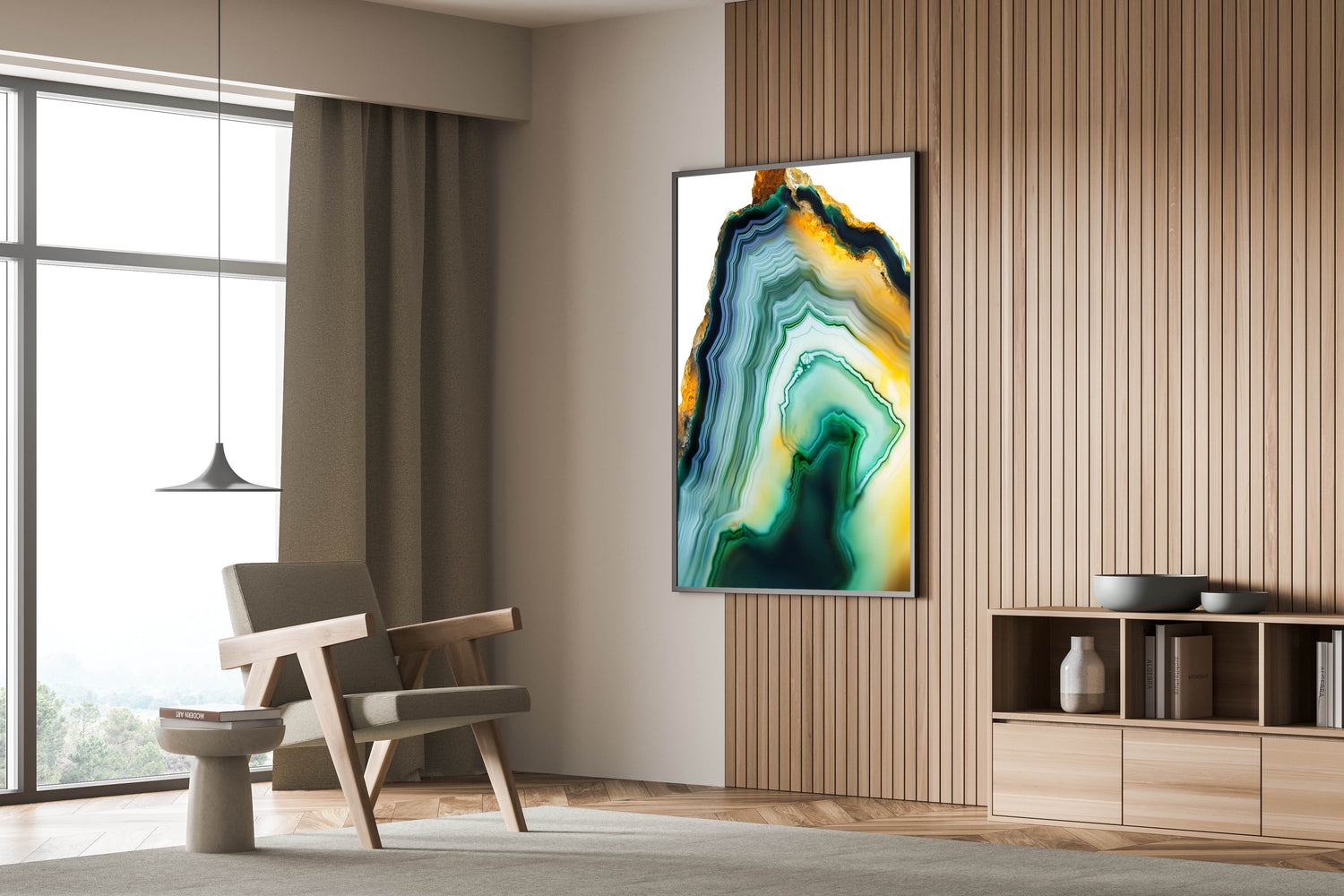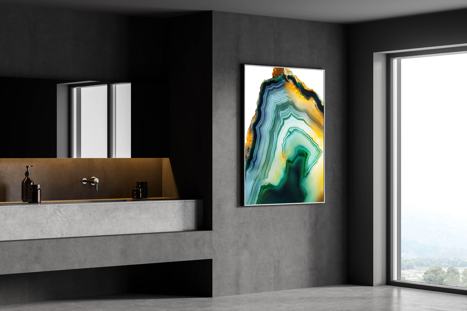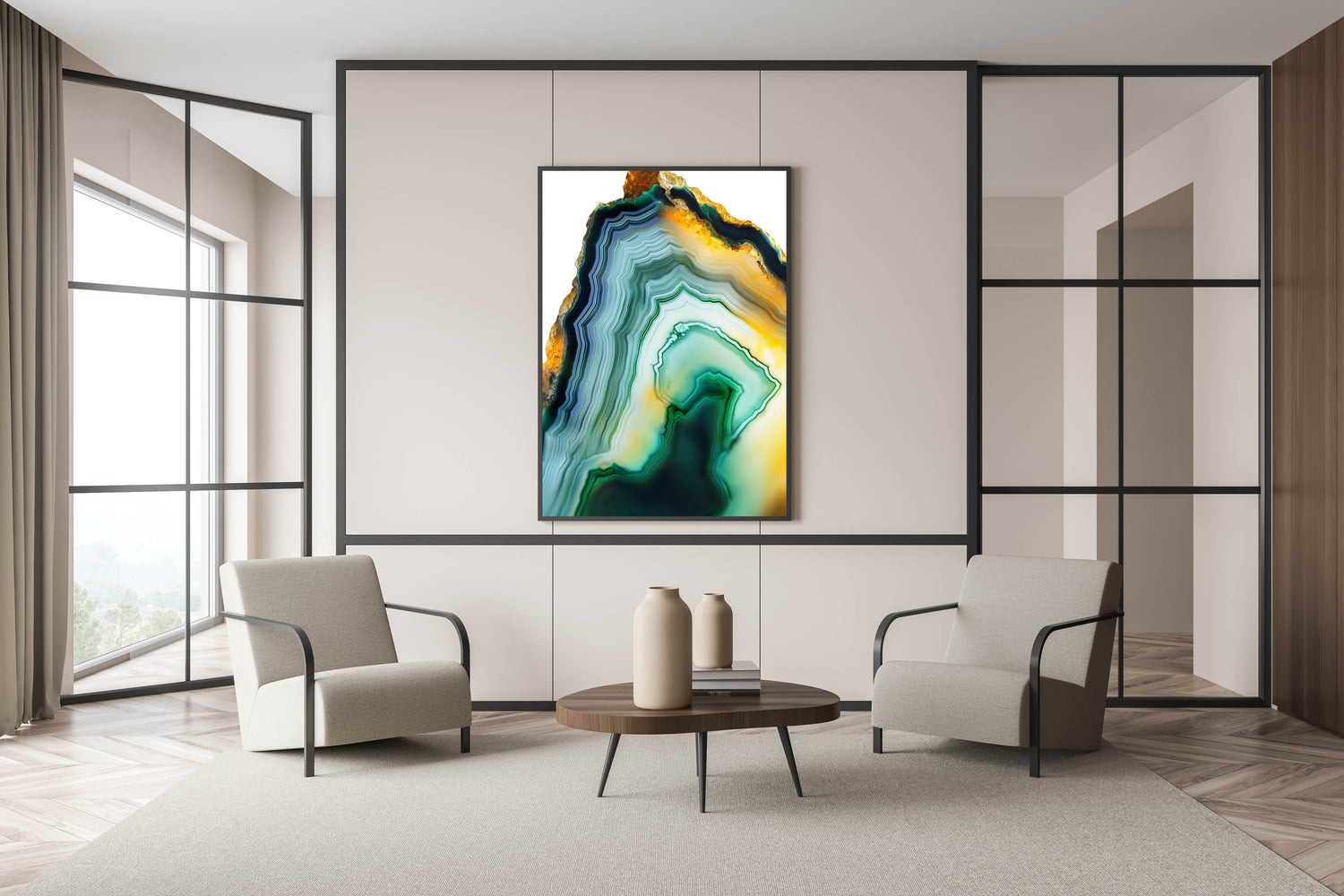 Transform your space with this stunning Abstract Geode Line Art, inspired by the intricate layers and vibrant hues of natural gemstones. This artwork features fluid, wavy lines that mimic the organic patterns of geodes, blending shades of green, blue, and gold into a mesmerizing design. Perfect for contemporary, nature-inspired, or modern interiors, this piece adds elegance and a touch of the natural world to your décor.