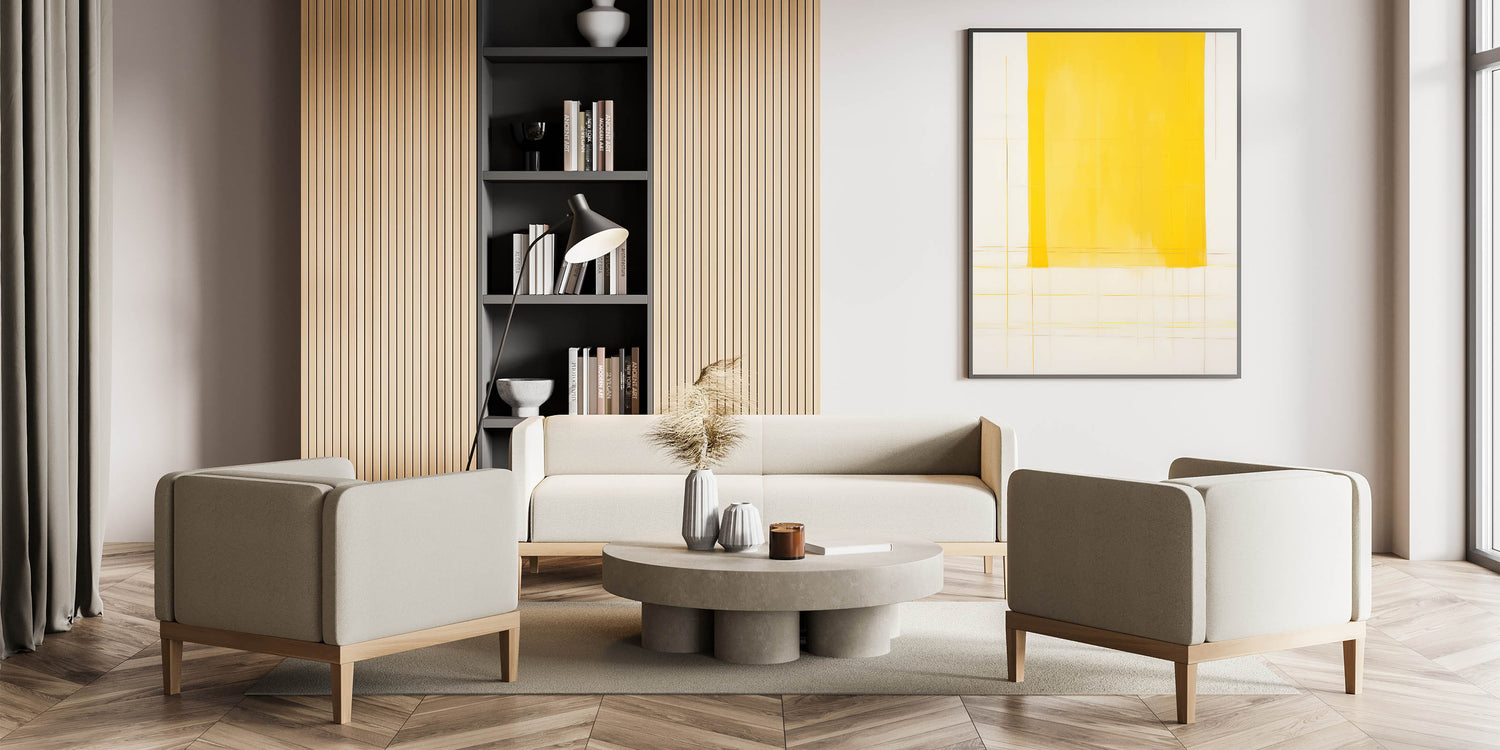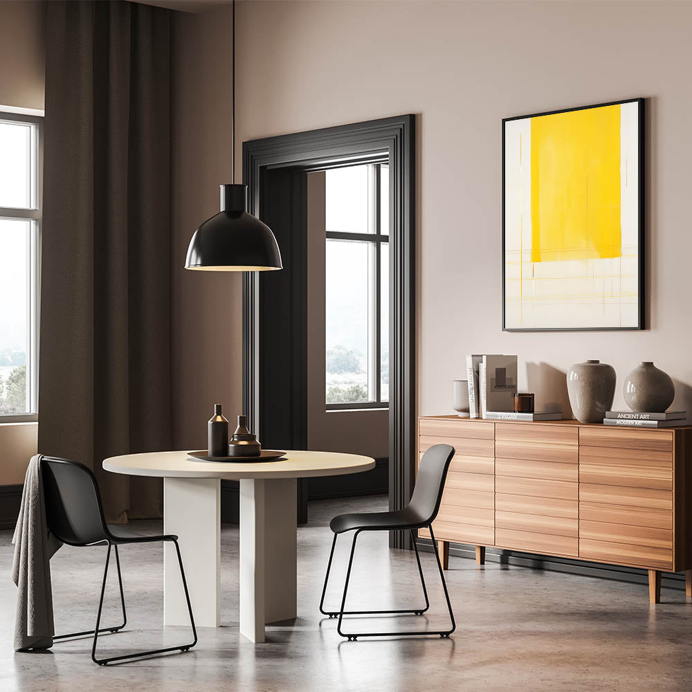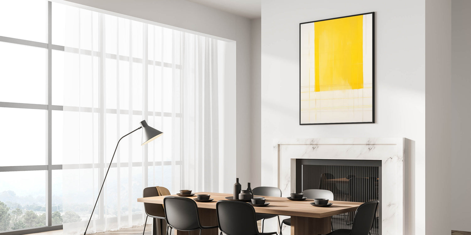- High-quality printing ensures the vibrancy of the yellow hue and sharp linear details, providing a crisp and modern look.