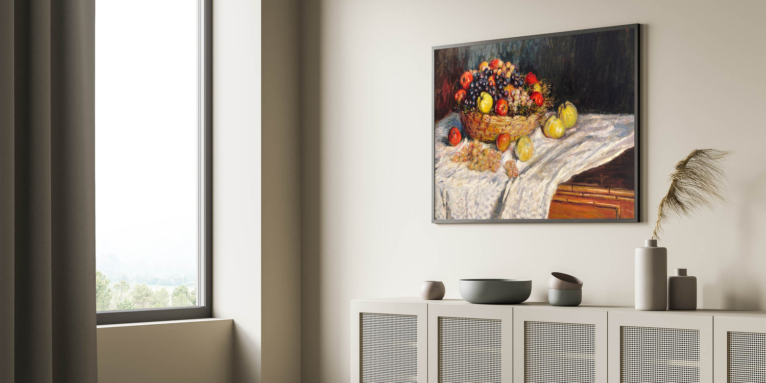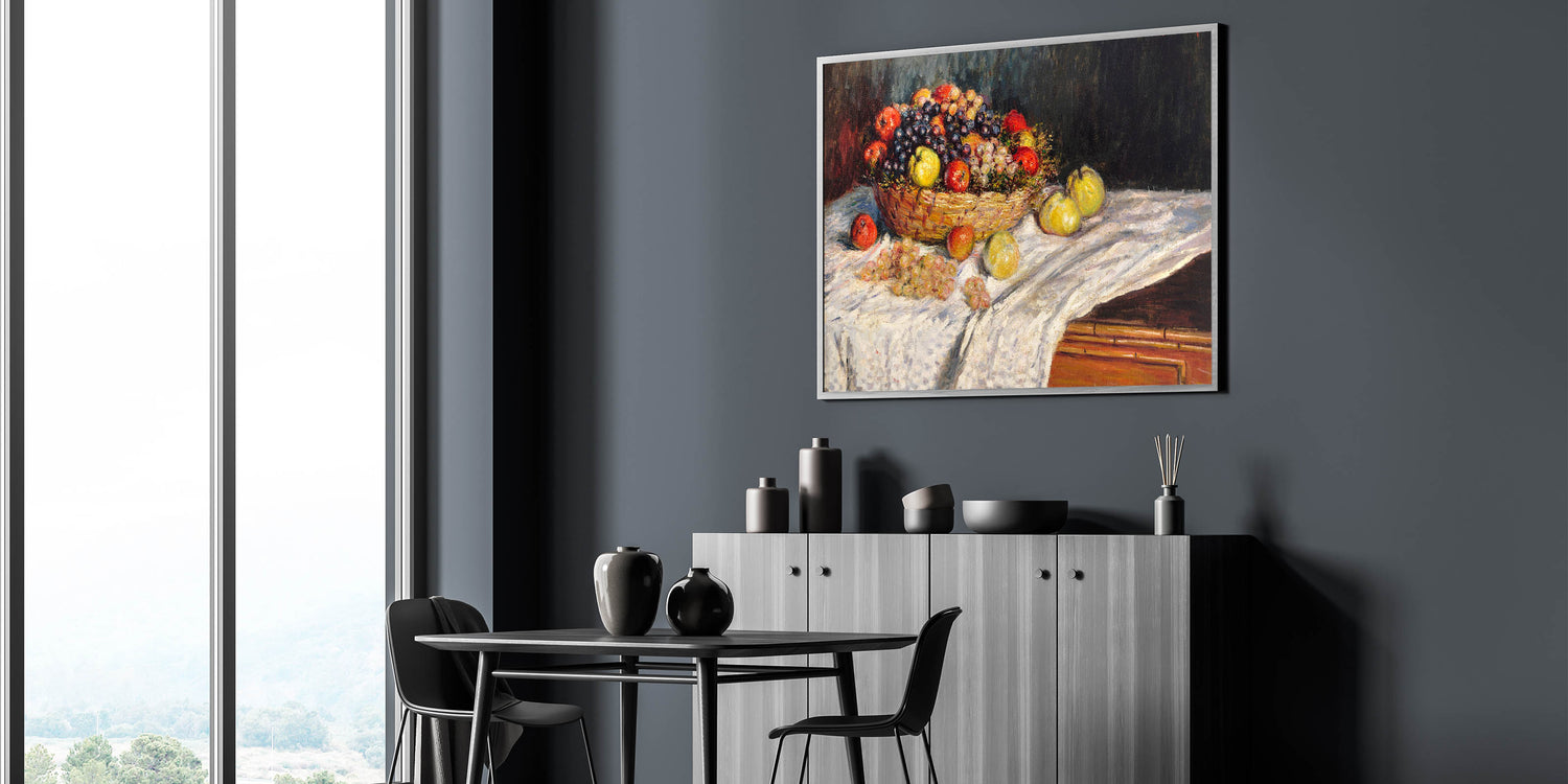 This classic still life by Monet is perfect for adding a sense of warmth and artistry to your home, ideal for dining rooms, kitchens, or spaces that could use a splash of color and sophistication.