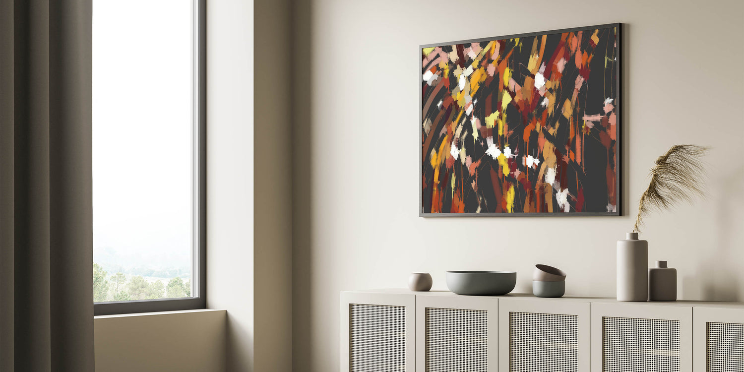 Bring movement, color, and emotion into your home with this contemporary abstract art a vivid celebration of fall’s fiery beauty.