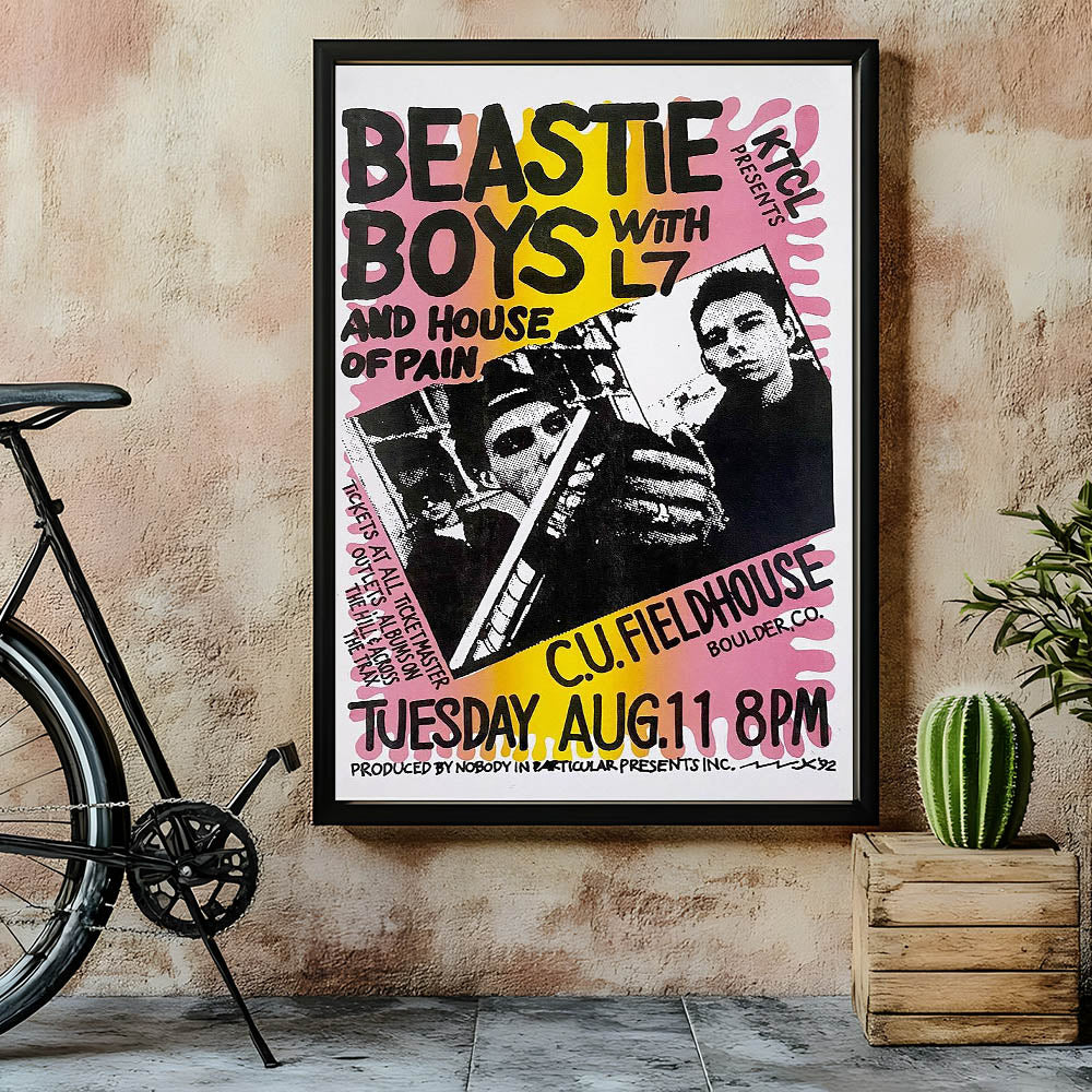 Capture the raw energy of the '90s with this Beastie Boys Retro Poster, a must-have for fans of vintage decor and nostalgic art prints. Featuring bold typography and a striking mix of yellow, pink, and black, this poster brings a classic retro style to any space. Perfect for adding a touch of mid-century modern art to your living room, bedroom, or music room.