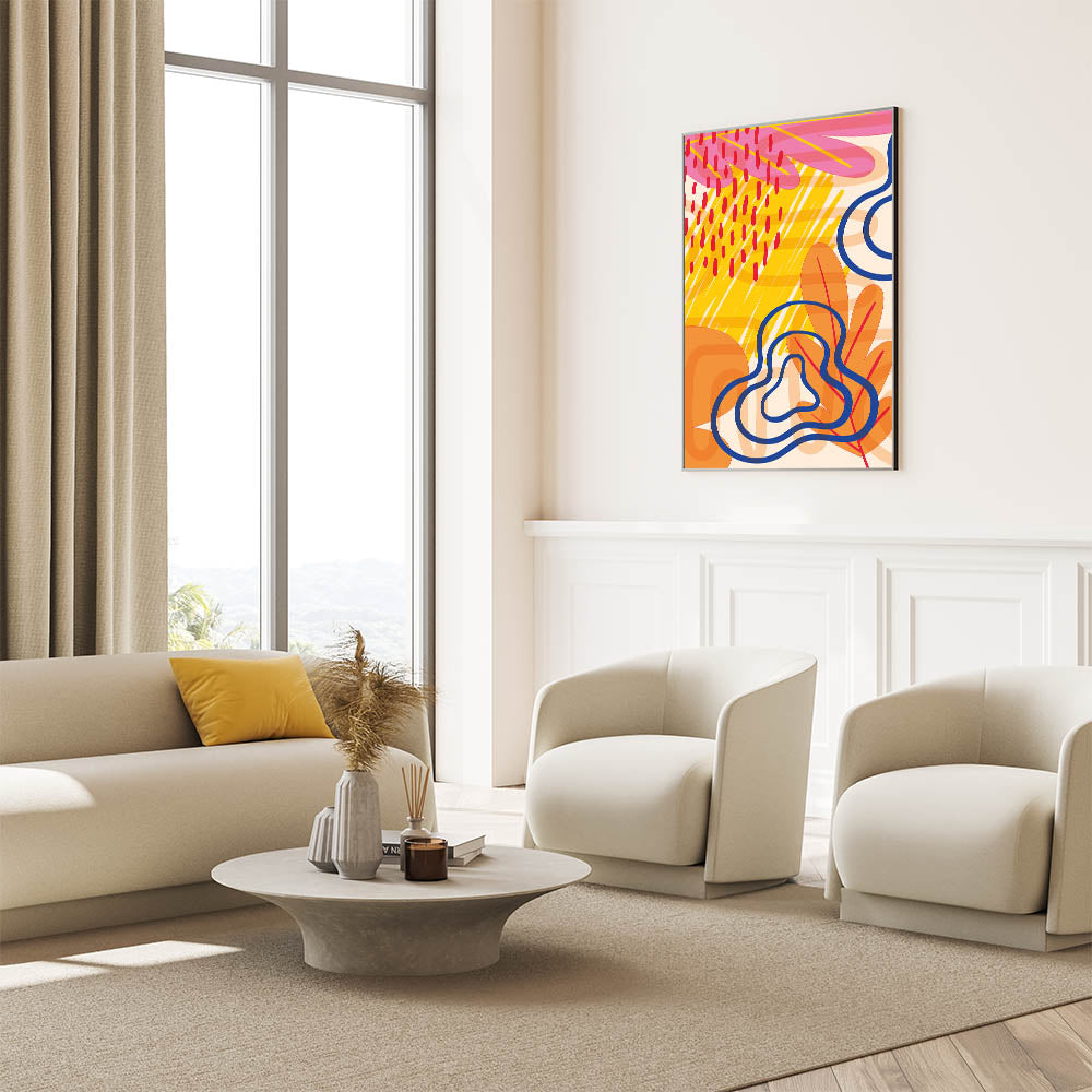 Make a statement in your home with this bold and vibrant Bohemian wall art, perfect for adding a burst of energy to any modern space. The eclectic design features a dynamic blend of vivid colors like yellow, pink, and blue, with abstract shapes that draw the eye and bring a lively vibe to your interior decor. Whether you're designing a living room, bedroom, or office, this boho chic wall hanging will instantly transform your space with its artistic flair and eclectic charm.