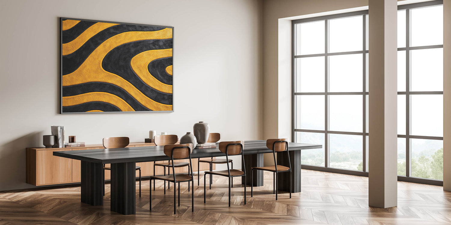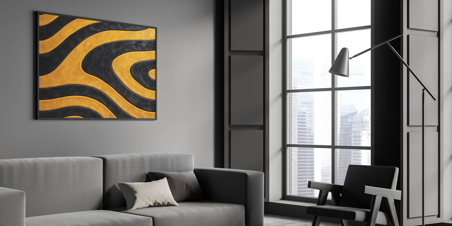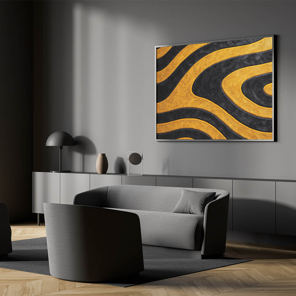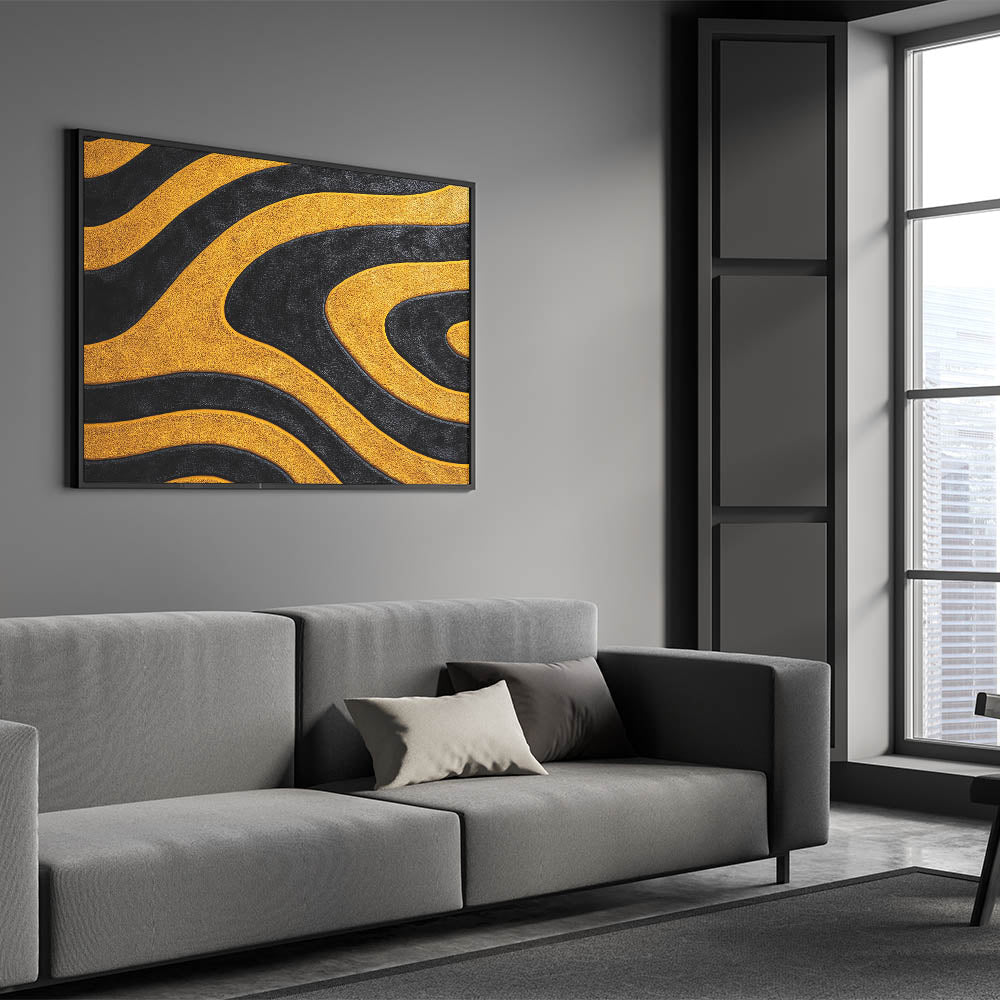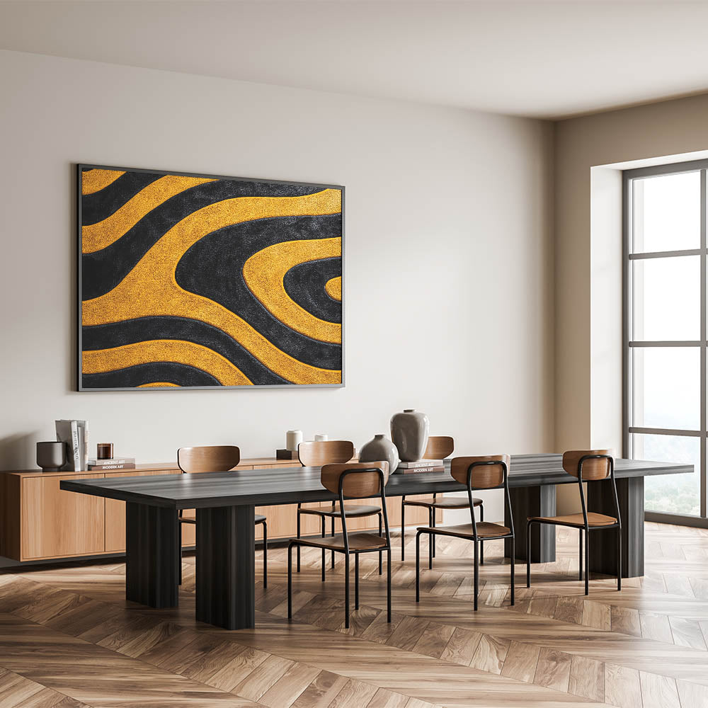 Infuse your interior with energy and motion through this bold abstract wall art, part of our high-contrast abstract art designs collection. Showcasing vibrant yellow waves against deep black contours, this geometric abstract art print delivers instant visual impact. It's an ideal pick for modern interiors needing colorful abstract wall hangings to brighten rooms.