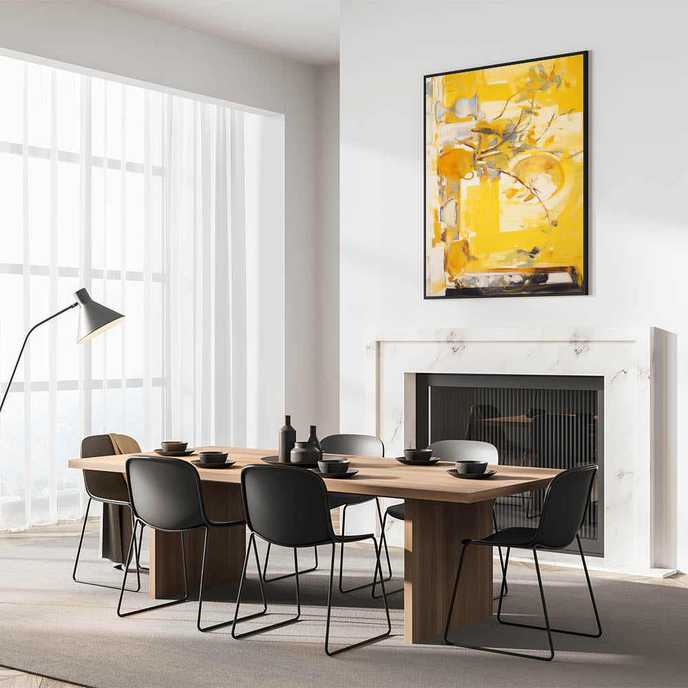 Infuse your home with energy and brightness with this electric-themed abstract artwork. Featuring vibrant yellow hues combined with dynamic brushstrokes and natural forms, this piece brings warmth and creativity to any space. The electric art canvas showcases a modern aesthetic that is perfect for contemporary interiors, offering a bold and artistic focal point.