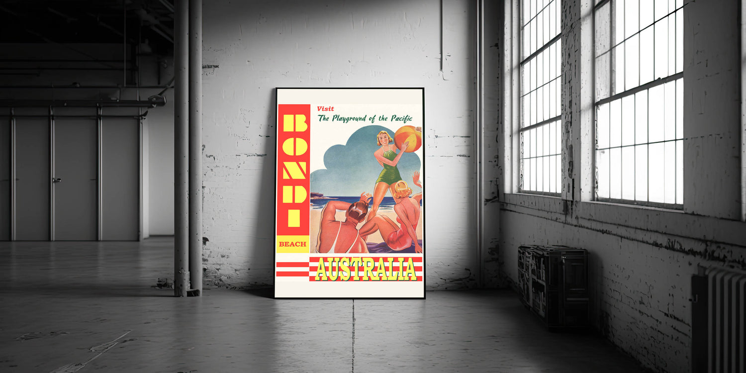 Add the warmth and energy of Bondi Beach to your home with this stunning retro travel poster. Whether you're a fan of Australian culture or simply appreciate vintage art, this piece will brighten up any space.