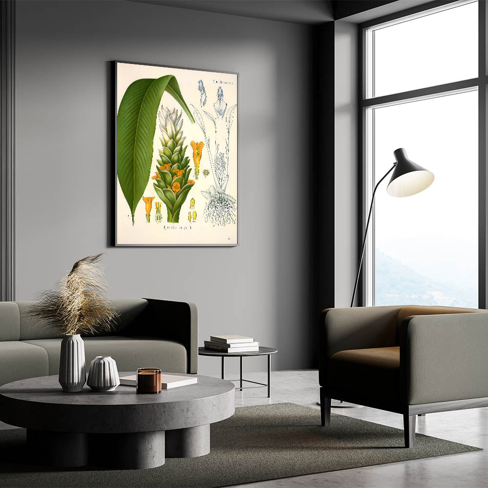 Add a touch of nature's beauty with our Botanical Art Prints, featuring a stunning vintage botanical illustration of Curcuma longa, commonly known as turmeric. The intricate depiction showcases vibrant yellow flowers, lush green leaves, and delicate roots, making it a perfect piece for nature-inspired decor. This vintage art style brings timeless elegance into your home, creating a serene atmosphere in any room.