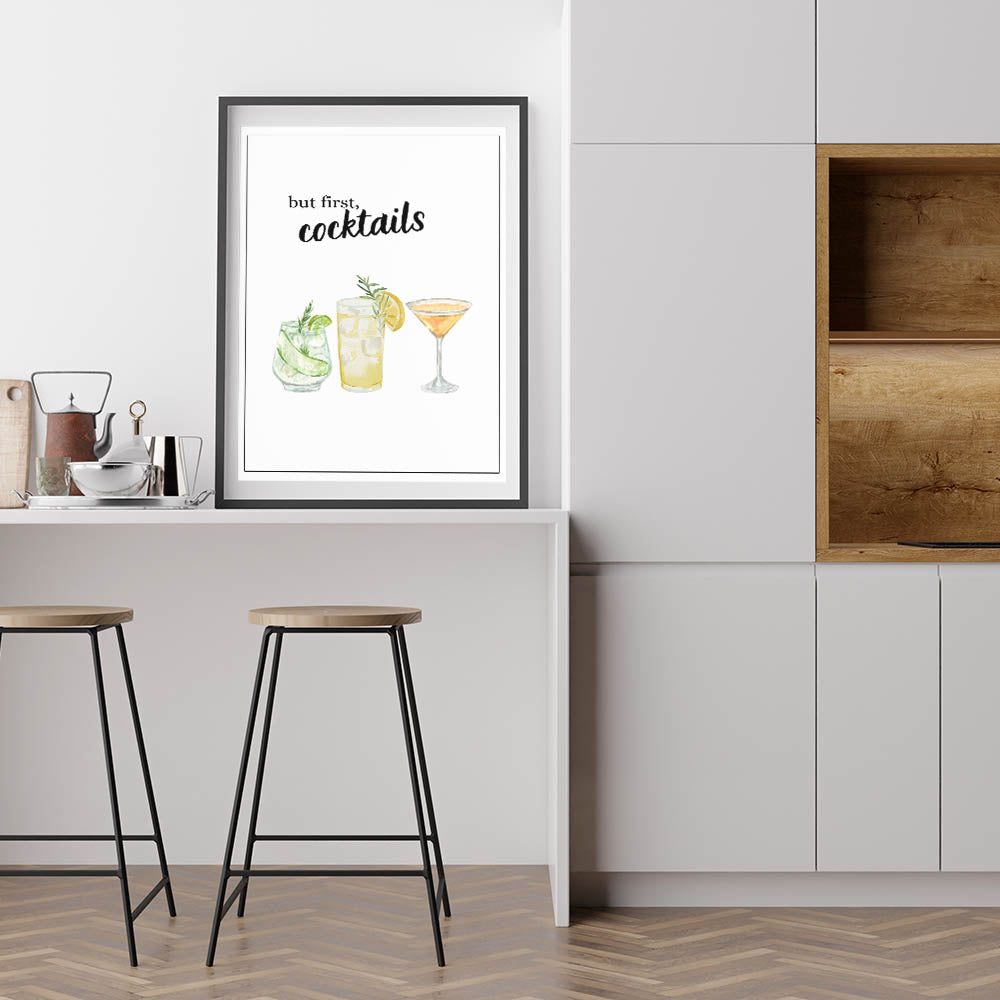But First, Cocktails Print - Drinks Wall Art for Kitchen & Bar