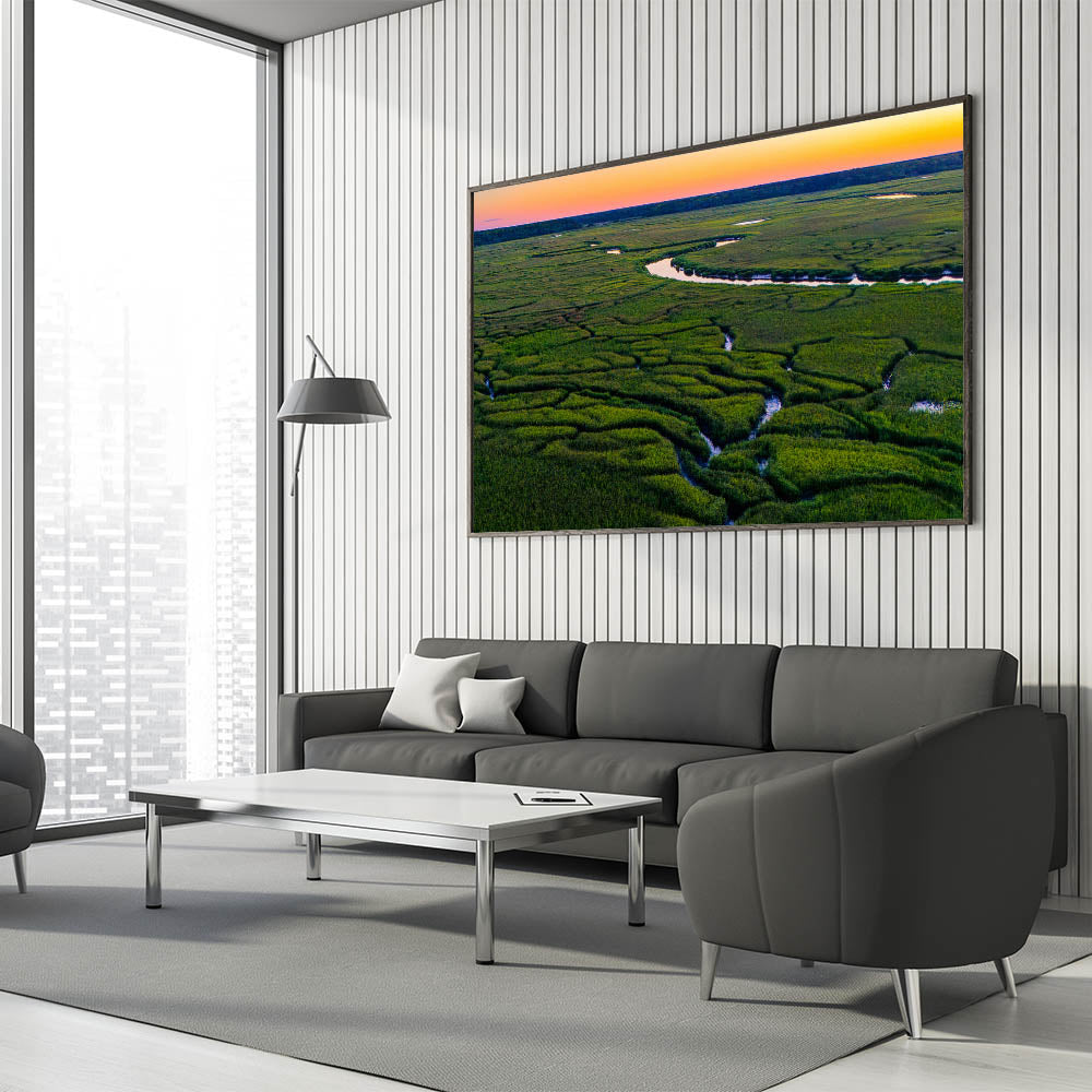This Lowcountry art piece is ideal for those seeking to bring the beauty of Charleston’s natural surroundings into their home or office. Whether you’re decorating a modern space or looking for a calming, scenic view, this marshlands print will transport you to the peaceful heart of the South.
