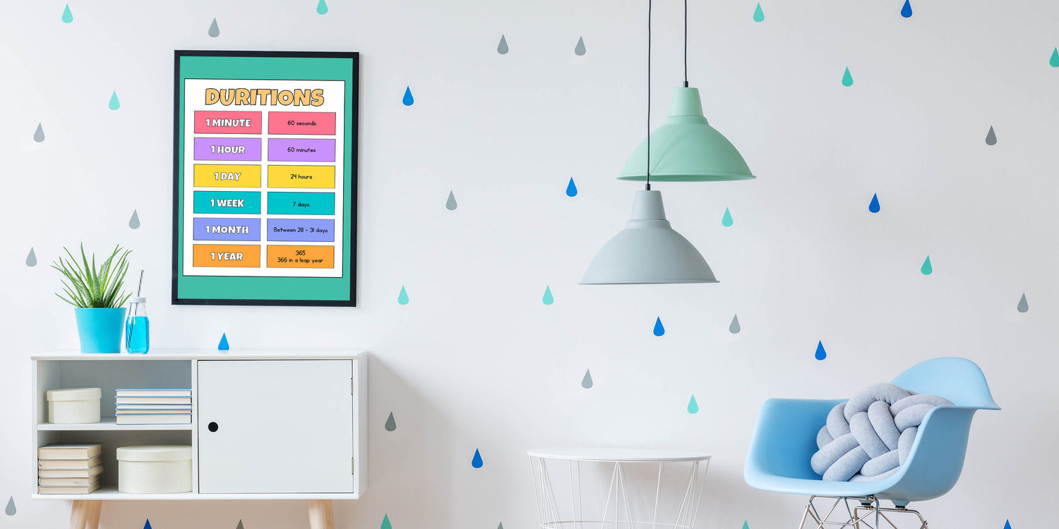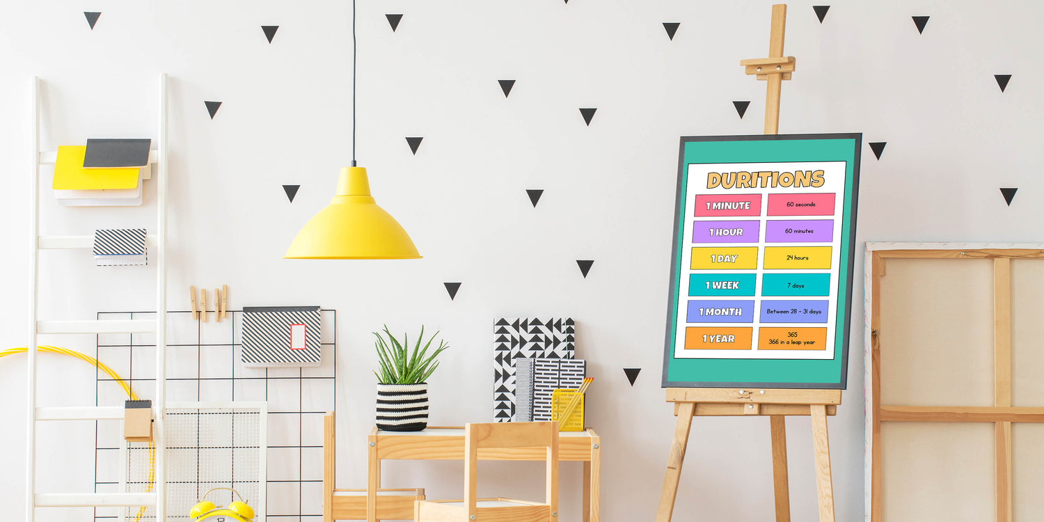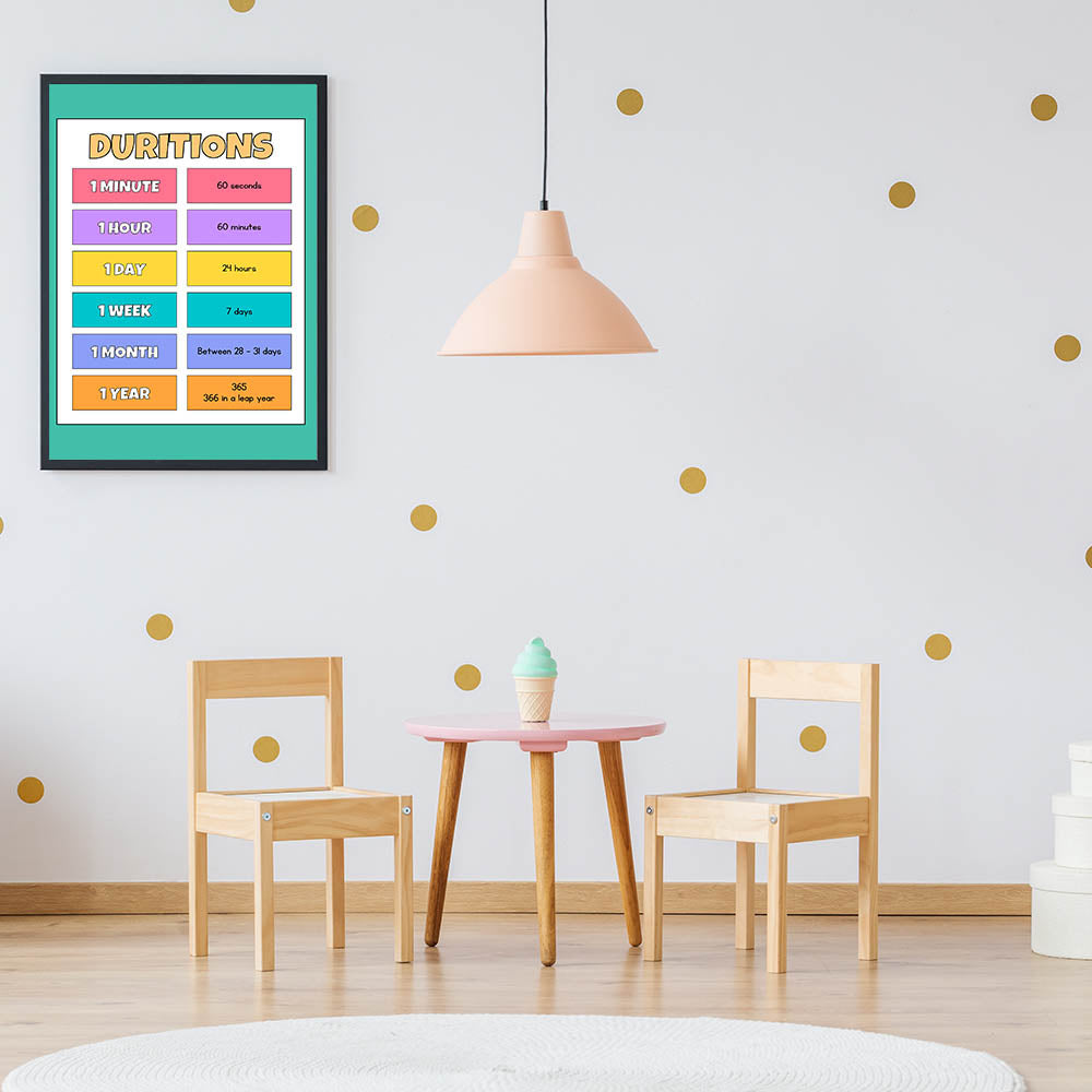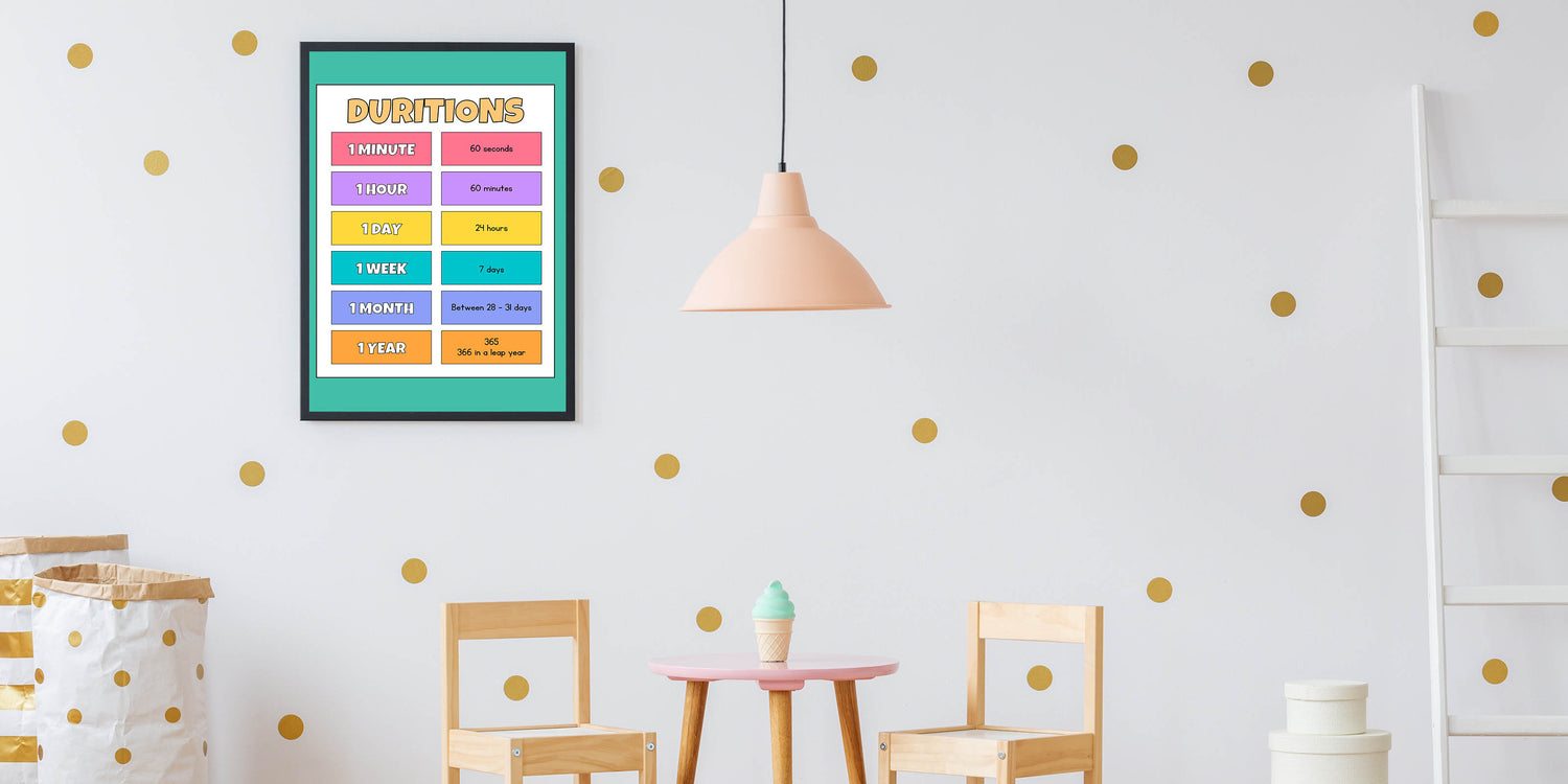 - Interactive Educational Art for Kids' Rooms covering time durations.