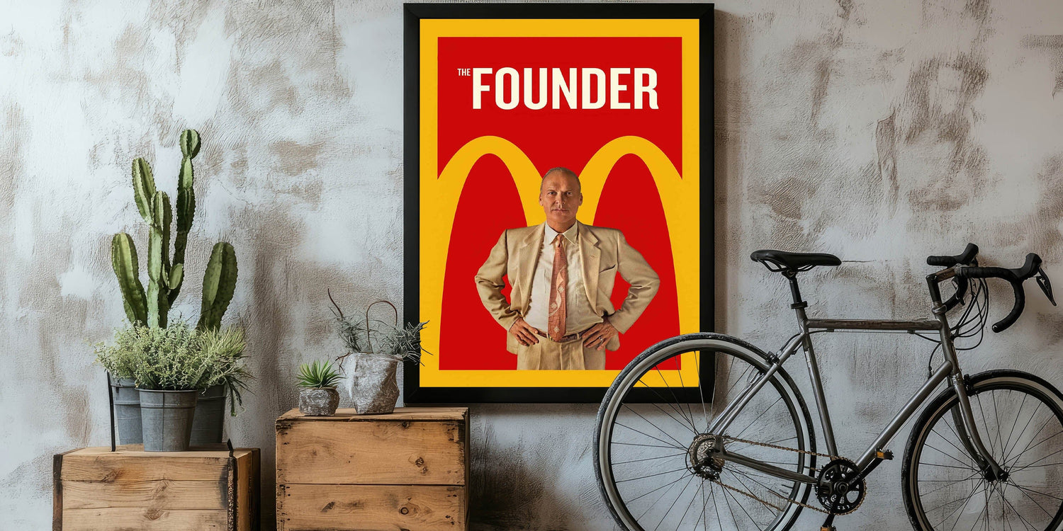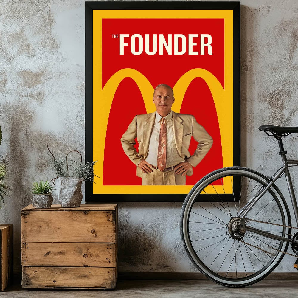 Celebrate the ambition and legacy of a business empire with this vintage 2010s movie poster from The Founder. This retro movie poster features Michael Keaton in his role as Ray Kroc, set against the unmistakable red and yellow backdrop symbolizing one of the biggest fast-food chains in history. A must-have for fans of business dramas and classic 2010s posters, this striking design embodies determination and corporate storytelling.