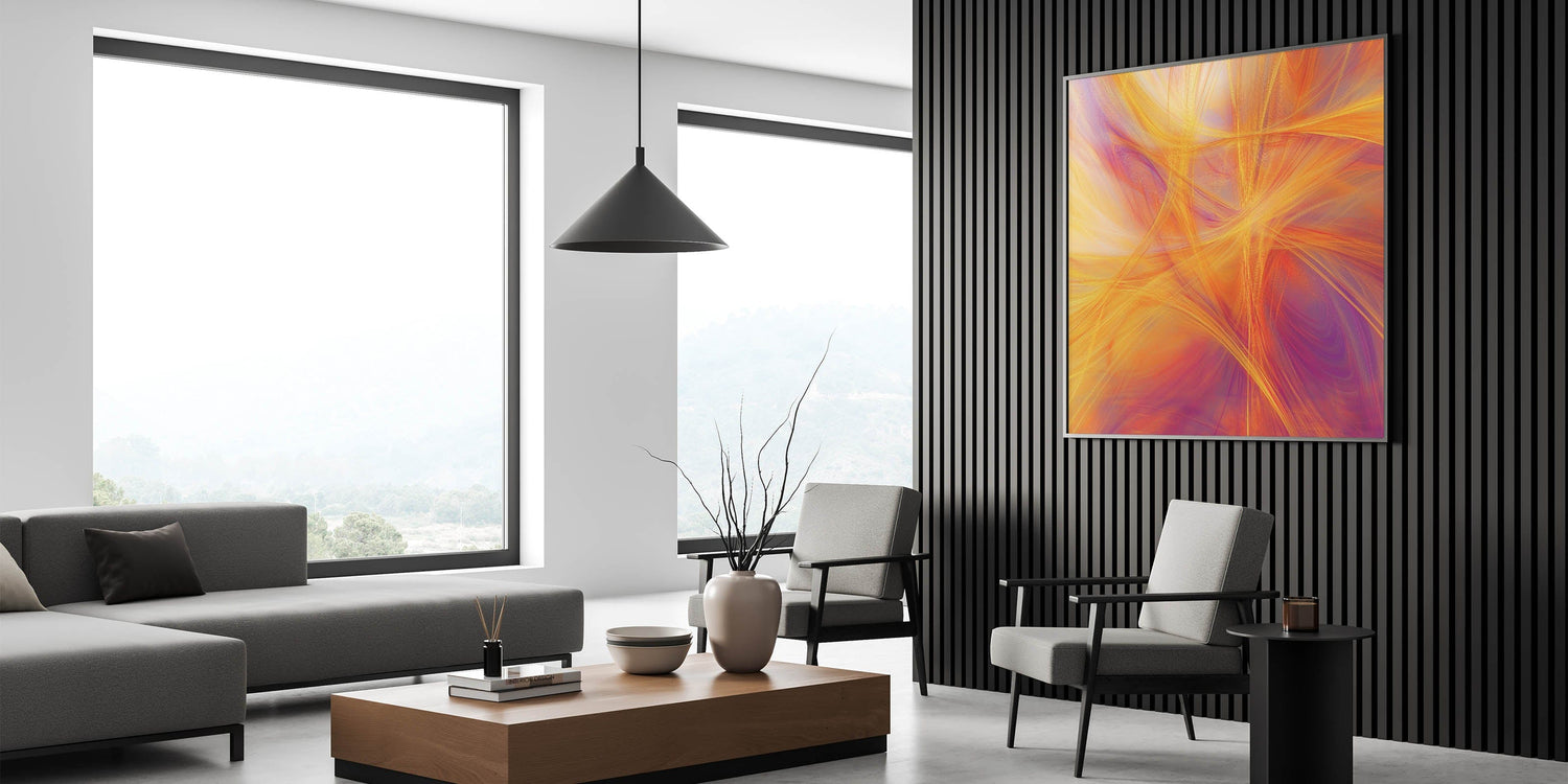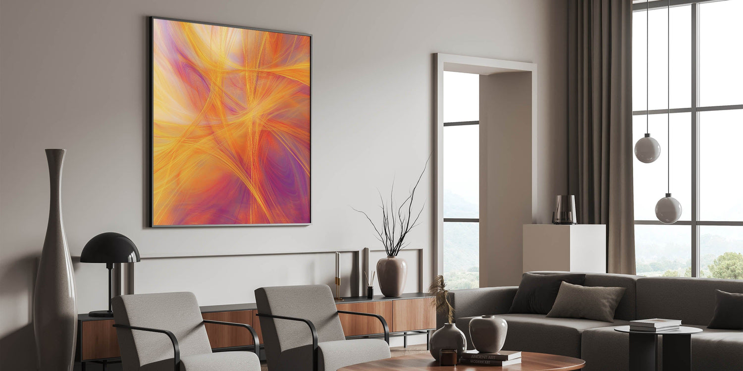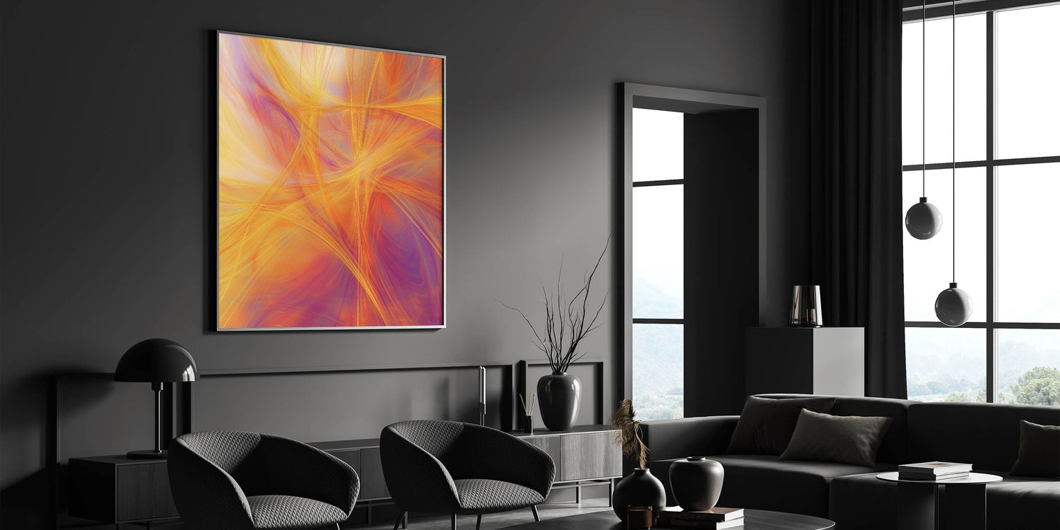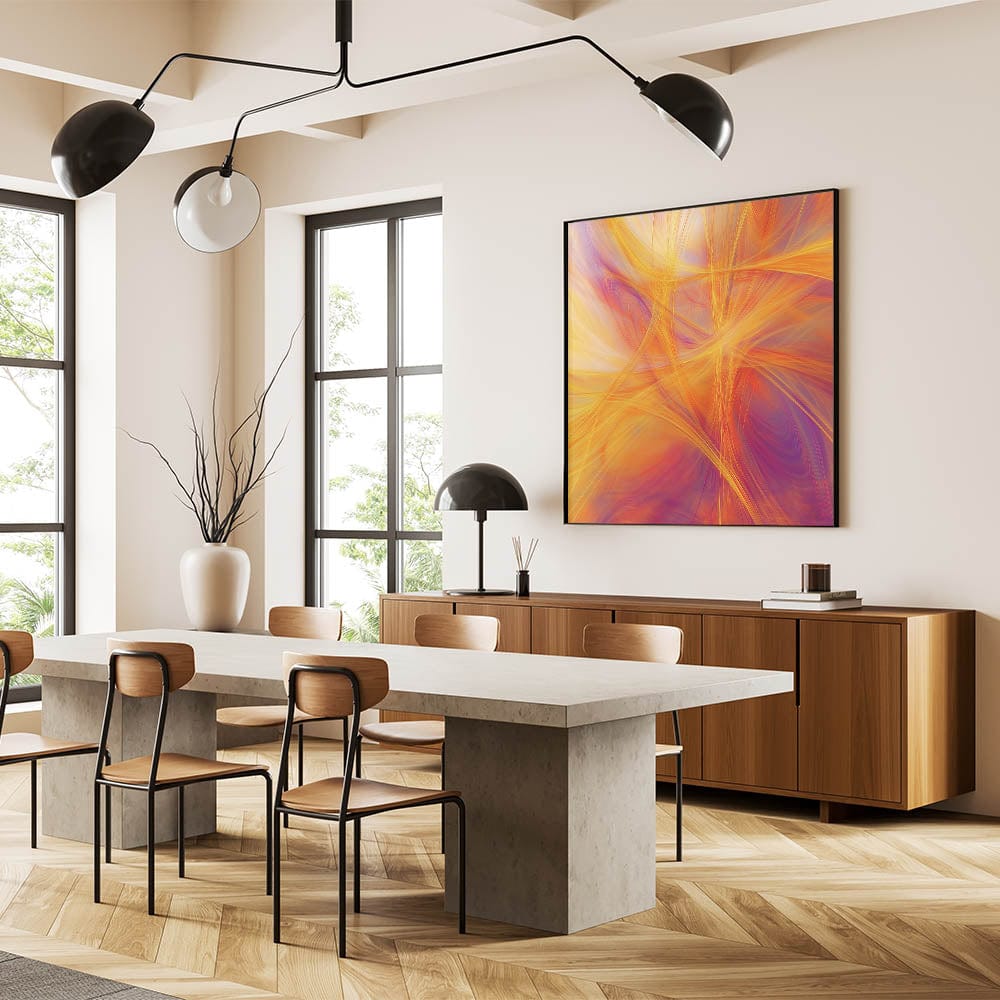 • A dynamic option for large abstract wall art in living rooms, workspaces, or creative studios