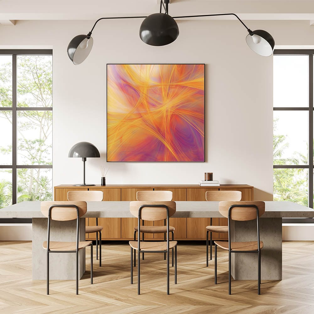 This abstract art print transforms any space with radiant color and intensity. A standout addition to gallery walls or statement rooms, it celebrates artistic freedom through light and flow.