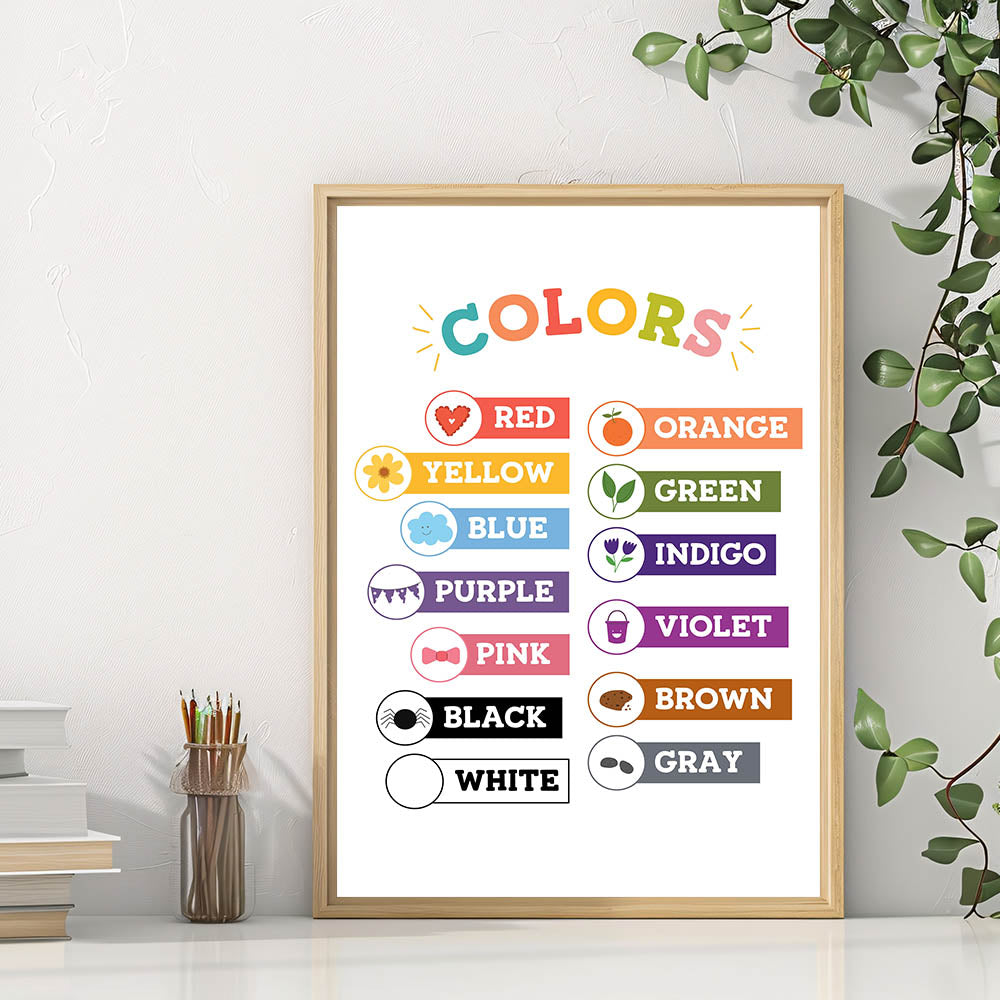 Enhance your child's learning environment with this Educational Color Poster. Whether used for teaching or decor, this Kids Learning Wall Art makes learning exciting and interactive.