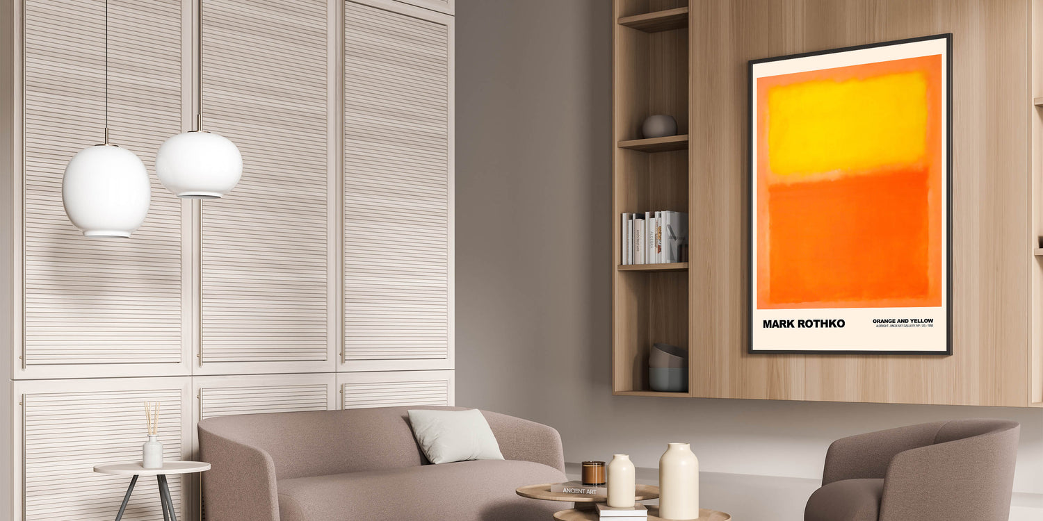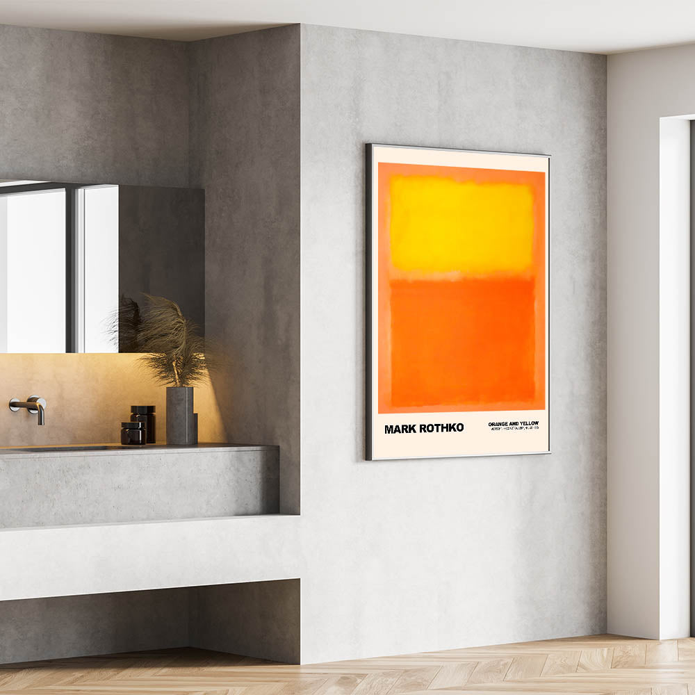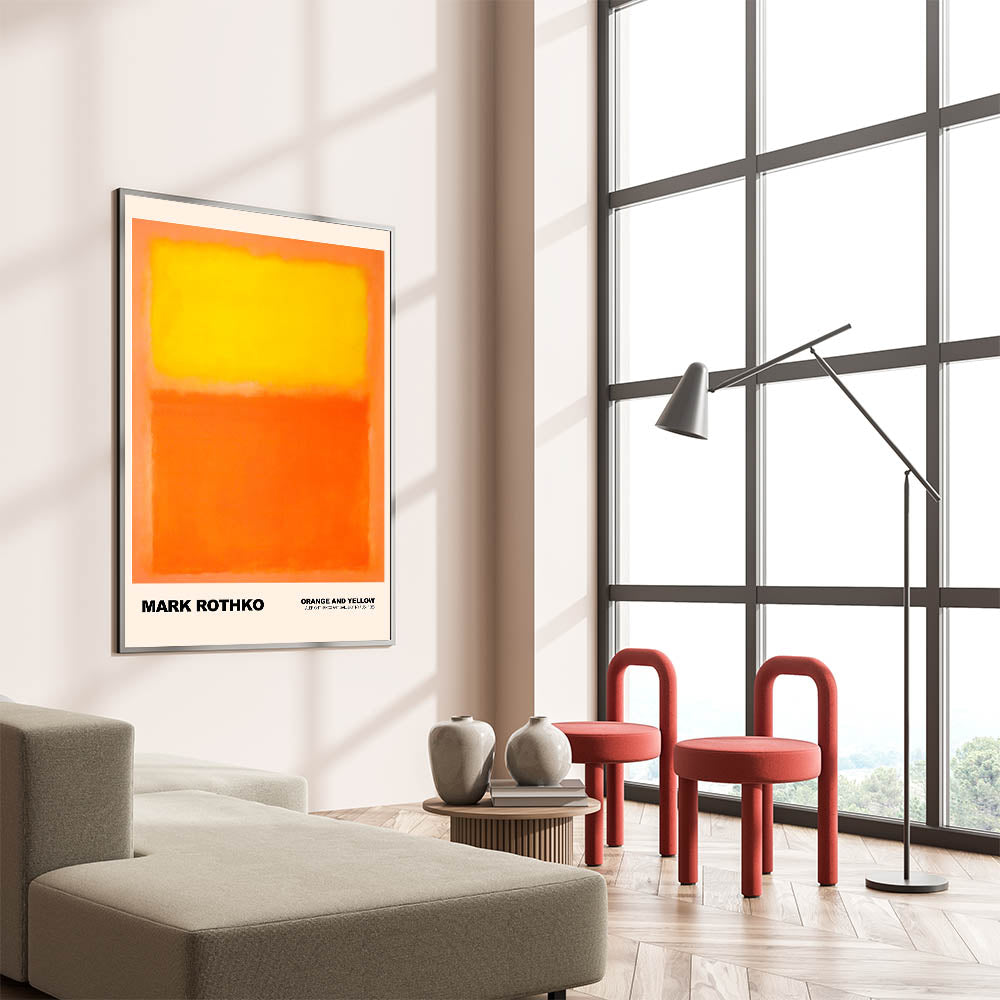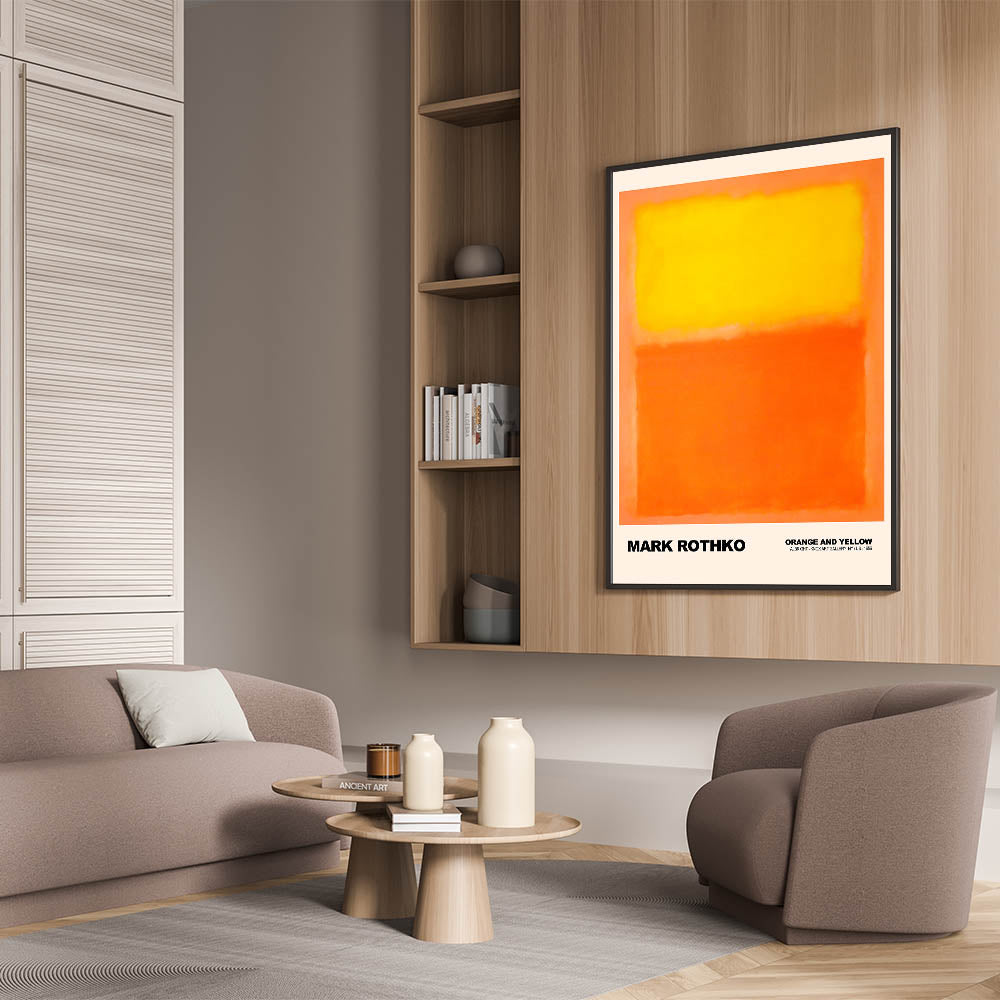 Add a touch of modern elegance to your space with this "Contemporary Canvas Art" inspired by Mark Rothko's iconic style. The artwork features two bold color fields of yellow and orange, creating a striking visual contrast that evokes emotion and depth. The soft edges and vibrant hues make it a captivating piece for any contemporary interior, perfect for adding warmth and sophistication.