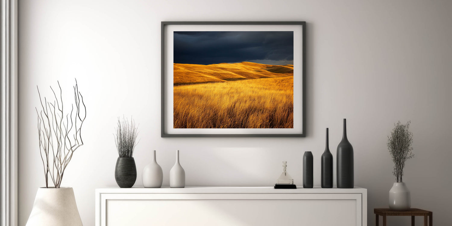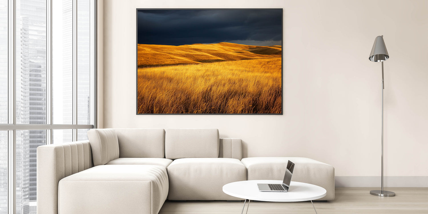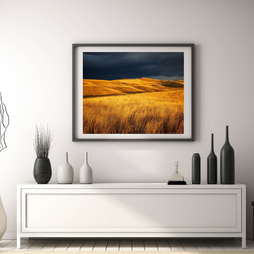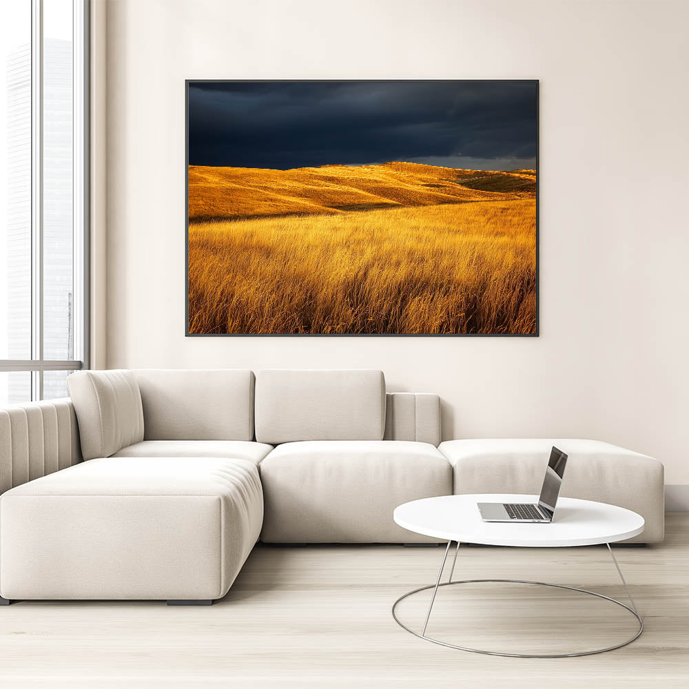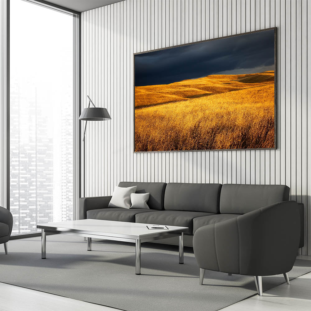 This farm and field art for home brings the essence of nature indoors, creating a calming and inviting atmosphere. The golden hues and dramatic sky make it a versatile piece for both rustic farmhouse and modern decor themes, offering timeless elegance for your home or workspace.