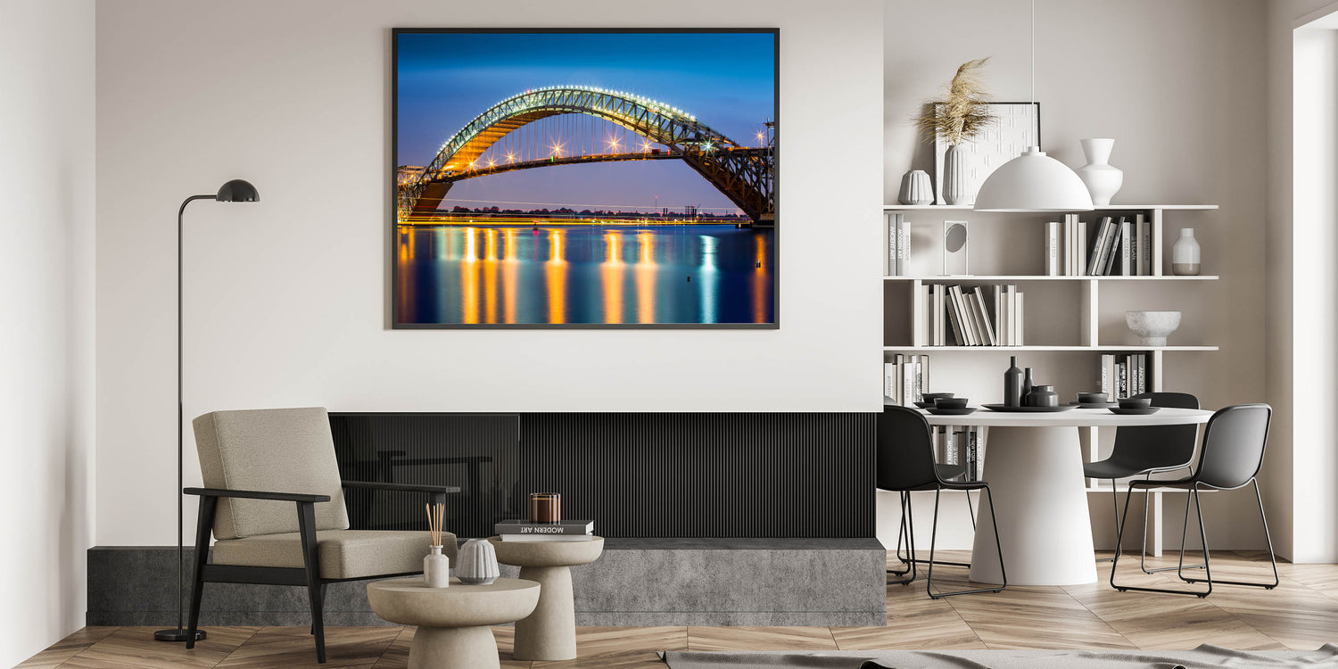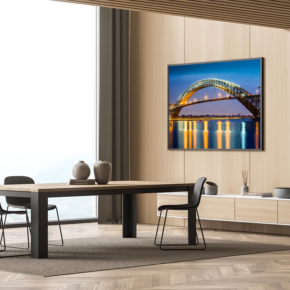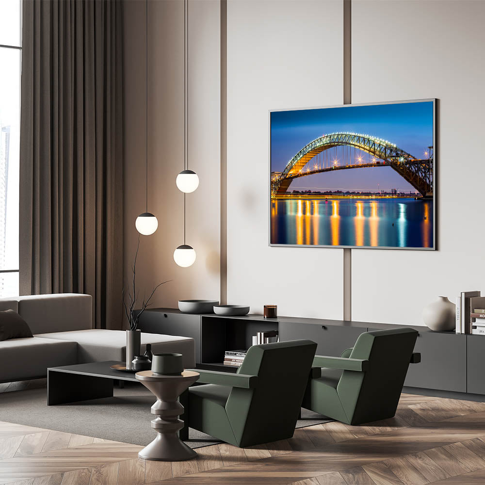 Capture the stunning beauty of the Bayonne Bridge as it lights up the night sky, casting shimmering reflections on the water below. This high-quality New Jersey wall art brings the charm of New Jersey's architecture into your space, creating a sense of elegance and modernity. Whether you prefer beautiful New Jersey canvas prints or framed art pieces, this scenic New Jersey photography is perfect for adding a striking visual to your decor.