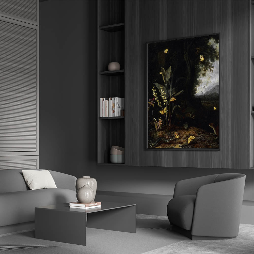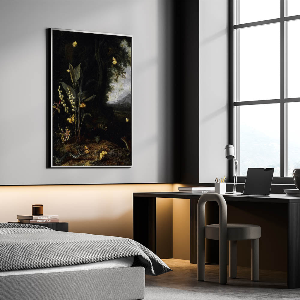 Discover the captivating allure of nature with this Dark Moody Wall Art piece, featuring a richly detailed forest scene filled with butterflies, woodland creatures, and lush foliage. The interplay of light and shadow brings out the intricate details, creating an immersive experience that perfectly embodies dark art decor. This artwork is an ideal choice for nature lovers who appreciate moody art prints that evoke the mysteries of the wild.