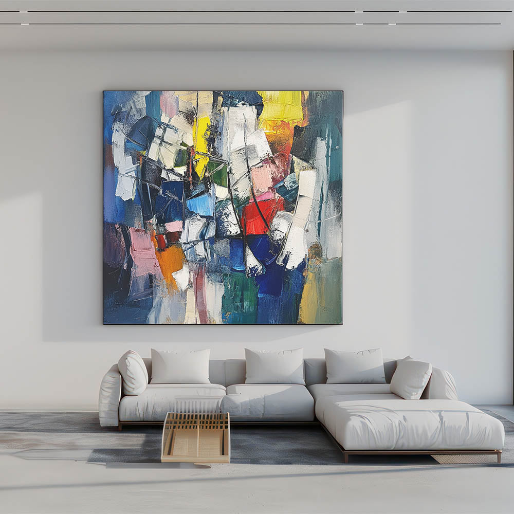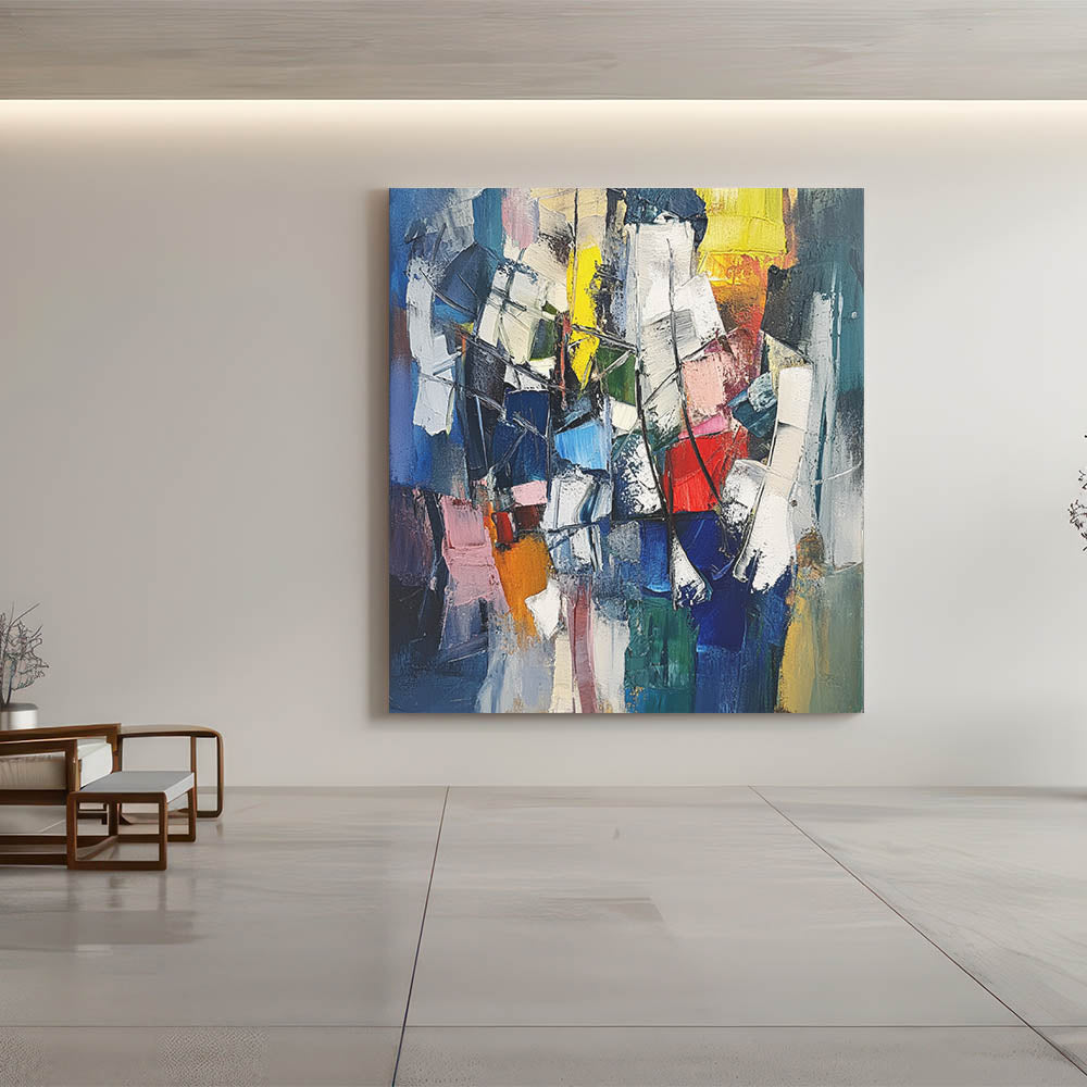 Immerse yourself in the energy of this Abstract Expressionist Art for Home Decor. This Original Abstract Expressionist Painting features a stunning interplay of blue, white, yellow, red, and green, creating a mesmerizing blend of texture and motion. With its bold contrasts and dynamic strokes, this Expressionist Canvas Wall Art makes a powerful statement in any space.