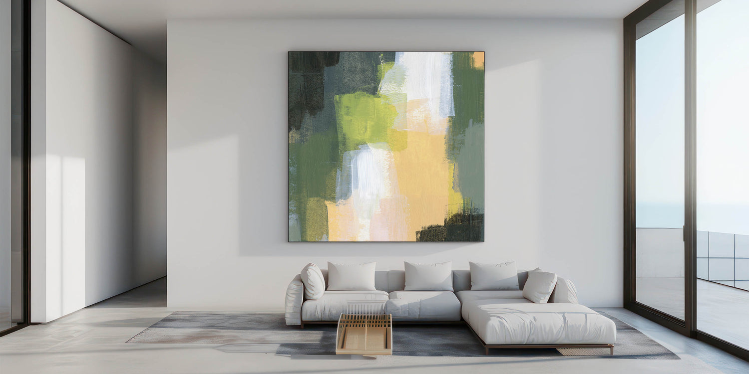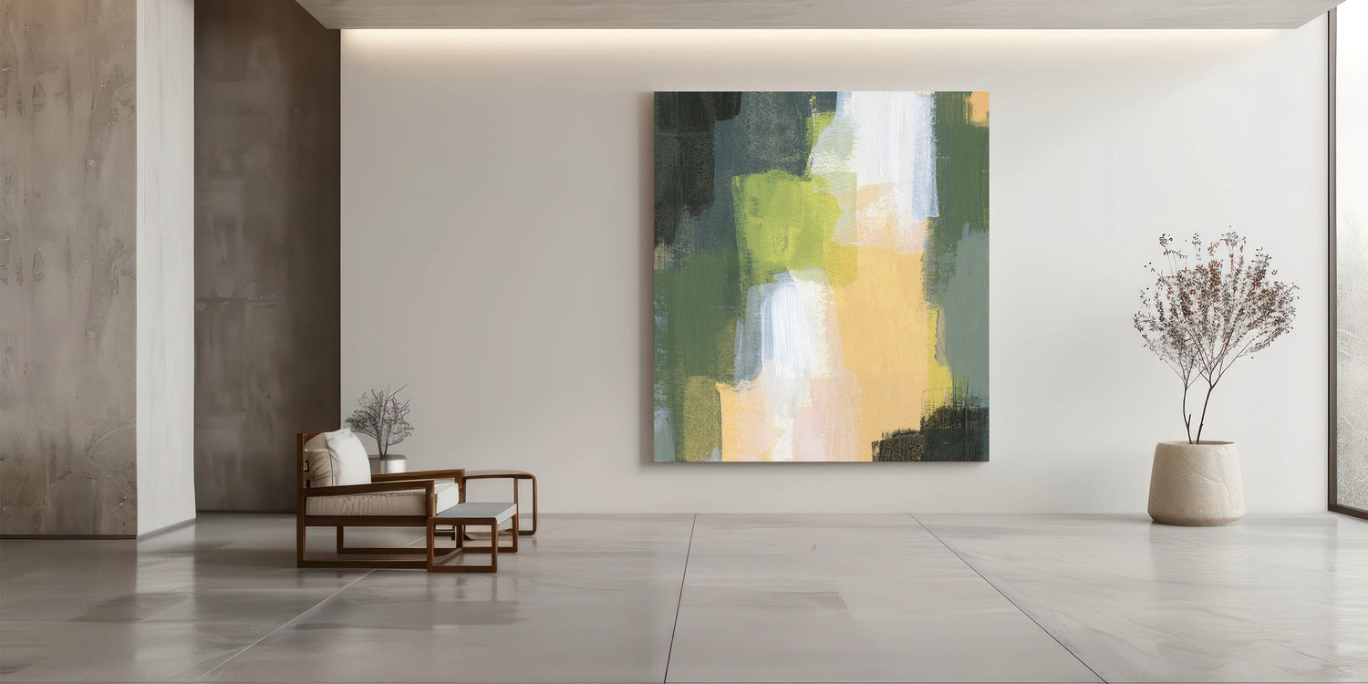 Immerse yourself in the organic beauty of Earthen Harmony Abstracts, a modern abstract art piece inspired by nature’s vibrant hues. Featuring deep olive green, muted yellow, and warm beige tones, this composition brings warmth and balance to any space. Its layered brushstrokes and textured depth make it a perfect addition to contemporary canvas art collections, ideal for those who appreciate earth tone art.