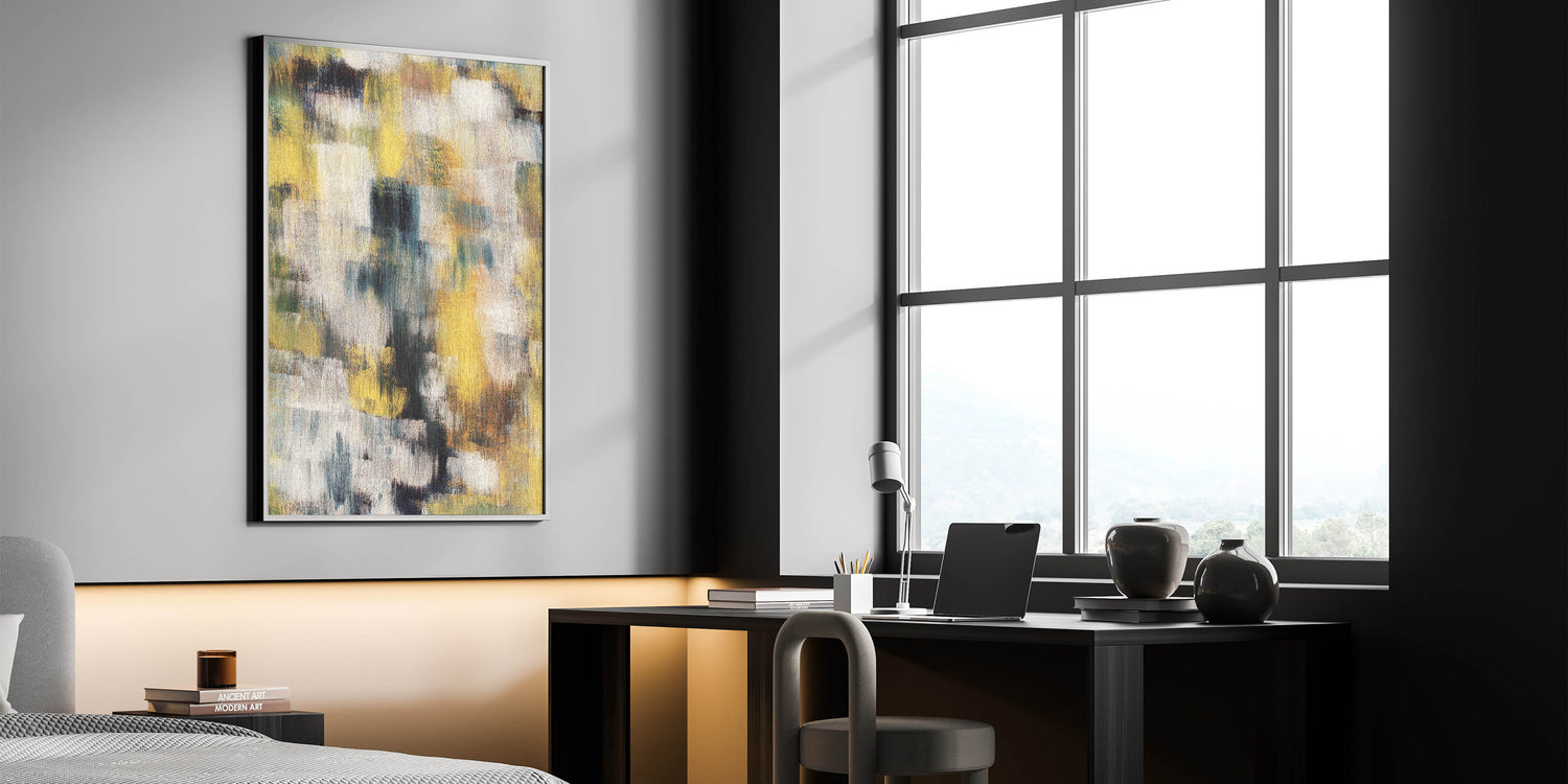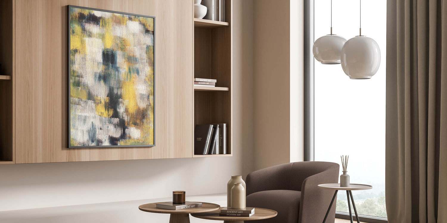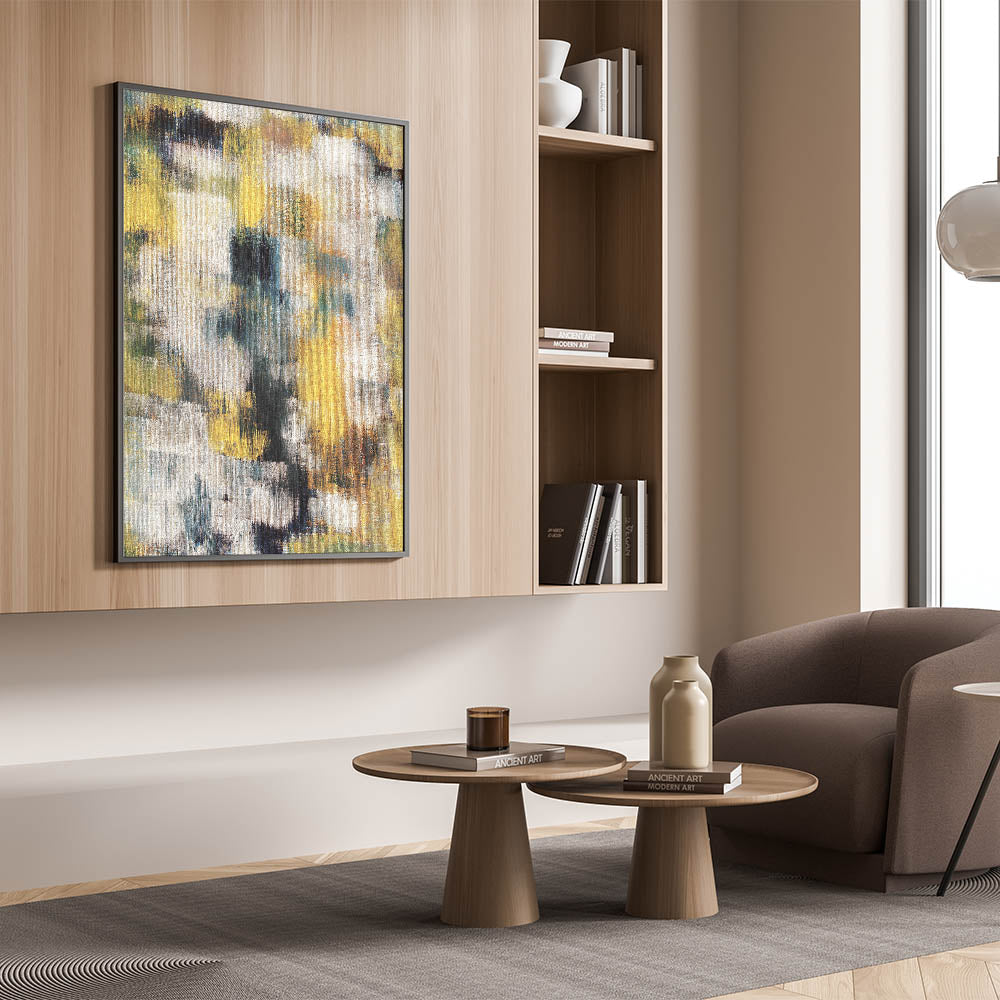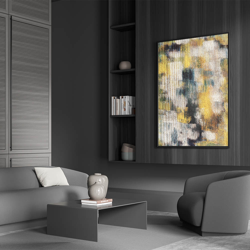 Bring the grounding tones of nature indoors with this captivating design. The blend of golden yellows, deep grays, and layered textures adds dimension to your walls while aligning with today's top trends in contemporary canvas art. Whether placed in a living room, office, or entryway, it makes a refined statement. Pair it with other neutral abstract prints for a cohesive look or let it stand alone as a bold focal point.