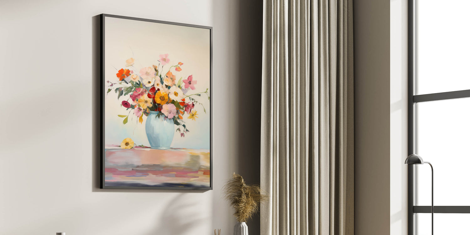 Electric Floral Wall Art: Vibrant Flower Bouquet in Modern Electric Decor