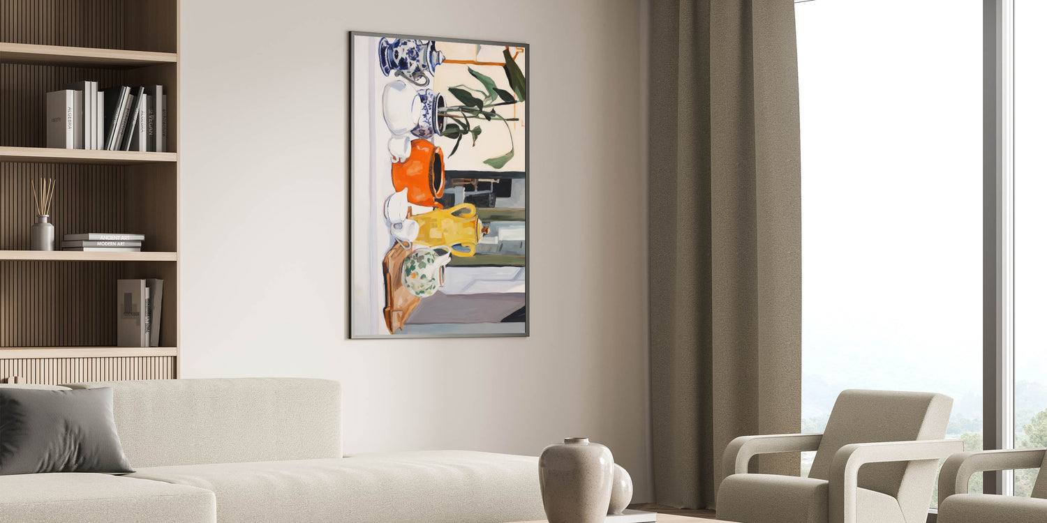 Electric Still Life Art with Vibrant Pottery | Modern Abstract Decor