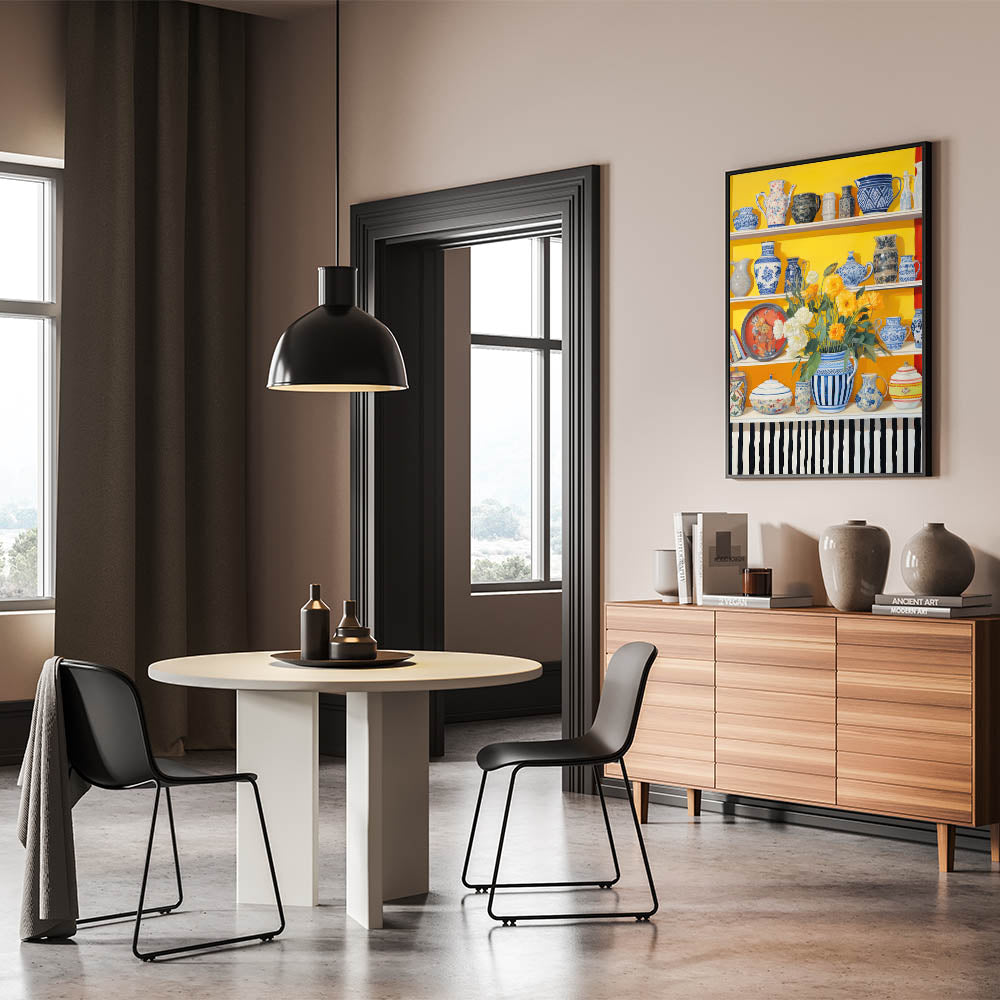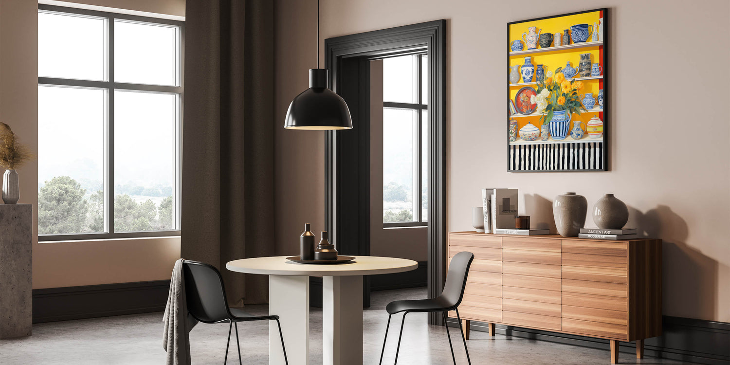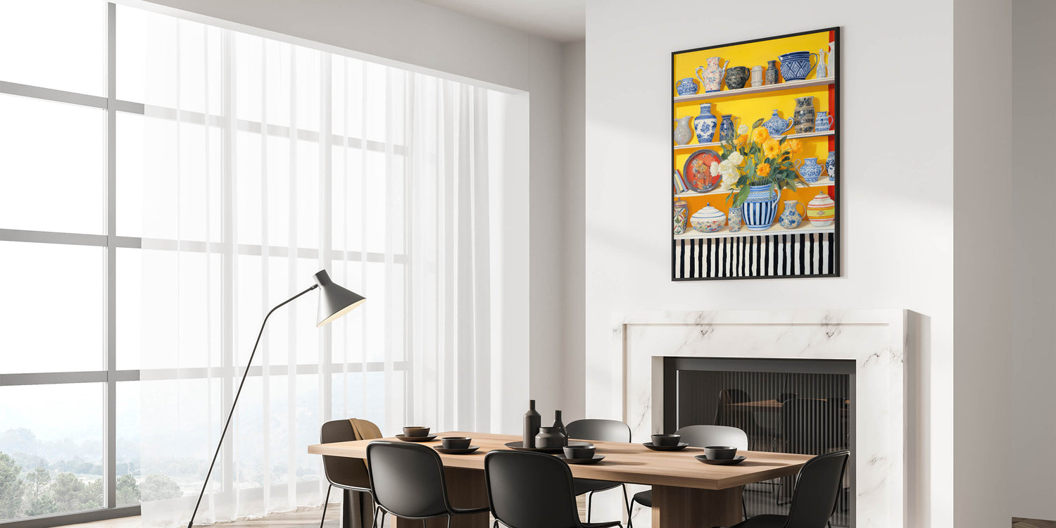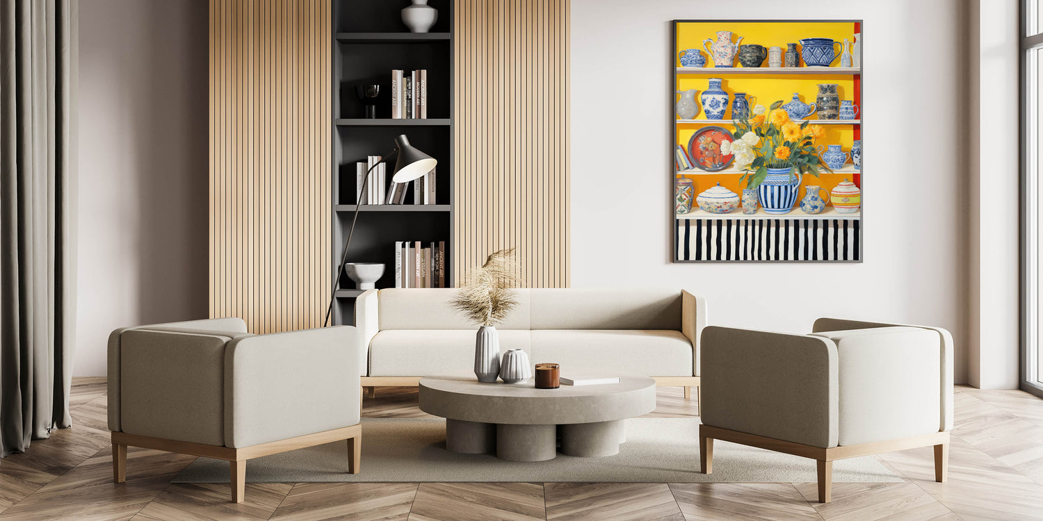 Electric Still Life Wall Art with Bold Vases and Flowers | Modern Decor