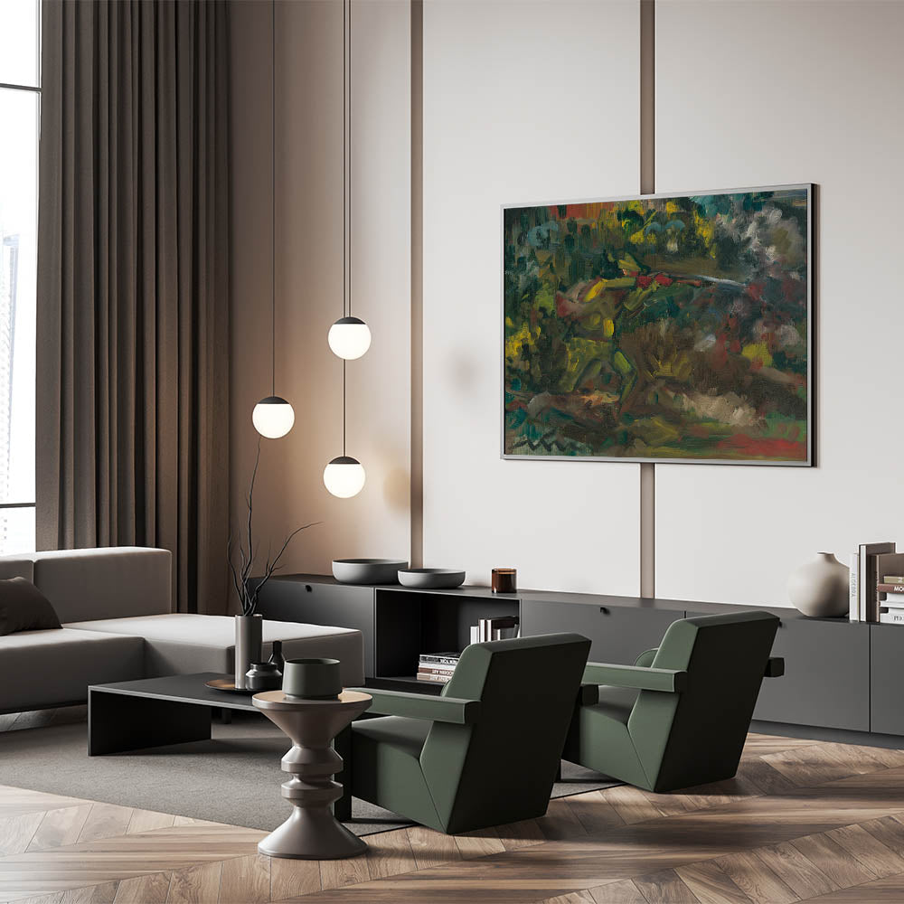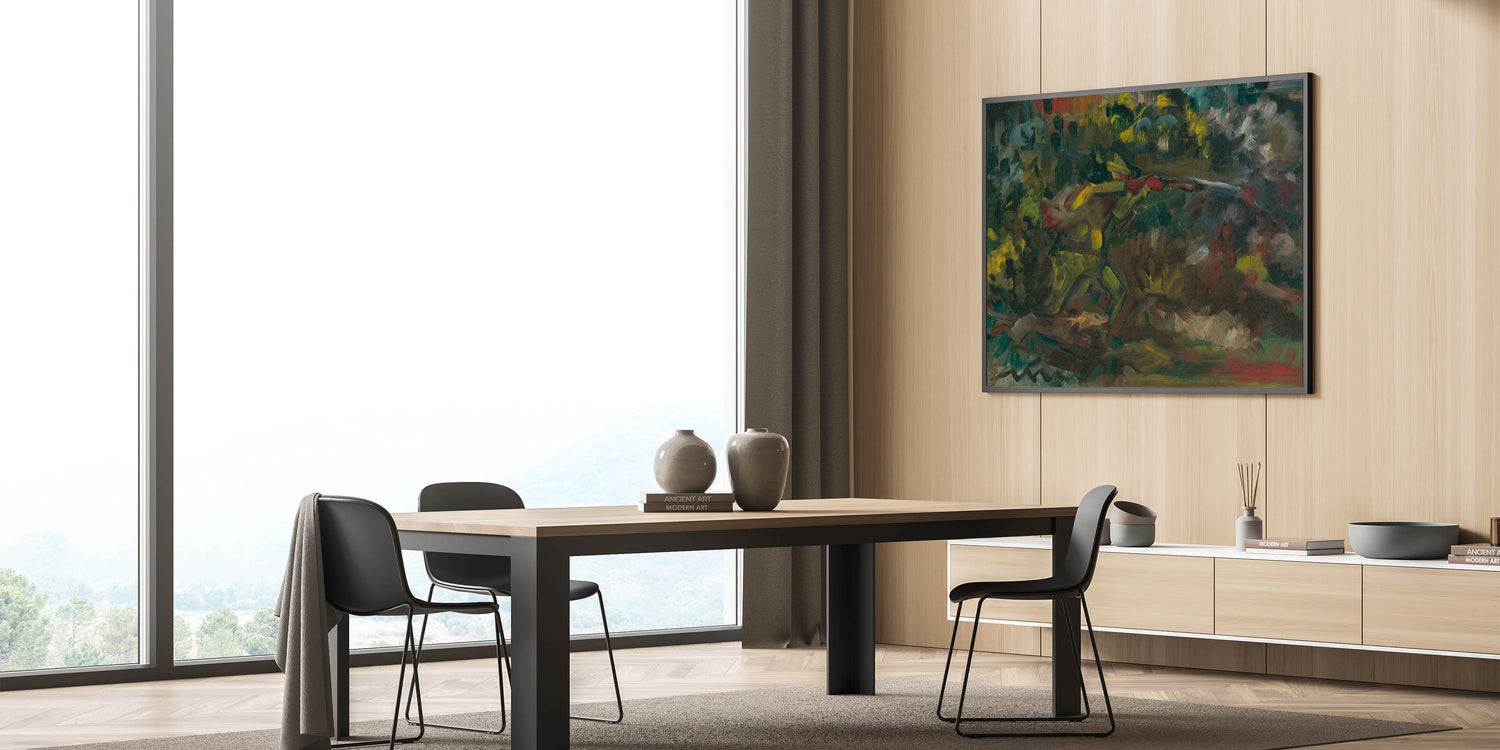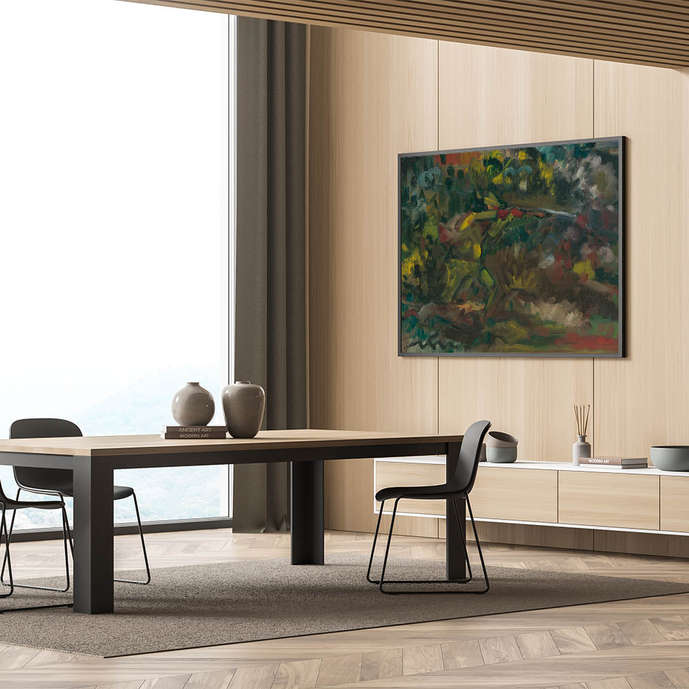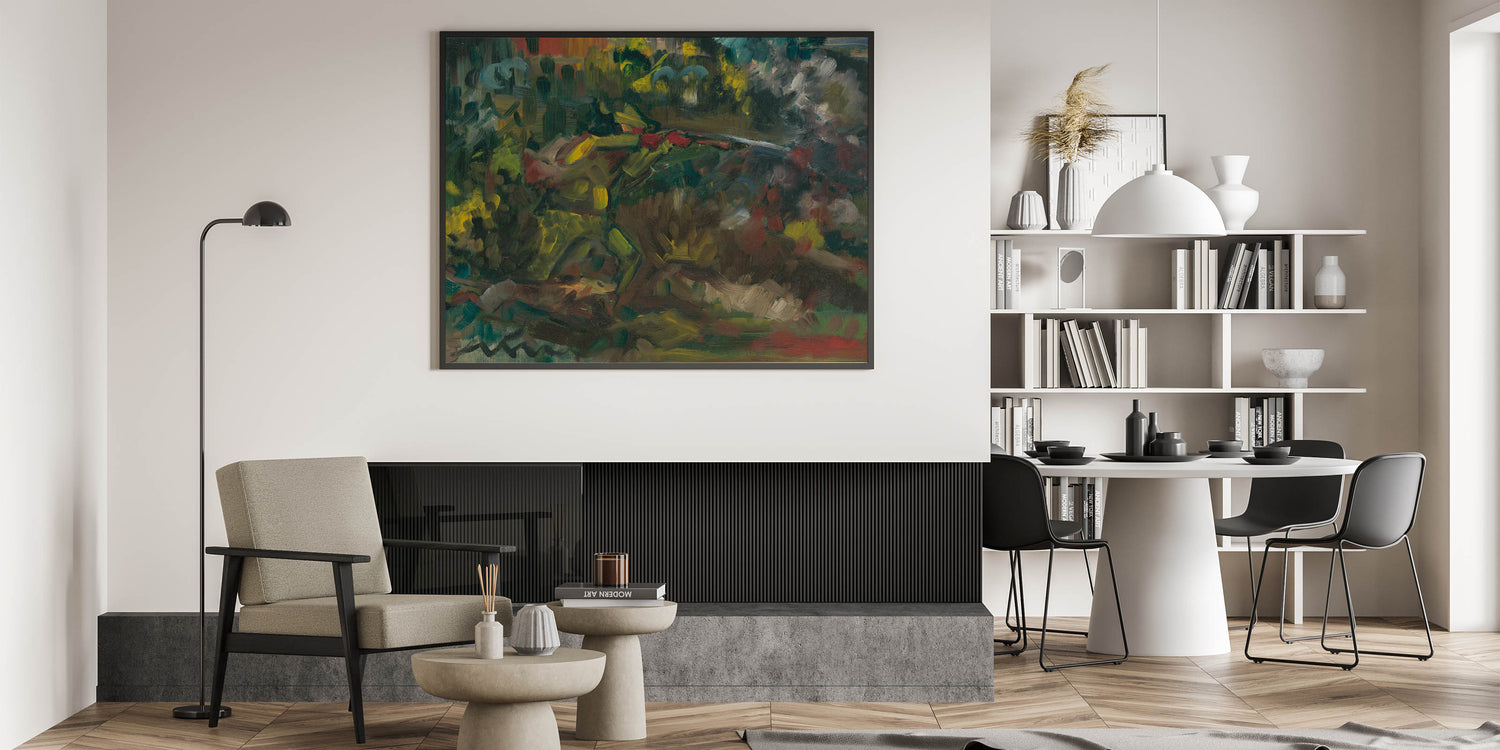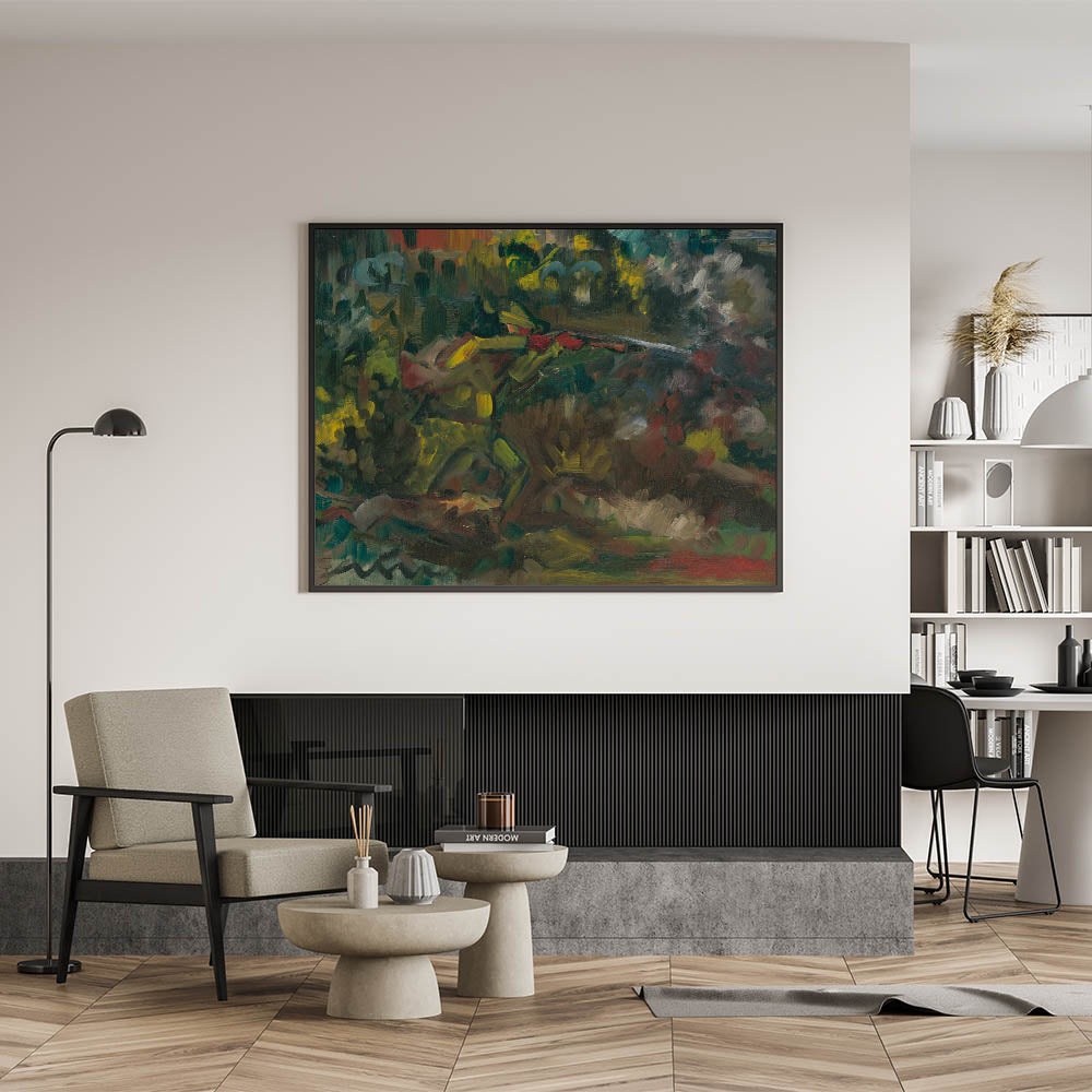 This abstract forest scene serves as a compelling focal point for any room, inviting viewers to explore its layered depths and textures. Add this piece to your art collection to bring a touch of Expressionist emotion and natural beauty into your space.