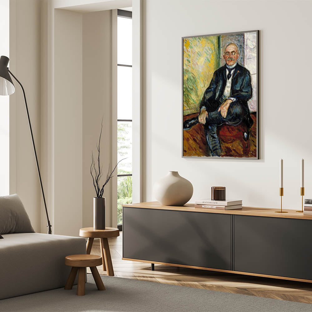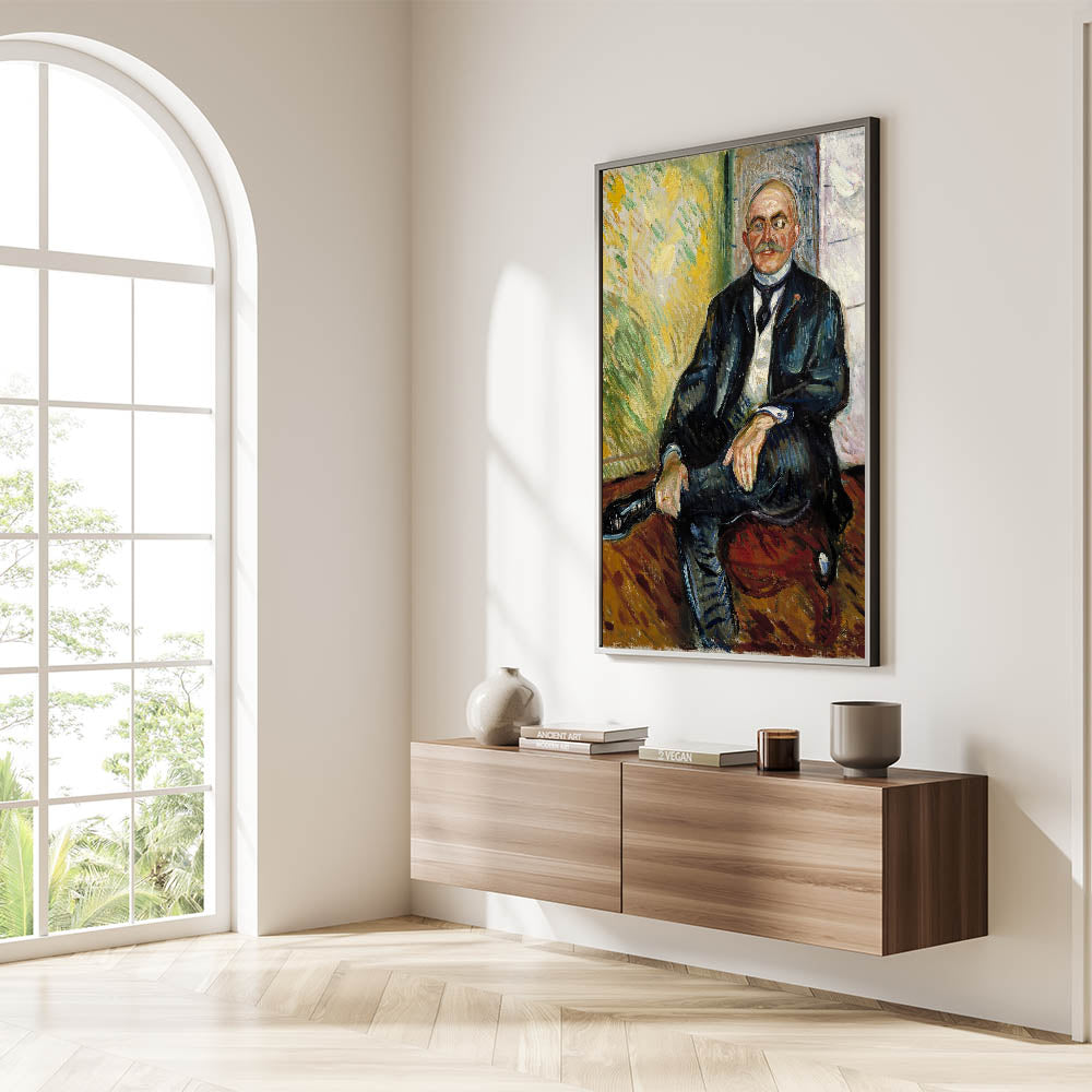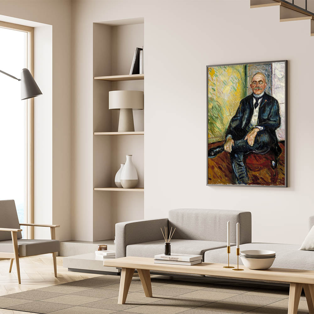 Bring a timeless masterpiece into your home with this Vibrant Expressionism Painting by Edvard Munch, featuring the Portrait of Gustaf Schiefler. This Abstract Expressionism artwork captures the essence of its subject through bold brushstrokes and a rich color palette. A striking depiction of individuality and sophistication, this piece is ideal for art collectors seeking Expressionist Art for Sale.