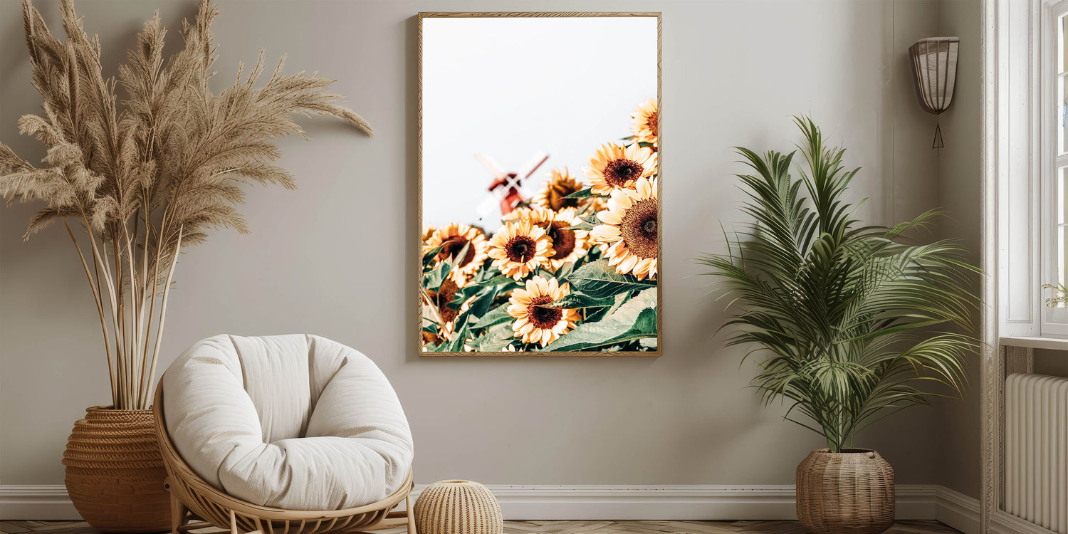 Bring warmth and brightness into your home with this stunning Farmhouse Wall Art, featuring a field of sunflowers set against the backdrop of a charming rustic windmill. Perfect for those who embrace country living style, this artwork captures the cheerful beauty of sunflowers, symbolizing happiness and warmth. The soft, sunny colors combined with the classic windmill create a scene that evokes a sense of peace and joy.