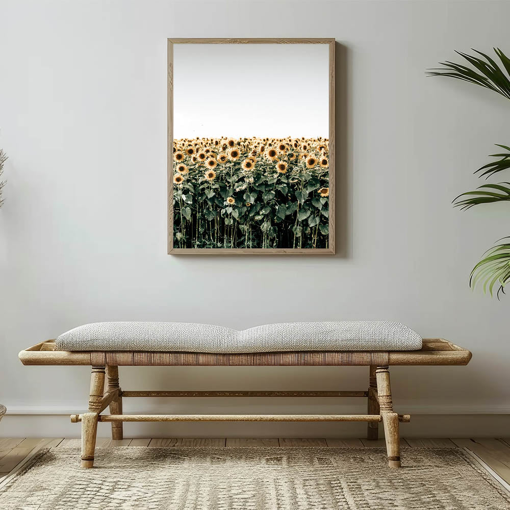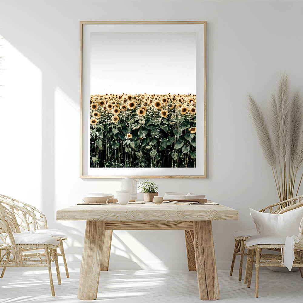 Bring the vibrant beauty of the countryside into your home with this stunning farmhouse wall art. Featuring a breathtaking field of sunflowers in full bloom, this artwork radiates warmth and positivity, perfect for adding a touch of rustic charm to your home decor. The bright sunflowers against the soft, neutral sky create a peaceful and inviting atmosphere, making it an ideal addition to any country living style room.