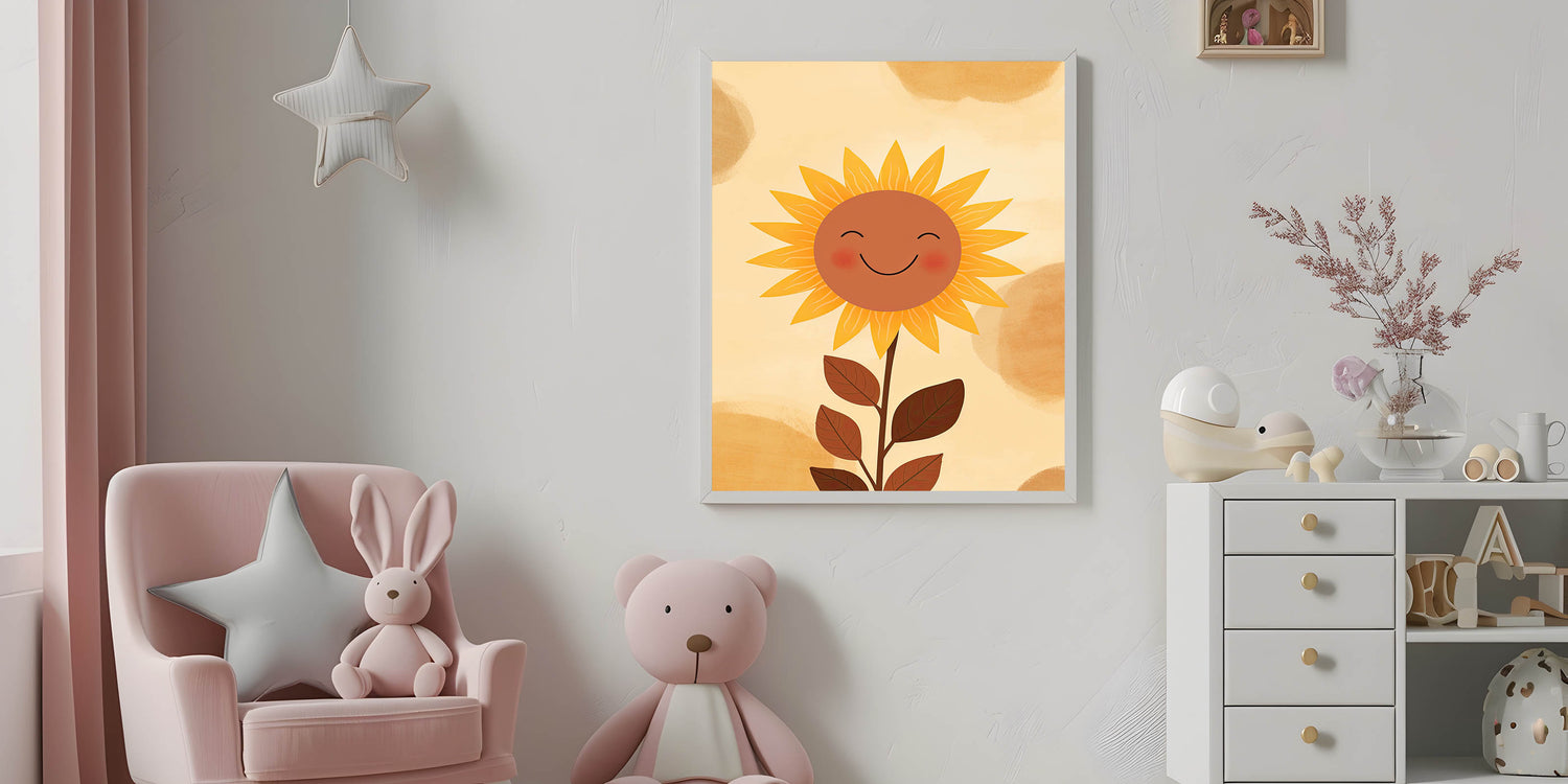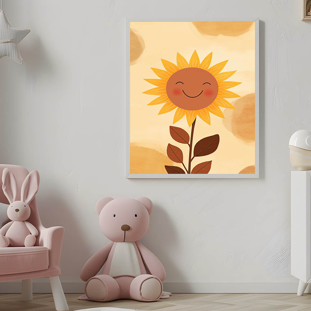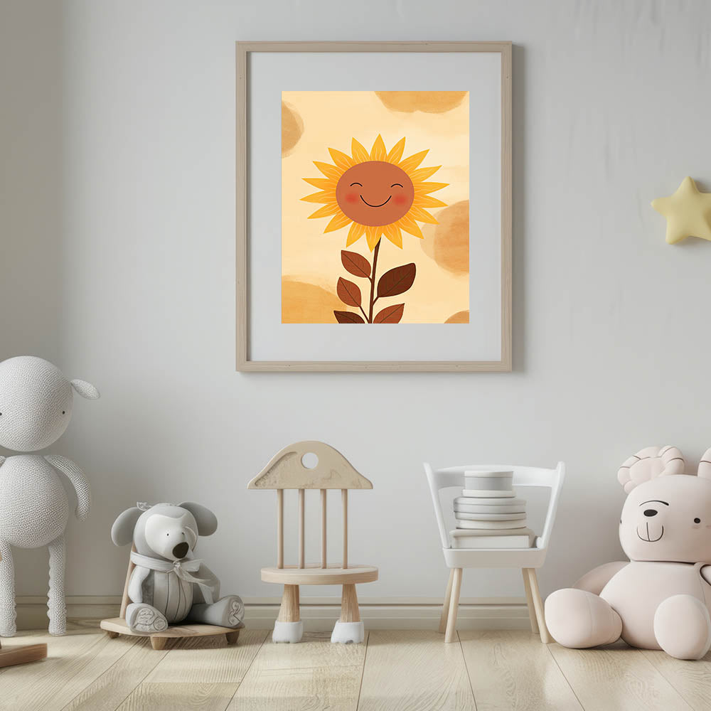 Brighten up your child’s space with this Framed Art for Children's Rooms, featuring a cheerful sunflower with a warm, inviting smile. This Kids Room Wall Art adds a touch of sunshine and positivity to nurseries, playrooms, and bedrooms, making it a delightful piece for any nature-loving child.