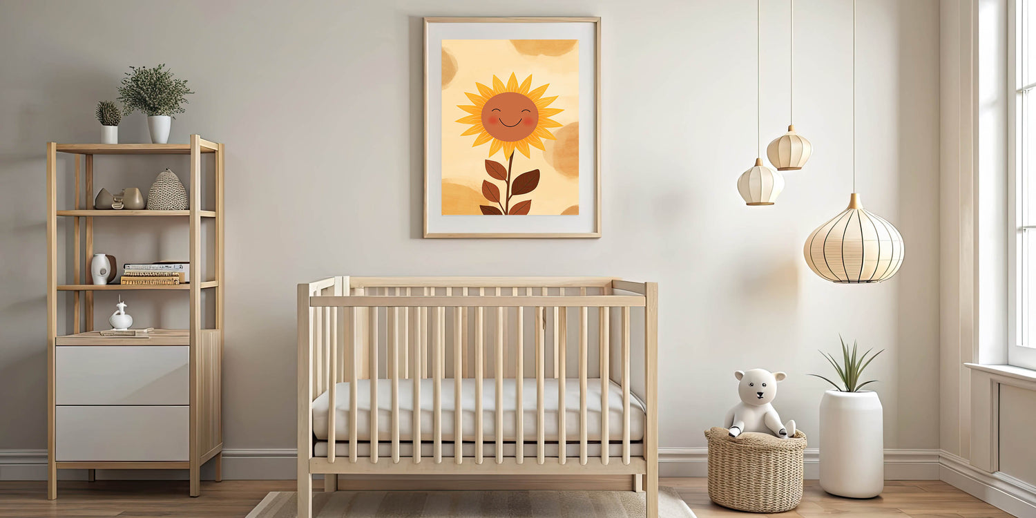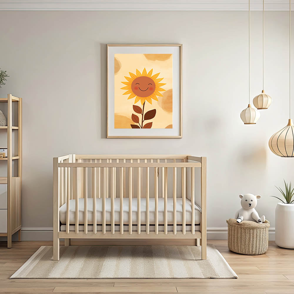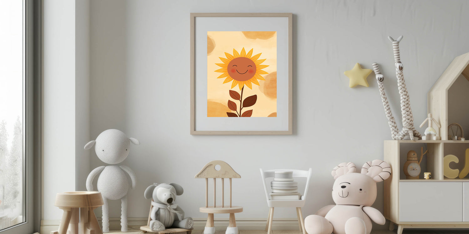Brighten up your child’s space with this Framed Art for Children's Rooms, featuring a cheerful sunflower with a warm, inviting smile. This Kids Room Wall Art adds a touch of sunshine and positivity to nurseries, playrooms, and bedrooms, making it a delightful piece for any nature-loving child.