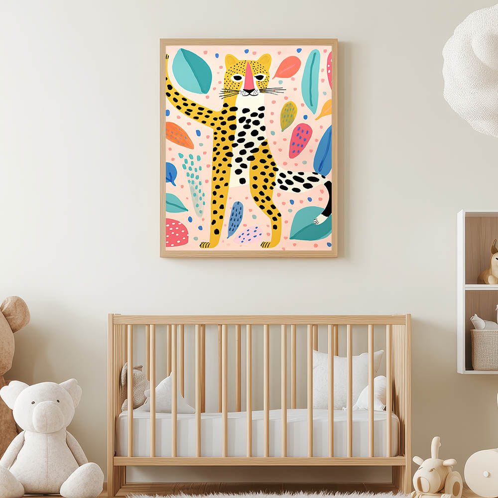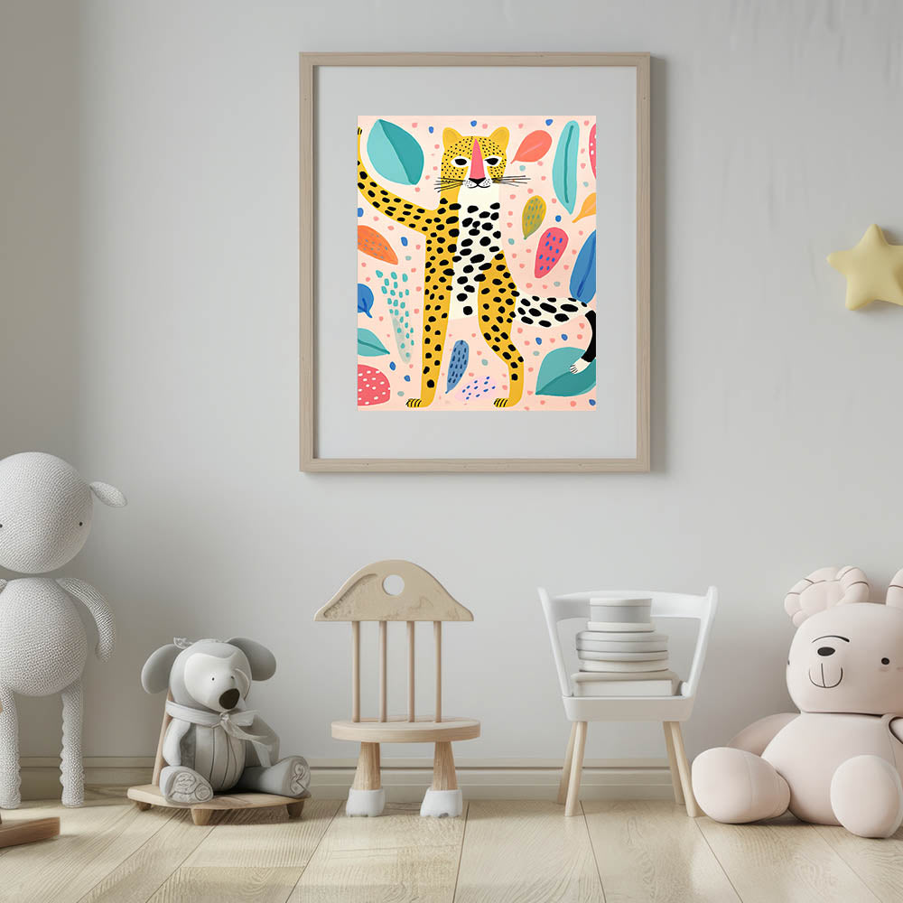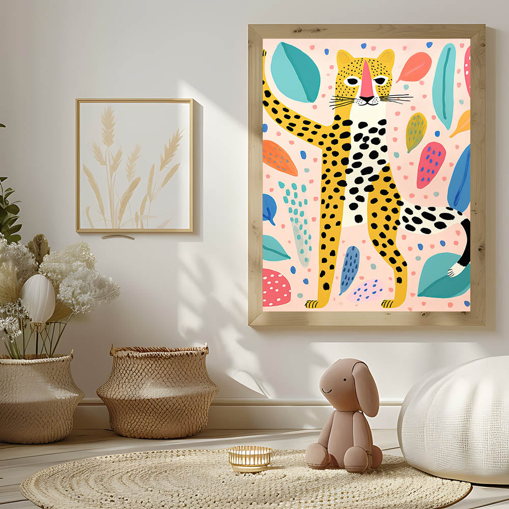 Framed Canvas Art for Children – Playful Leopard Wall Decor