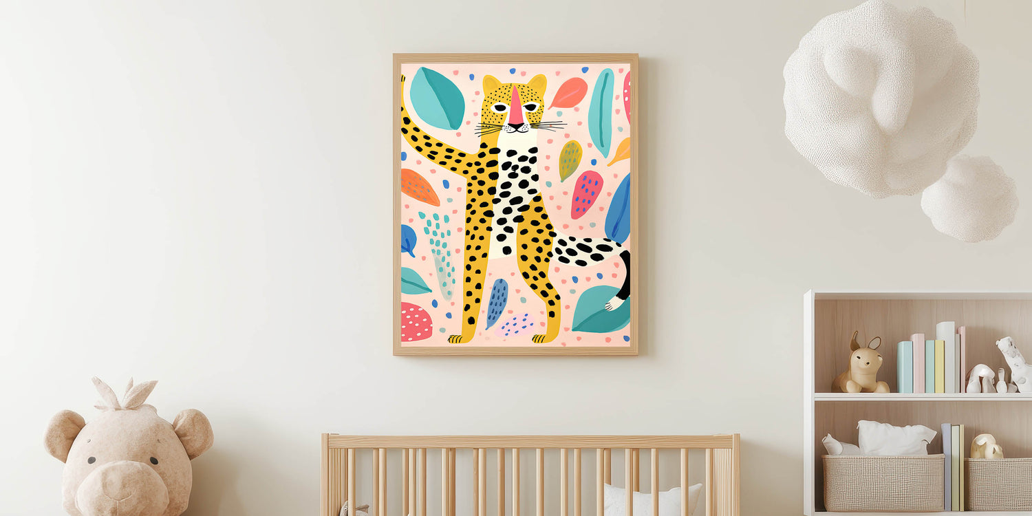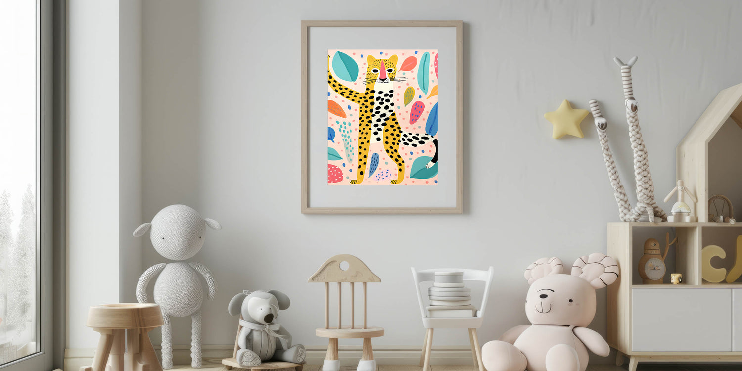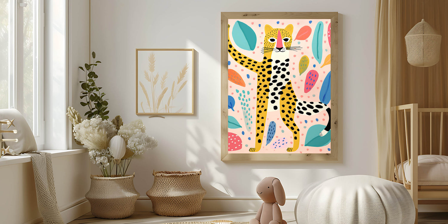 Framed Canvas Art for Children – Playful Leopard Wall Decor