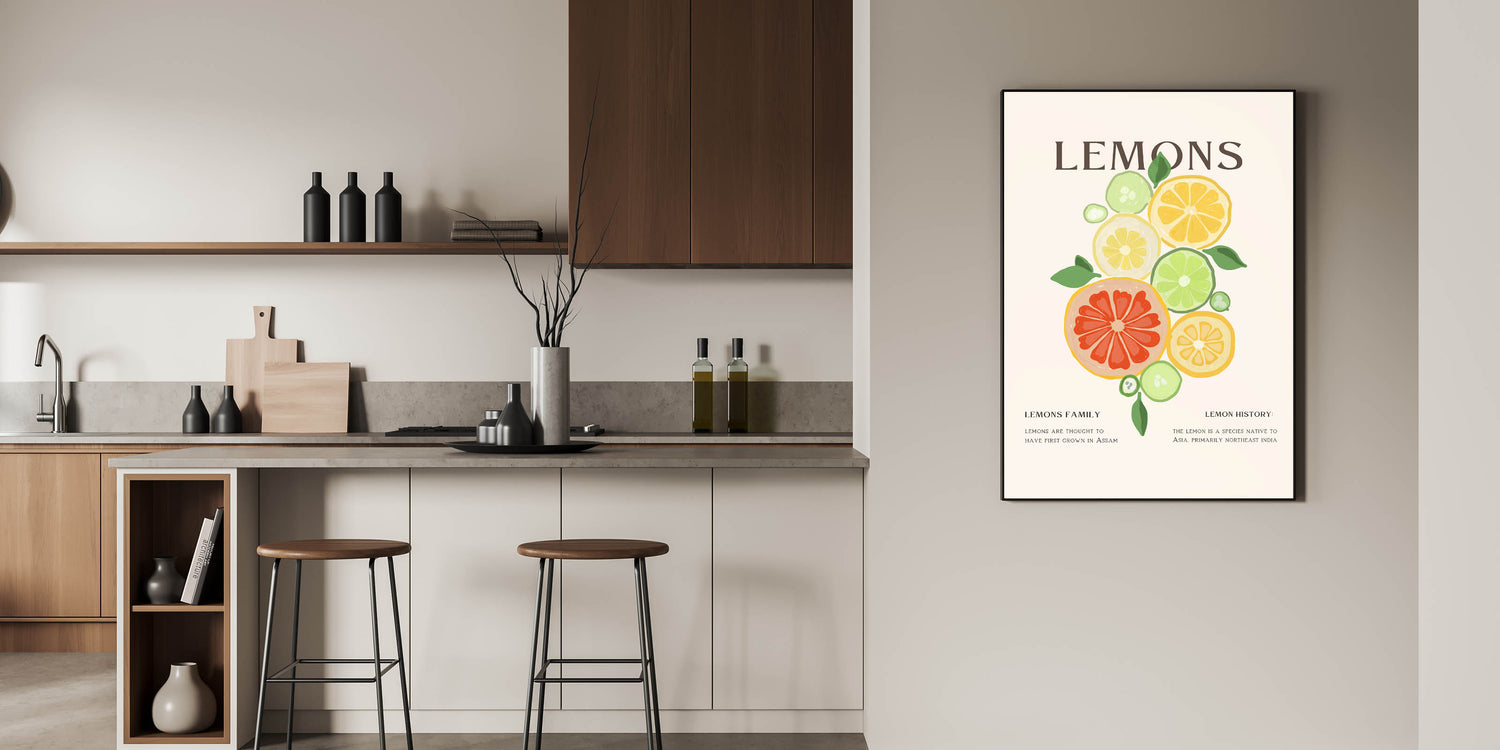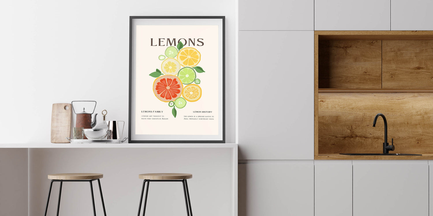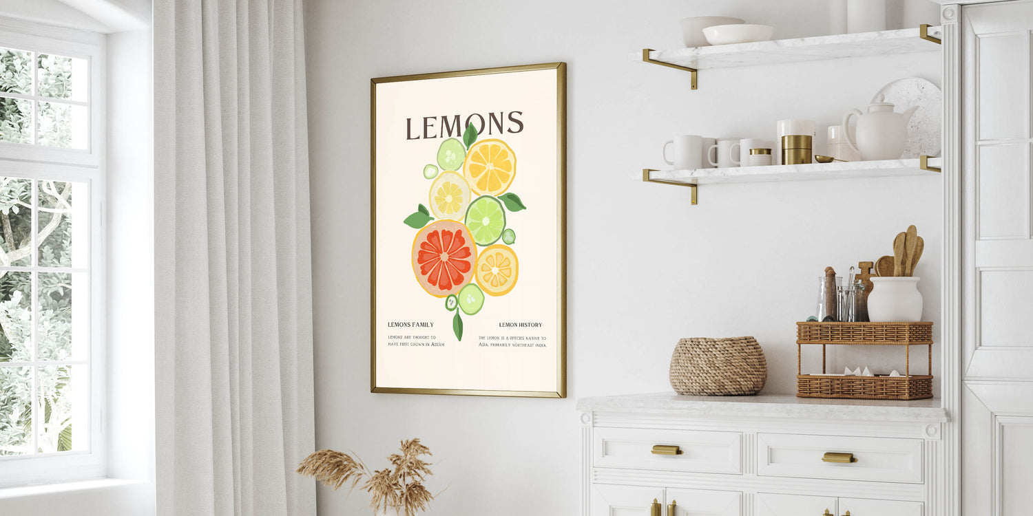 Fruit Art Prints – Citrus Kitchen Wall Decor for Modern Spaces