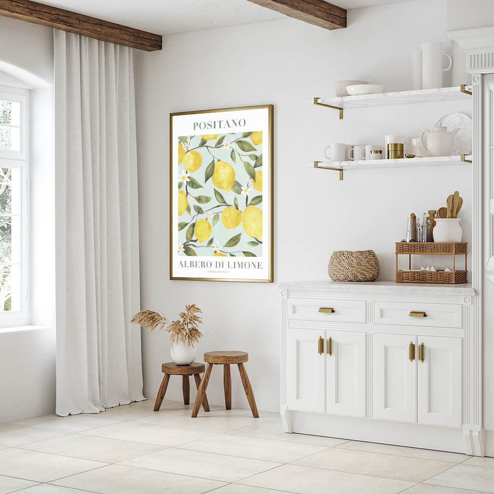 Bring the charm of the Amalfi Coast into your home with this fruit-themed wall art, featuring a stunning illustration of golden lemons hanging from lush green branches. This fruit watercolor art captures the essence of Italian citrus groves with a soft pastel background, creating a fresh and timeless aesthetic. Perfect for kitchen fruit decor, dining spaces, and Mediterranean-inspired interiors, this fruit botanical print adds a touch of natural elegance to any room.