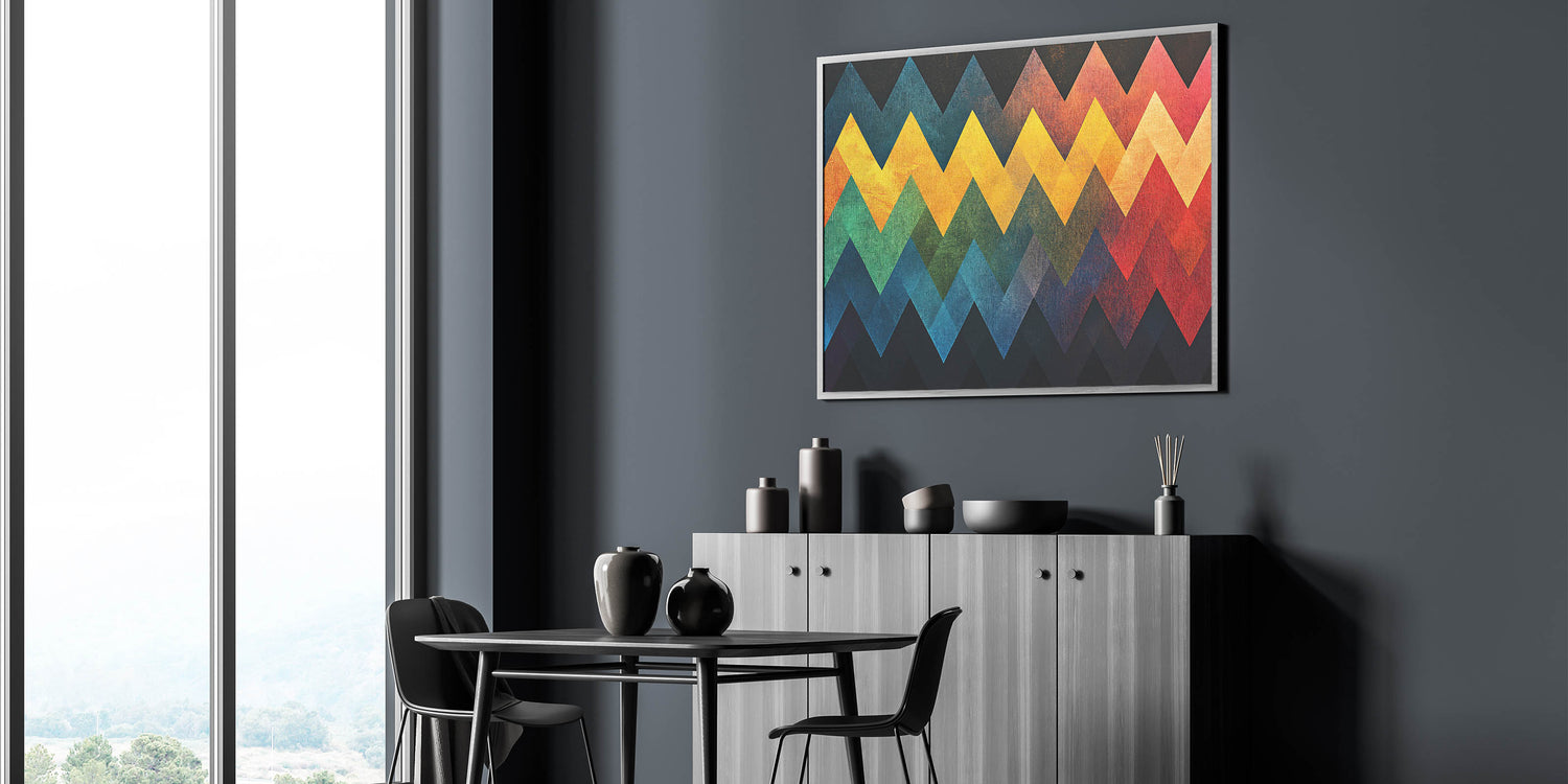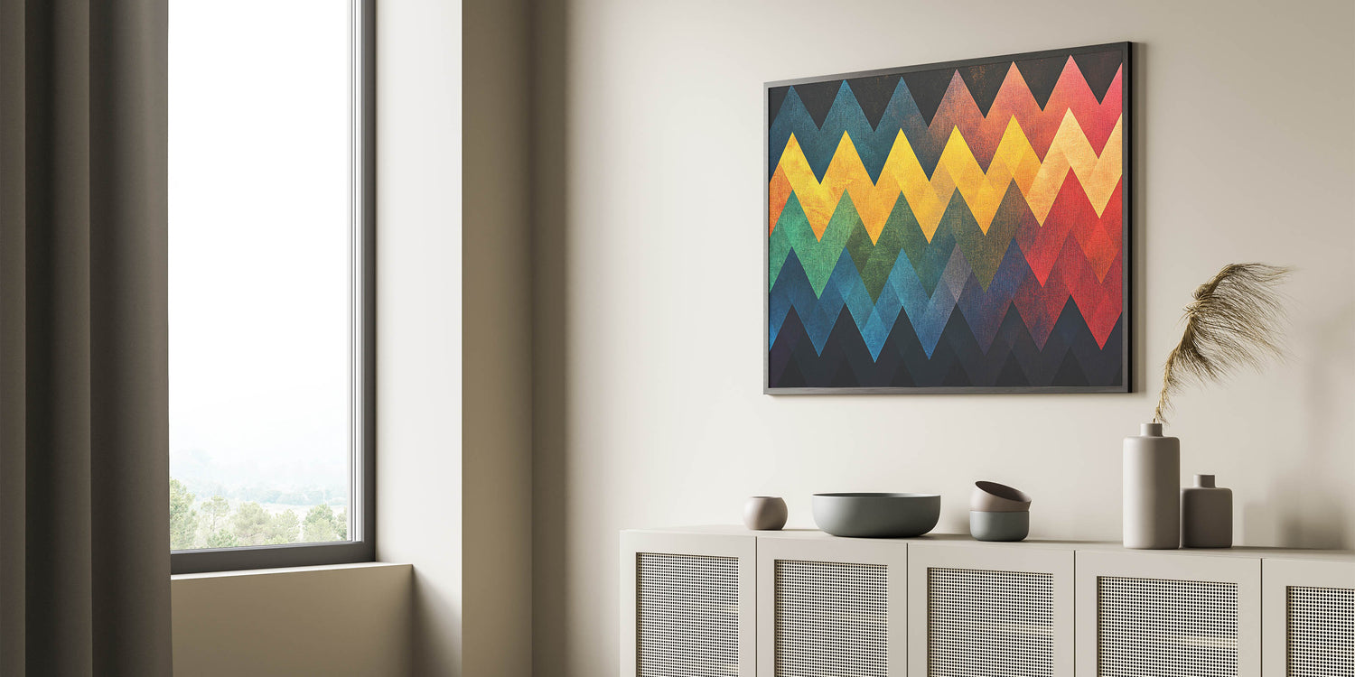 Geometric Abstract Art Prints – Multicolor Chevron Wall Design