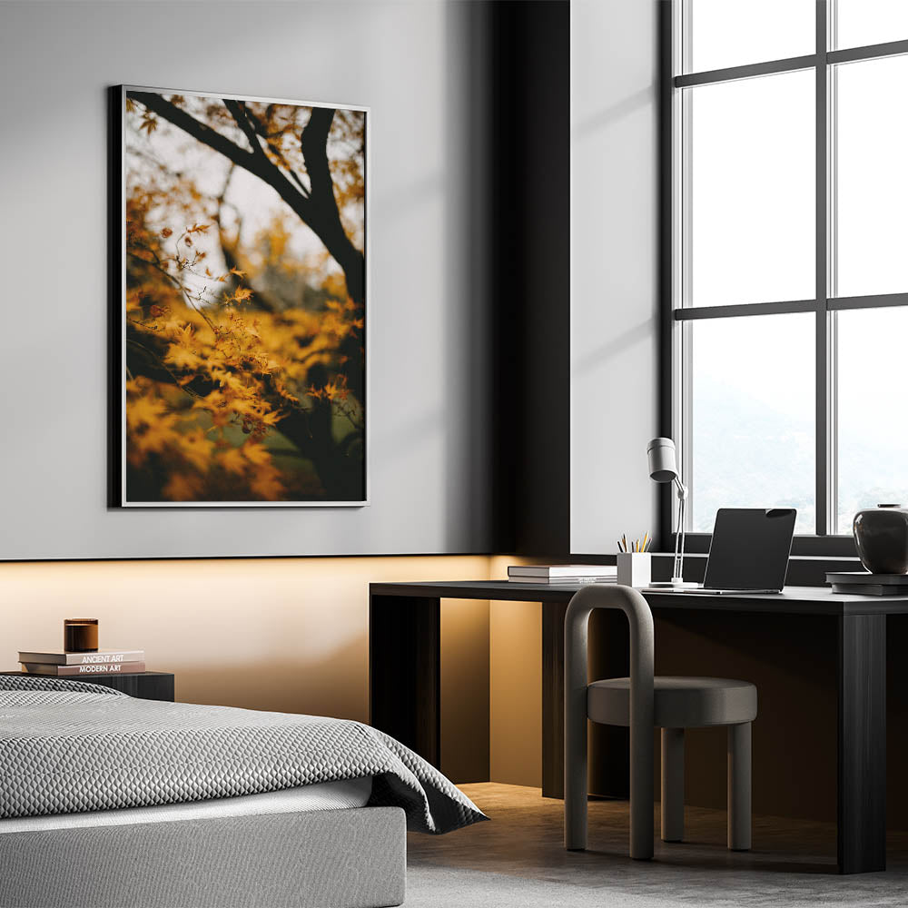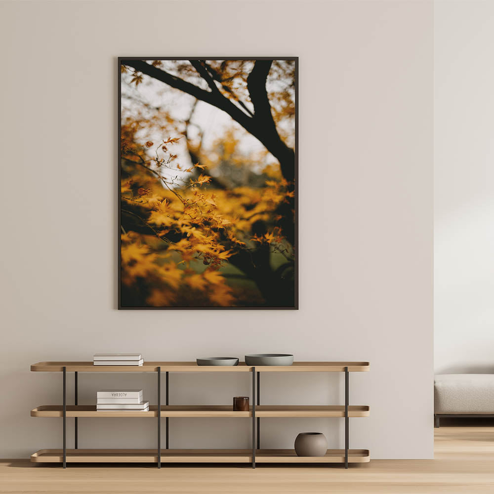 Immerse yourself in the beauty of fall with this Golden Autumn Leaves Fall Wall Art, a captivating nature-inspired piece that highlights golden yellow foliage set against dark tree branches. The soft blur in the background adds a dreamy effect, evoking feelings of warmth, nostalgia, and seasonal tranquility. This artwork is the perfect addition to any fall home decor.