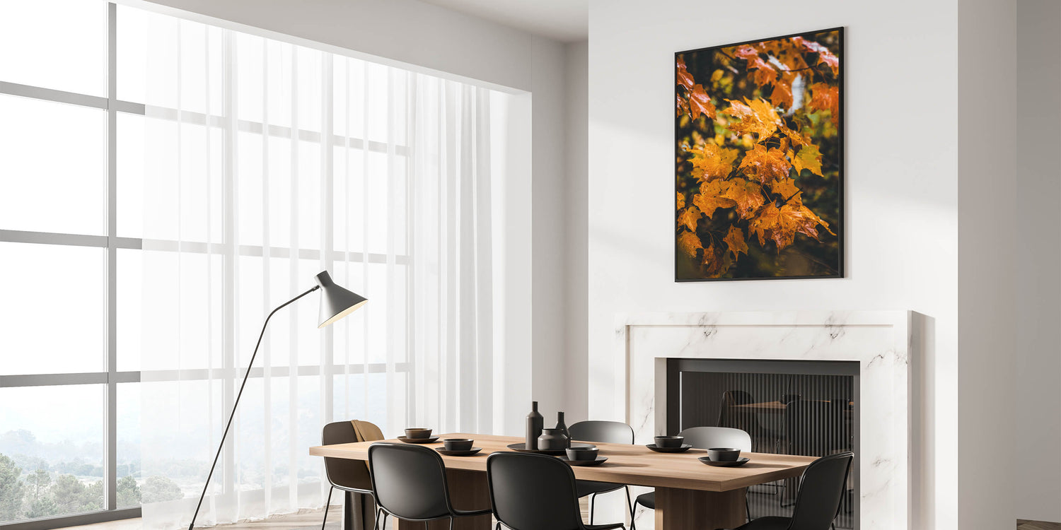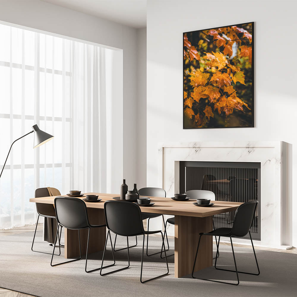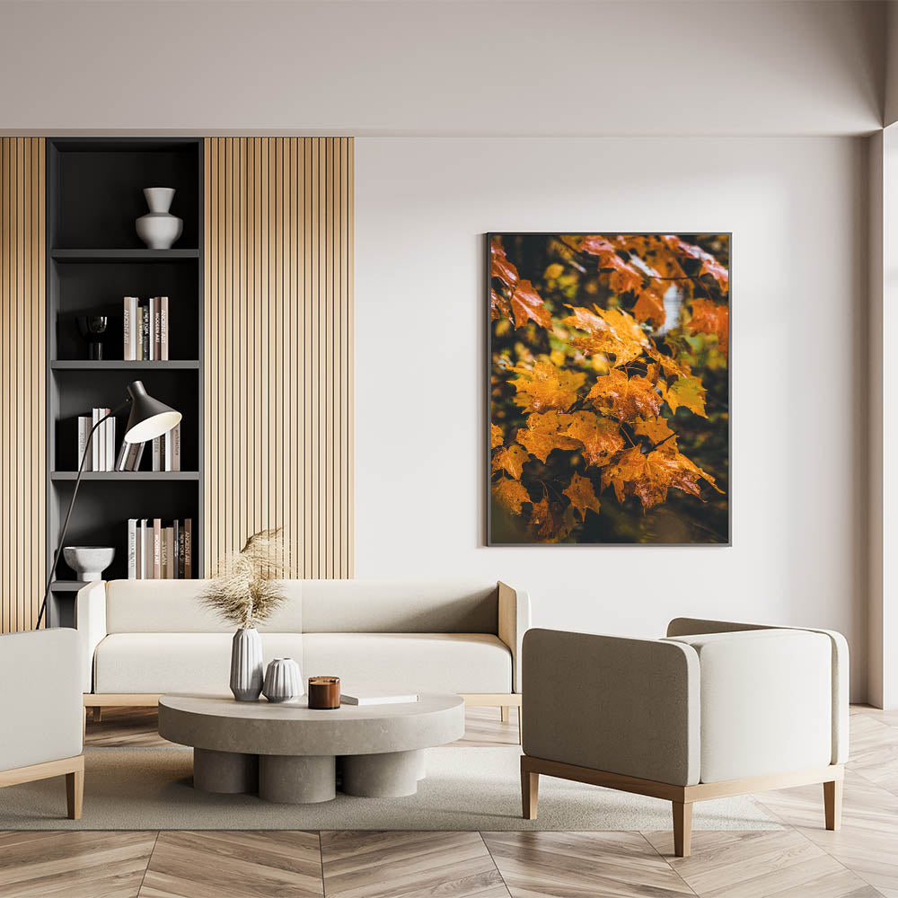 Celebrate the vibrant beauty of autumn with this Fall Wall Art, featuring a stunning close-up of golden maple leaves. The rich orange and yellow hues capture the essence of the season, bringing warmth and depth to any space. This Autumn Wall Art is a timeless addition to nature-inspired or rustic décor.