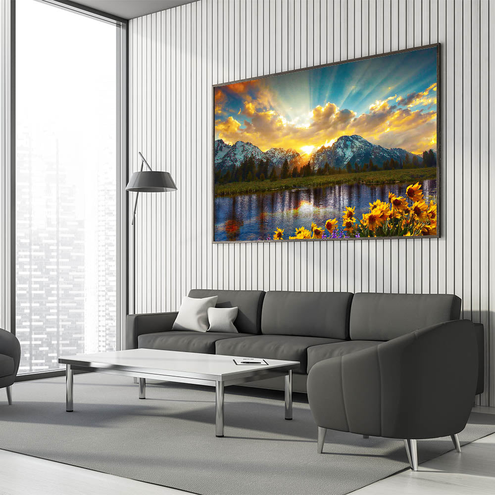 This Grand Teton scenic print adds a touch of warmth and energy to your decor, making it the perfect choice for creating an inviting and nature-inspired atmosphere in any room.