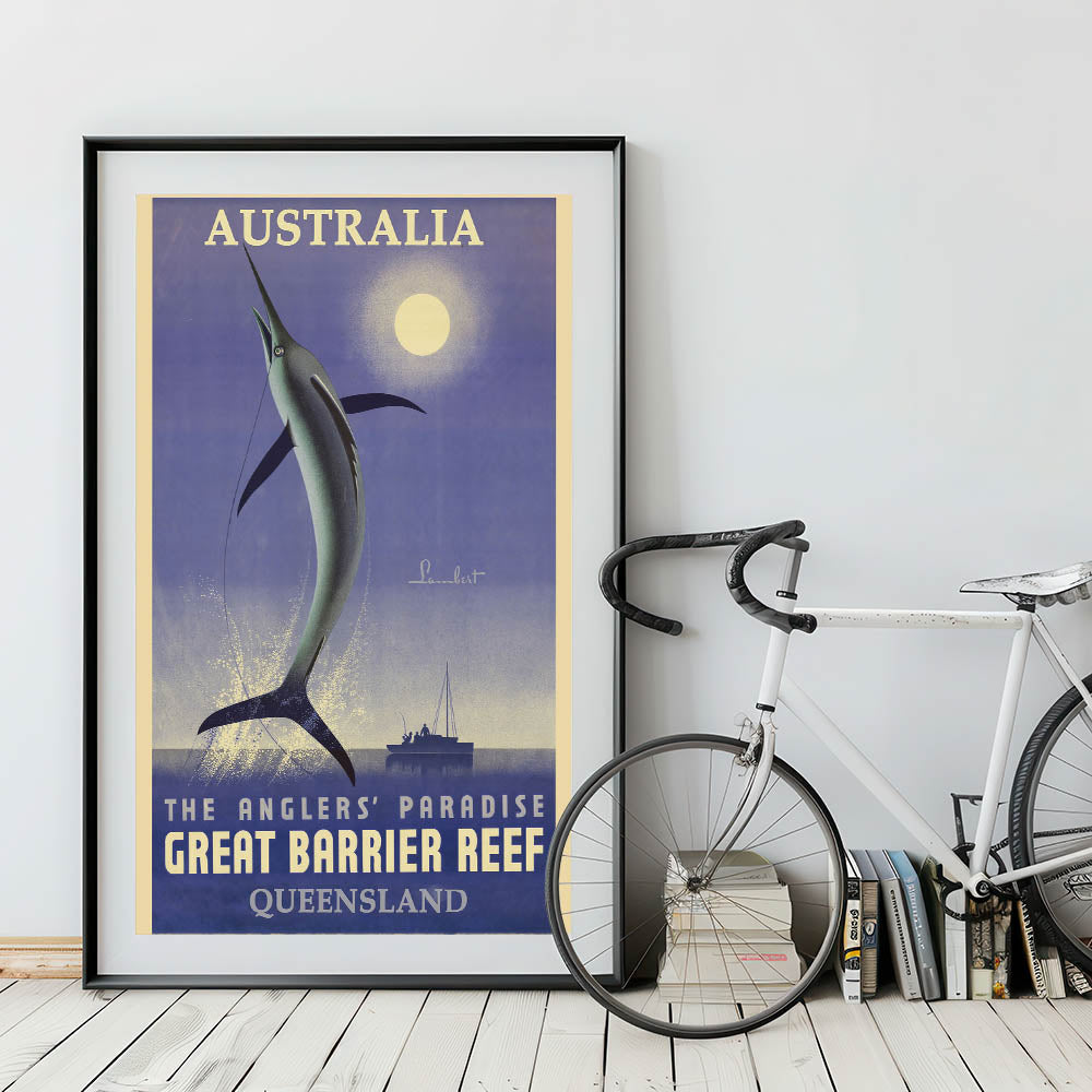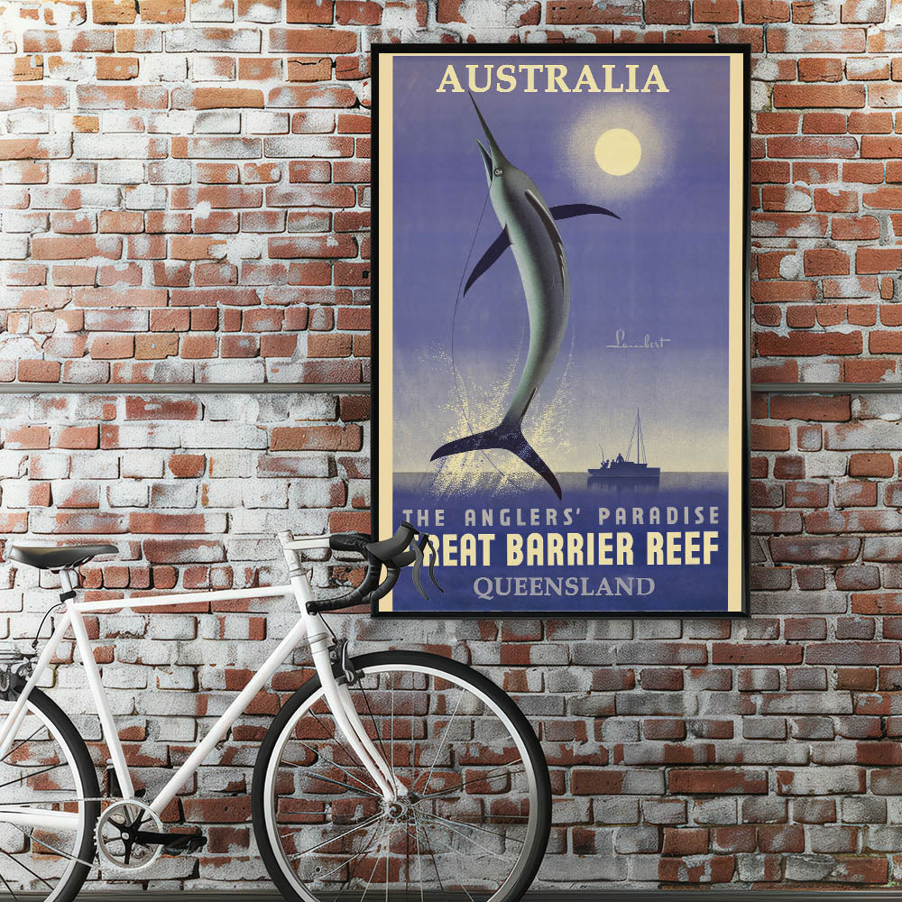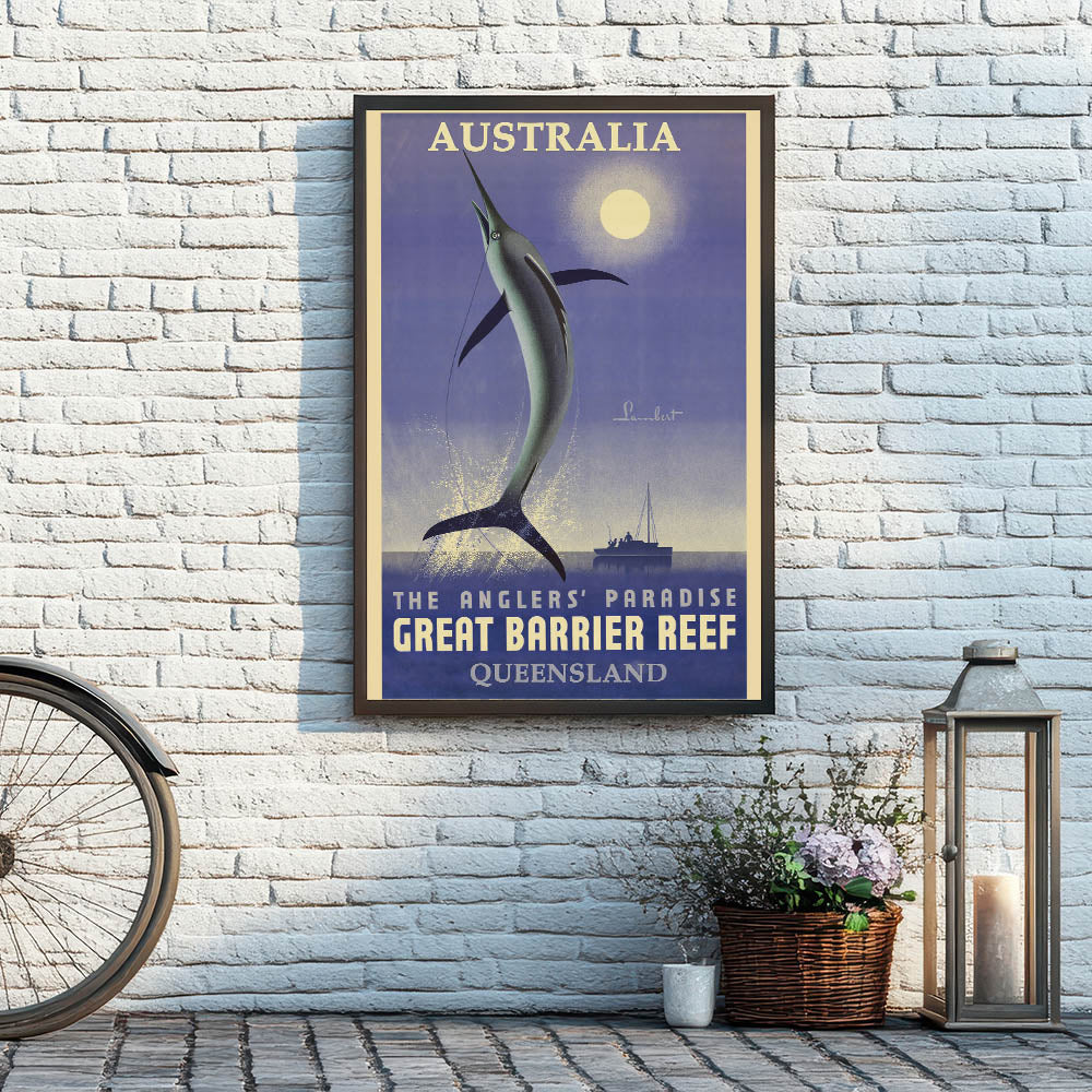Bring the excitement of fishing in the Great Barrier Reef into your home with this stunning retro poster. Whether you’re a fishing lover or simply admire the beauty of the Australian coast, this piece will add a touch of adventure to any room.