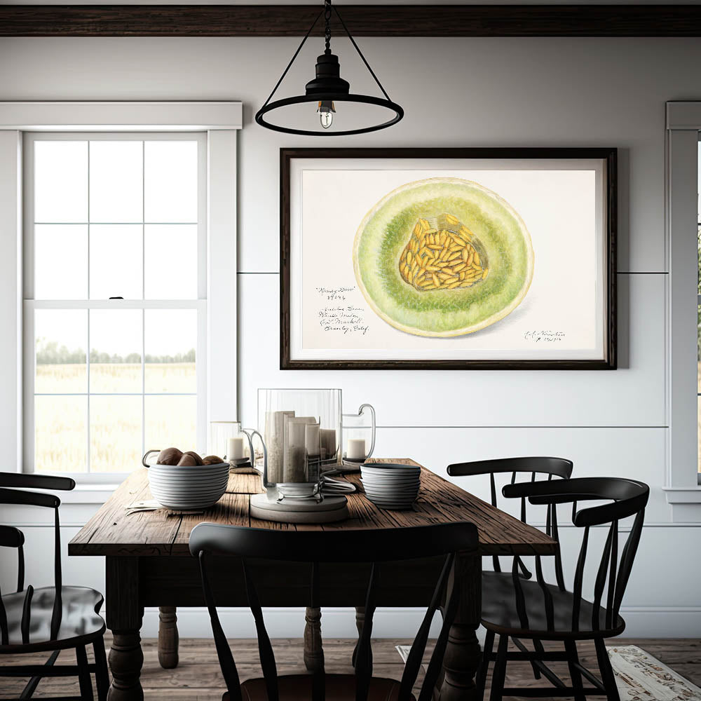 Bring freshness to your space with this beautifully detailed fruit-themed wall art featuring a vibrant honeydew melon. This fruit illustration print showcases the intricate textures of the melon’s juicy green flesh and golden seeds, making it a perfect choice for fruit kitchen art lovers. Whether displayed in a dining area, cafe, or home kitchen, this fruit watercolor art enhances the ambiance with its refreshing tones.